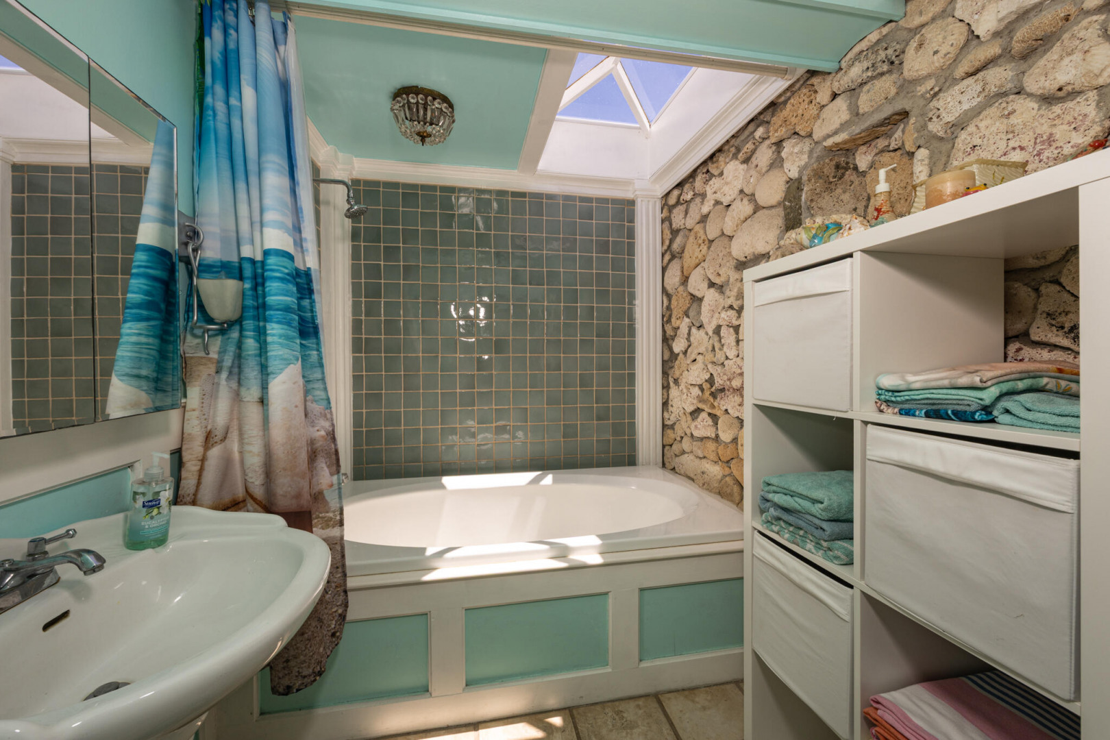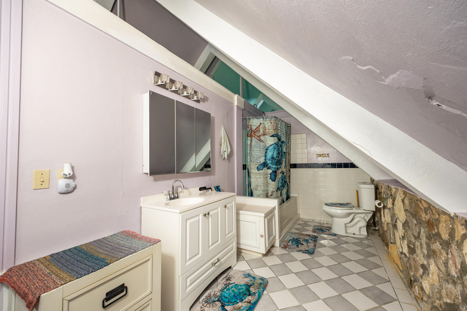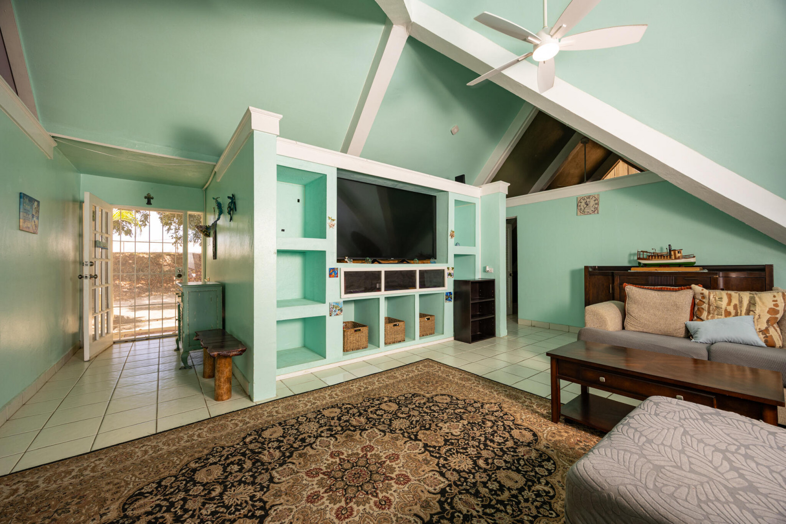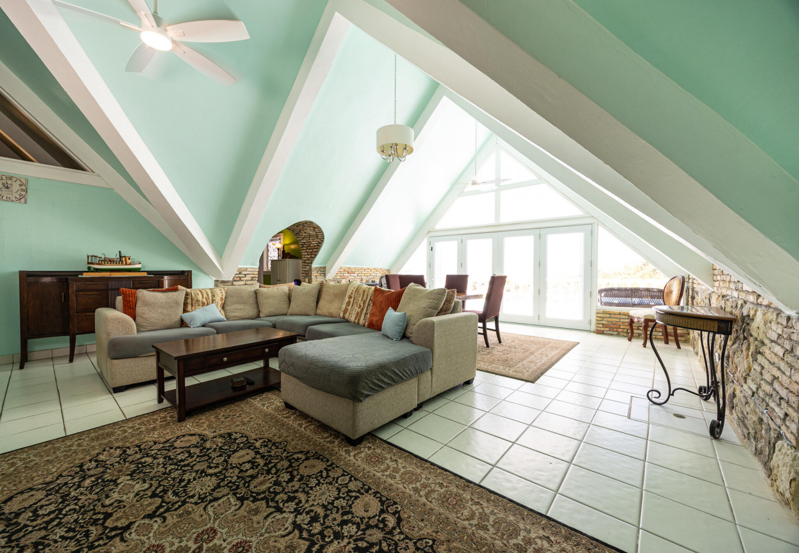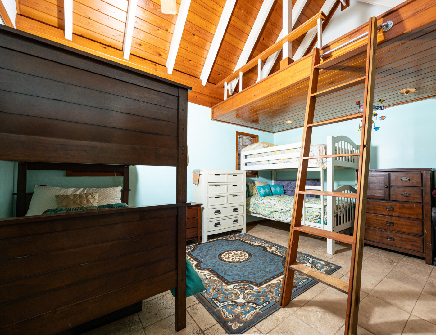 Stunning Custom A-Frame with Caribbean ViewsDesigned by Dick Speas, this 3-bedroom, 3-bathroom custom-built Chalet style A-frame home blends modern efficiency with island charm. Enjoy breathtaking north-facing views of the Caribbean Sea across a lush tropical landscape. Featuring Danish brick and coral accents throughout, this meticulously maintained property is a true island retreat.Sustainability meets comfort with 24 solar panels and triple Tesla batteries, and a 16kW Generac propane generator with an auto-transfer switch. Recent upgrades include all-new AC units in the bedrooms and kitchen, new ceiling fans, and updated appliances. A solar-powered gated entry ensures privacy and convenience. Relax on the spacious outdoor patio and take in the beauty of island living