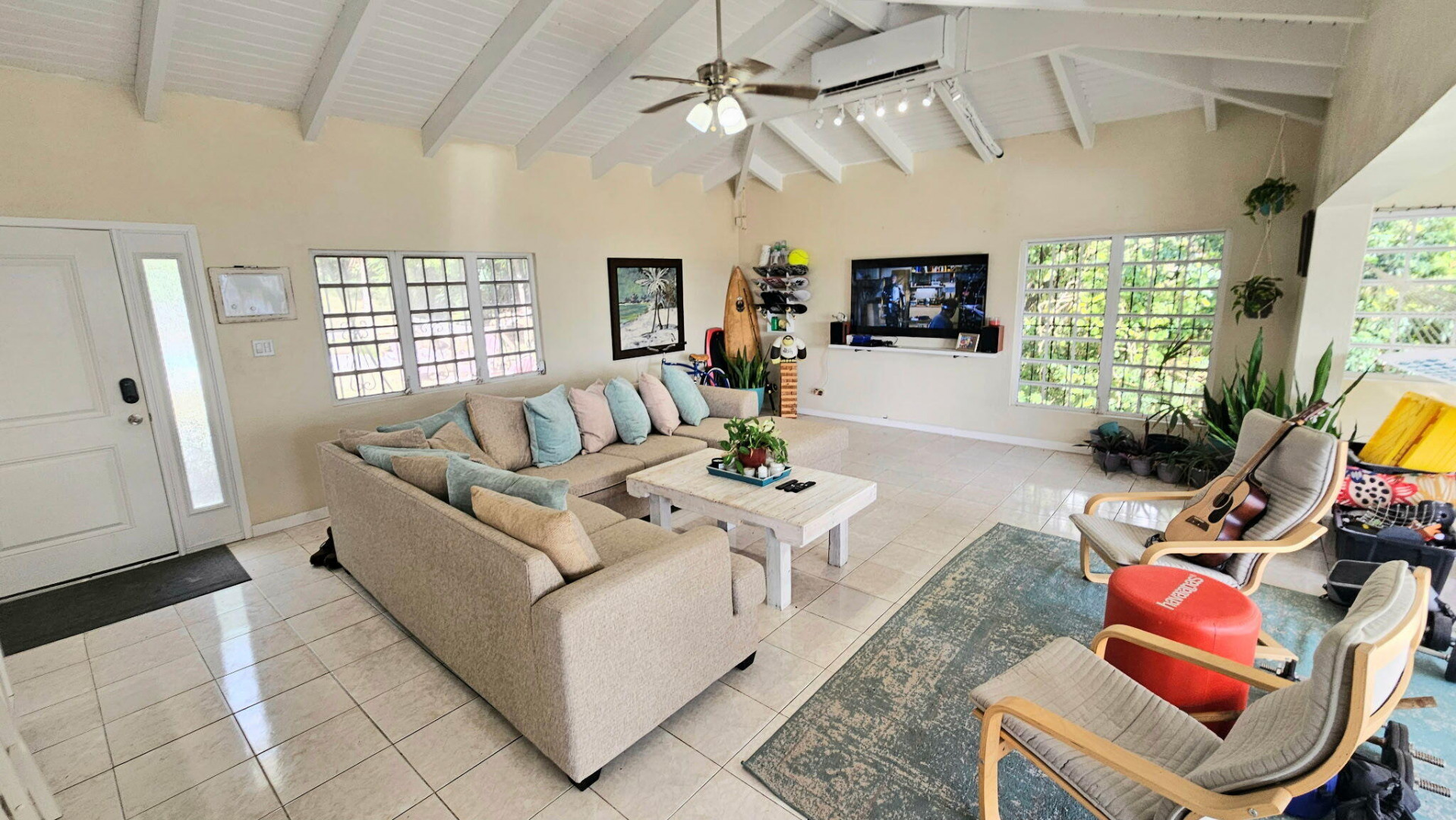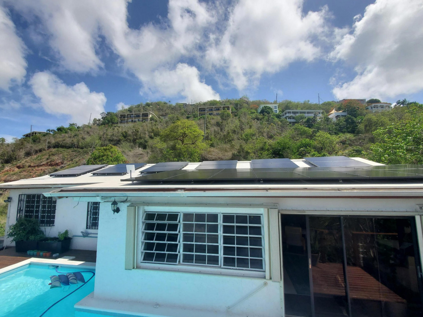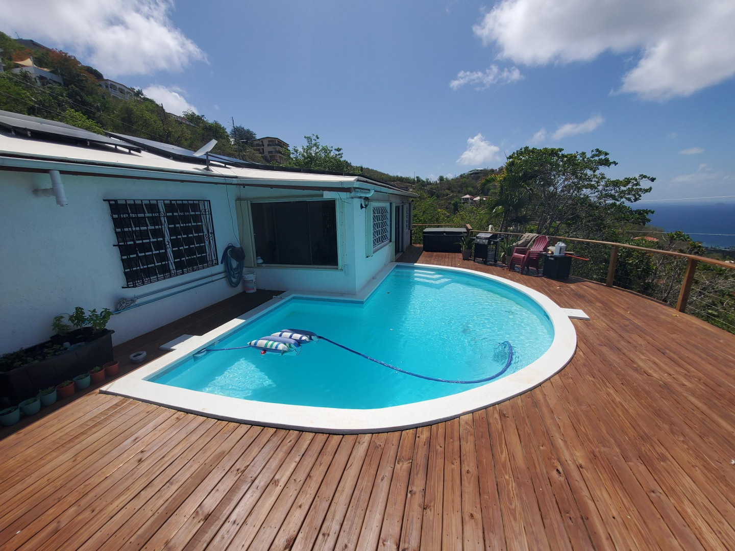 The PERFECT single family home for your family or excellent income property. Park in the flat parking area and walk past the grassy entrance with a fire pit. Beautiful breezes with a pool AND a hot tub and lots of outdoor deck and living space. Even the floorplan makes sense! The house is WALK IN LEVEL. There are 28 solar panels, 2 Tesla Powerwalls and Net Metering. Remodeled kitchen and baths, new electric, new split A/C's, recently recoated roof and pool and an outdoor shower. It even comes with Starlink. This lovely home comes FULLY furnished so just move right in or rent out immediately. There is room to add a separate structure off the driveway if you want additional income. See documents for all extras. $3k buyer credit to clean roof.