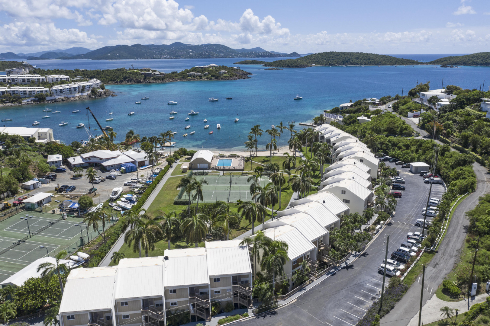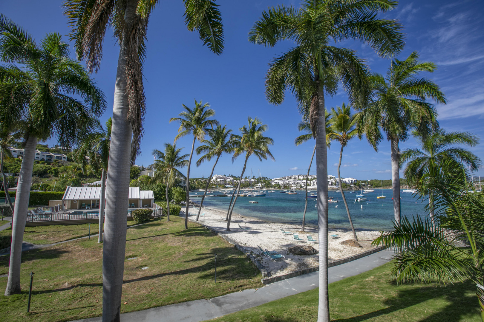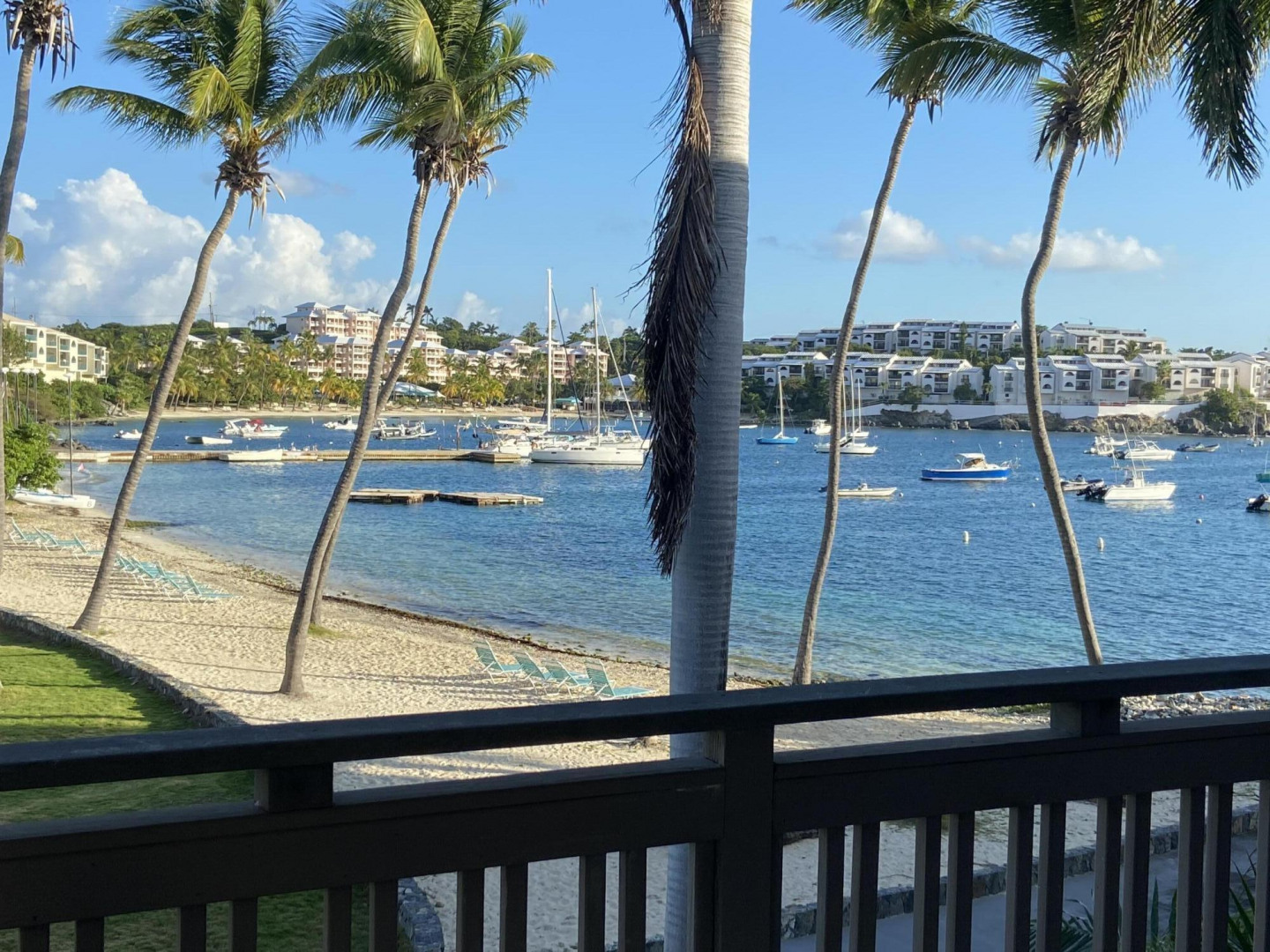 LOCATION-waterfront, LOCATION-beachfront, LOCATION- incredible views!!! Welcome to your dream condo on the middle floor, just one easy set of steps away from your new home. This charming residence boasts a large side picture window, flooding the space with natural light and creating an inviting ambiance reminiscent of a serene beachside retreat. Enjoy the convenience of being mere steps from the beach, sparkling waters, and well-maintained tennis courts. You'll have access to a fully equipped exercise room and the prestigious St Thomas Yacht Club, making this location truly unbeatable! this condo is not just a fantastic place to live; it's also an excellent investment opportunity.Previoulsy cherished by the seller for family vacations, 123 America is perfect for short-term rentals and a fantastic AirBNB option. Recently fully refurbished in 2023!!
