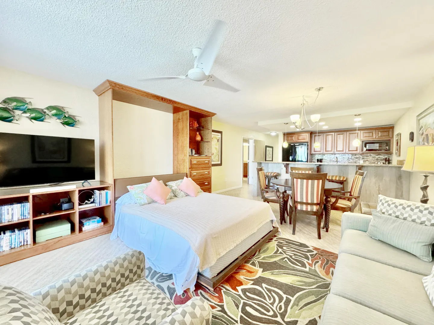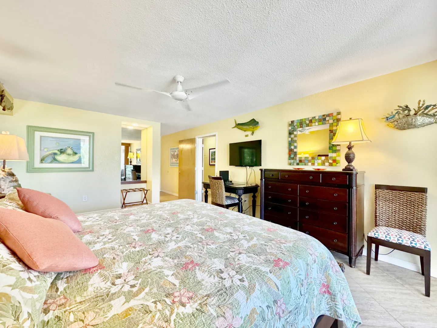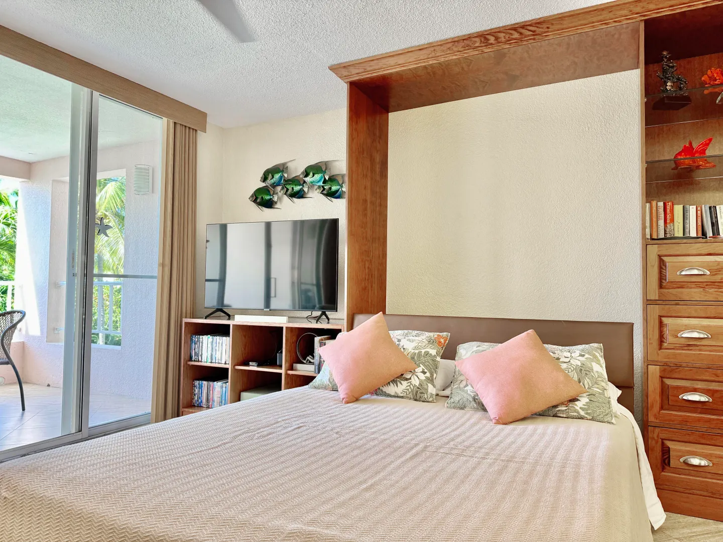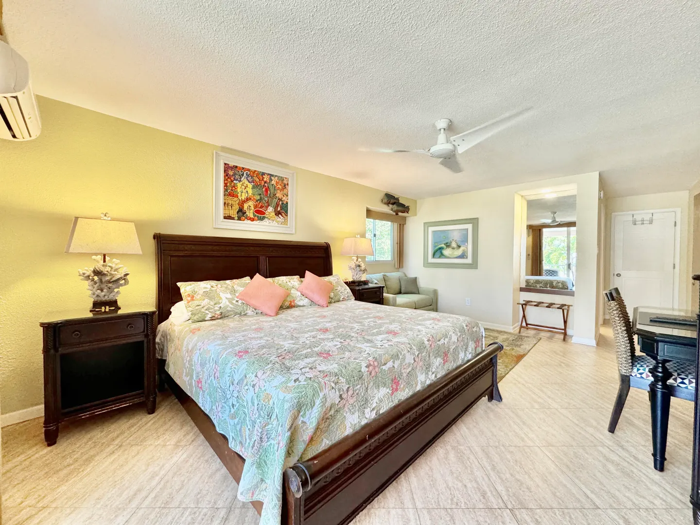 This one-bedroom, two-bathroom Elysian condo epitomizes island luxury. With a custom-built queen Murphy bed in the living room, the condo comfortably accommodates four, while breathtaking views grace every room. A lock-off door between the bedroom and living area, along with separate entrances, offer privacy and flexibility. Relax on the expansive patio for covered outdoor dining with ocean and garden views. Inside, an expanded galley kitchen awaits culinary adventures. Just 60 yards from the beach and a mere 14 steps from the pool, this condo is a haven for relaxation and recreation. Active on VRBO with stellar reviews, it's a sought-after retreat in a gated, pet-friendly community. With its own RO plant, backup generator, and concrete construction, this condo ensures uninterrupted bliss