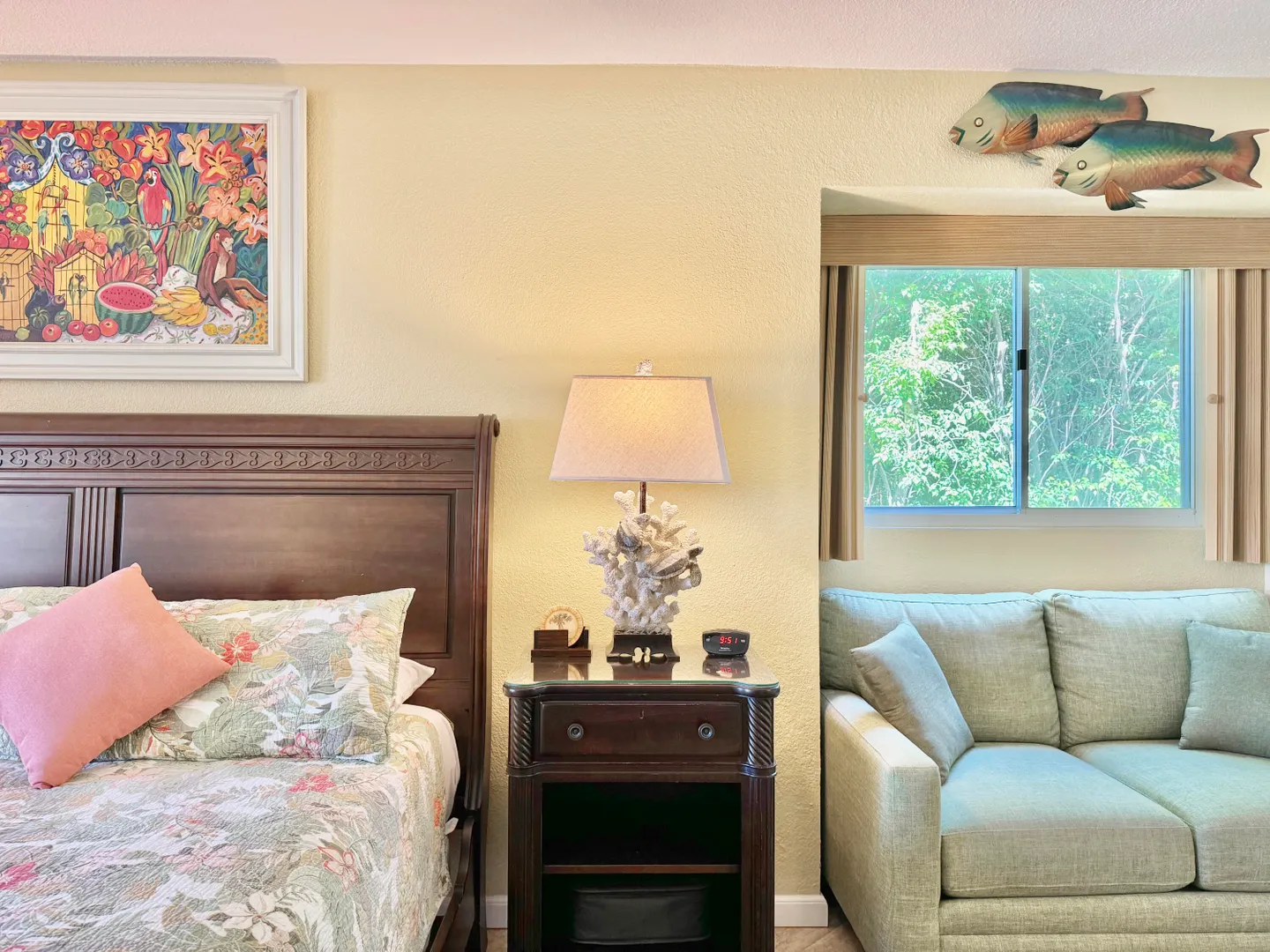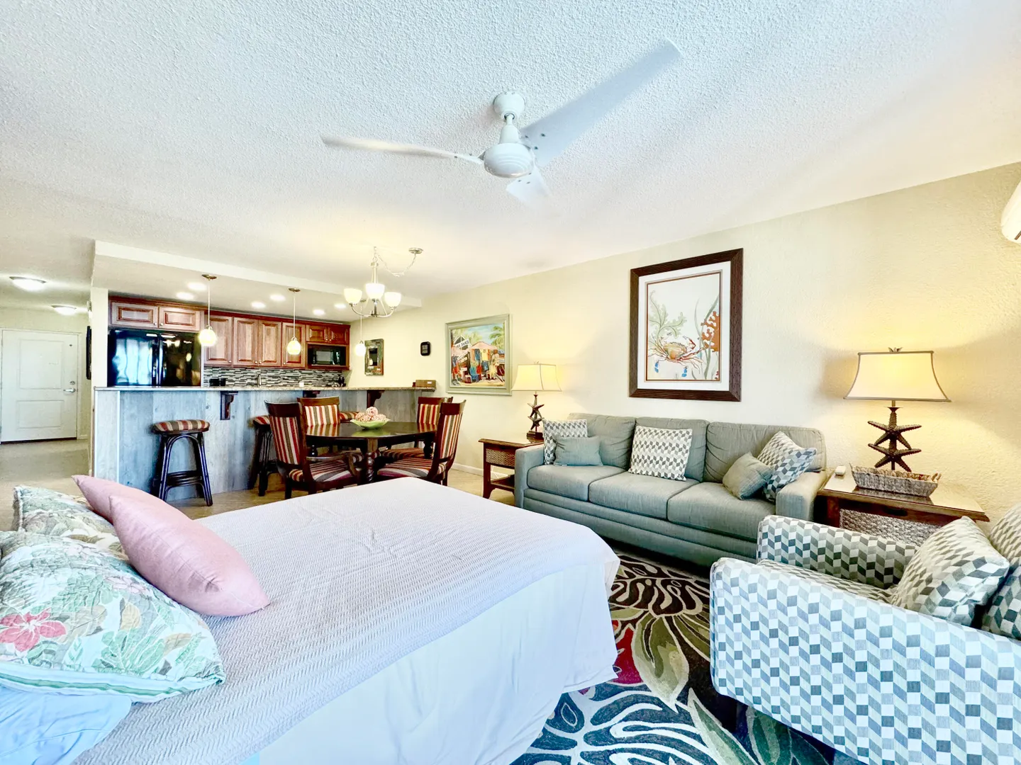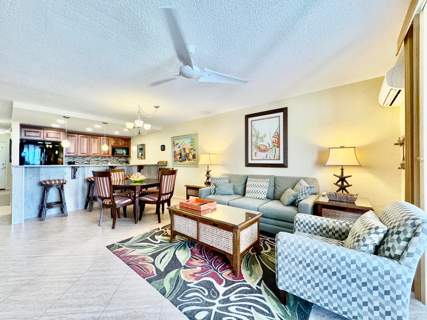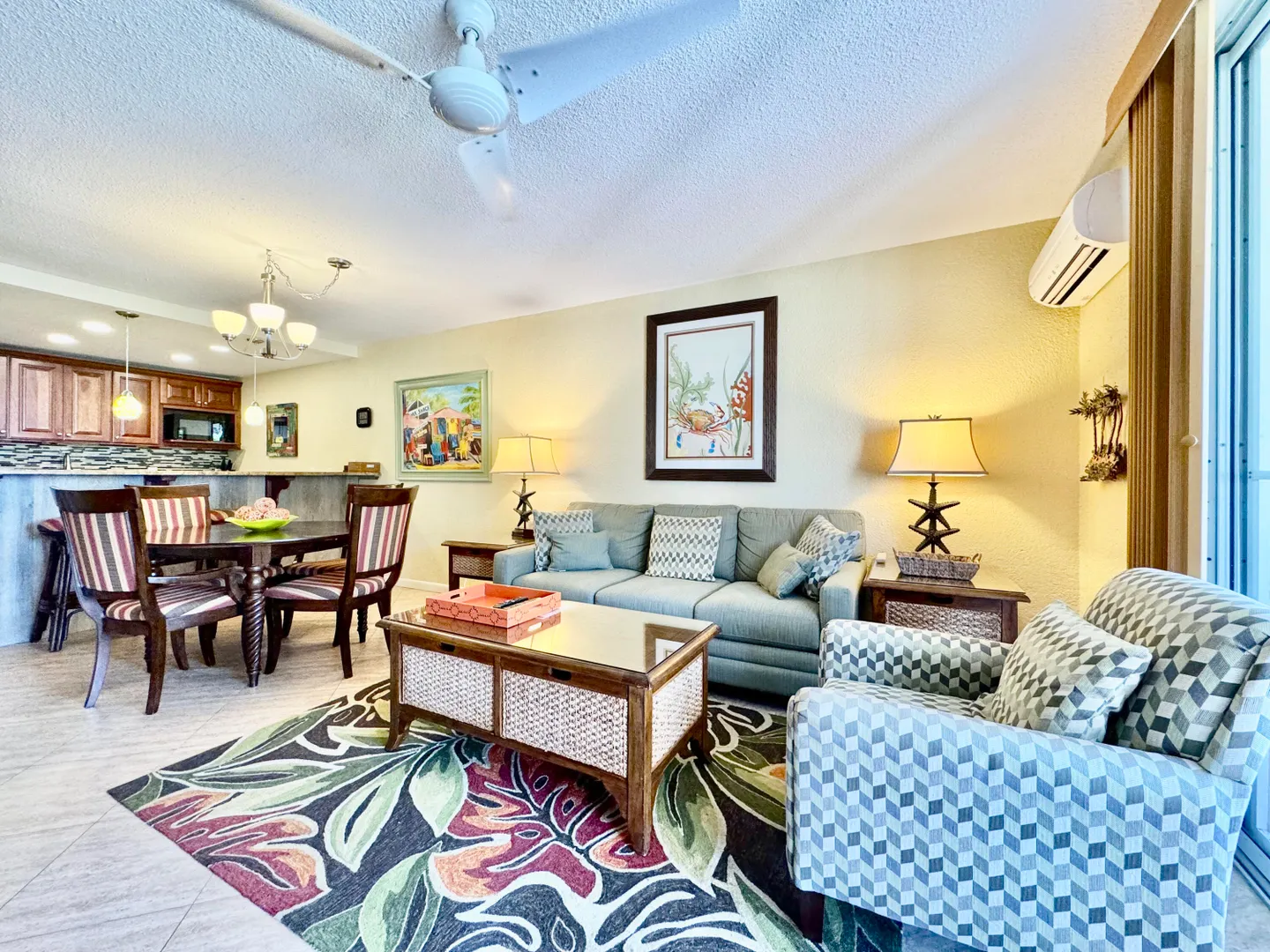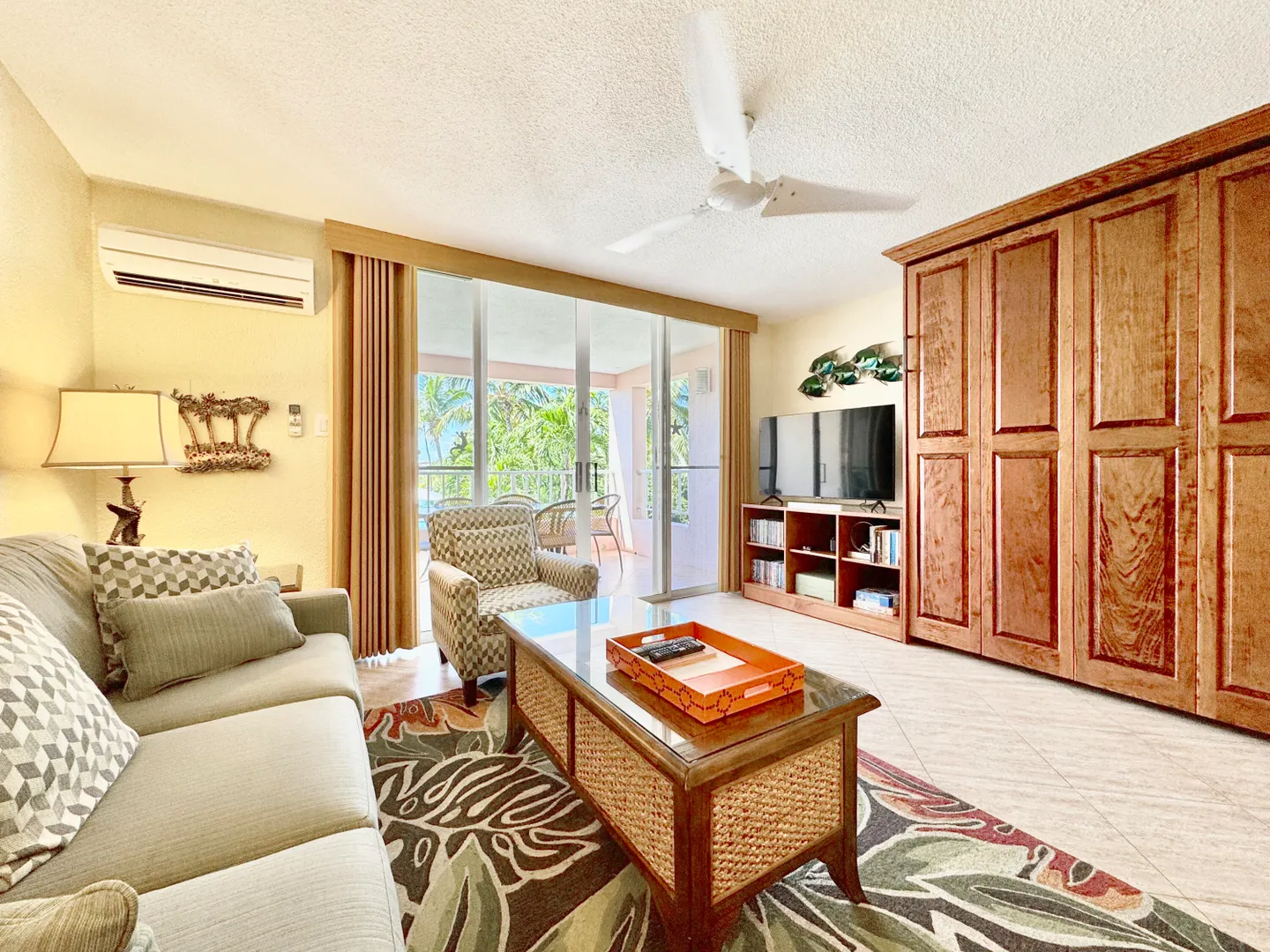 This one-bedroom, two-bathroom Elysian condo epitomizes island luxury. With a custom-built queen Murphy bed in the living room, the condo comfortably accommodates four, while breathtaking views grace every room. A lock-off door between the bedroom and living area, along with separate entrances, offer privacy and flexibility. Relax on the expansive patio for covered outdoor dining with ocean and garden views. Inside, an expanded galley kitchen awaits culinary adventures. Just 60 yards from the beach and a mere 14 steps from the pool, this condo is a haven for relaxation and recreation. Active on VRBO with stellar reviews, it's a sought-after retreat in a gated, pet-friendly community. With its own RO plant, backup generator, and concrete construction, this condo ensures uninterrupted bliss