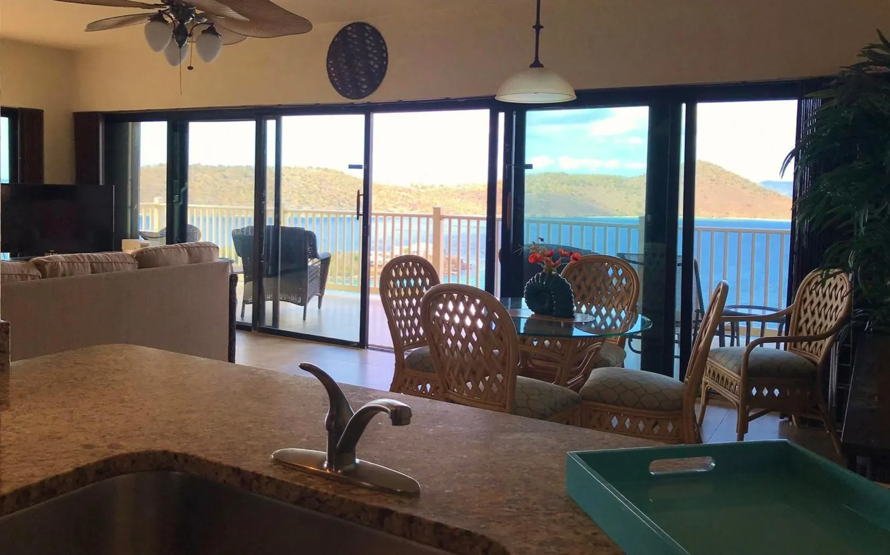 Well-positioned one bedroom unit with panoramic seaviews out to Pillsbury Sound. Enjoy freshly renovated exteriors, pools and a wonderful dining experience just steps away from the perfectly situated perch central to all the End of St Thomas has to offer.
