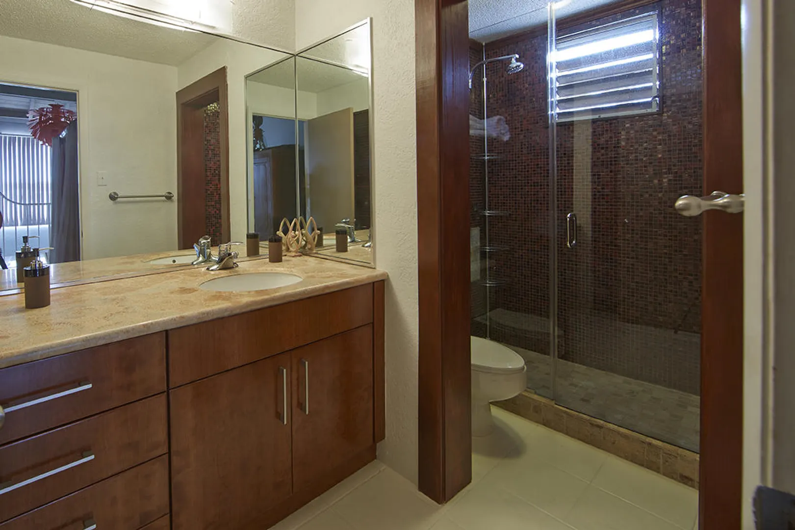 Penthouse 4th floor with high end upgrades and unobstructed views. The kitchen features granite counter tops, beautiful cabinets with hydraulic drawers. Powder room is a full bath, counter top is lapis granite, walls faux coral. Master bath has azul granite, and Italian Bisazza glass tiles. Chandelier is a Paul Henningsen Artichoke Lamp. This is a must see!
