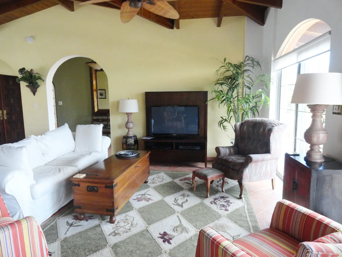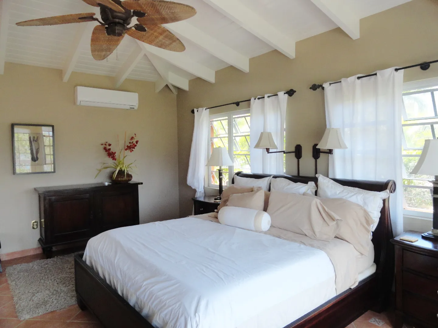 Lovely, spacious gated furnished home in exclusive Bakkeroe Estates with harbor view. Fully furnished with linens, dishes, etc. Split A/Cs, generator, wine cooler,dishwasher, walk-in closet, pool, gas grill. Rent includes twice monthly maid service,generator service and fuel, cable TV, pool and yard service. Additional maid service available at tenant's cost. 12 month lease.