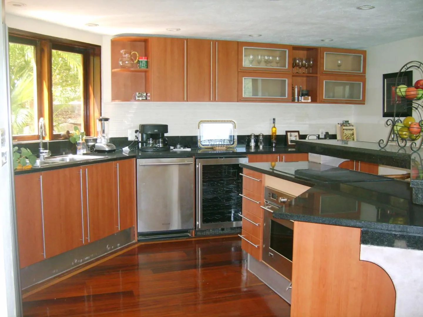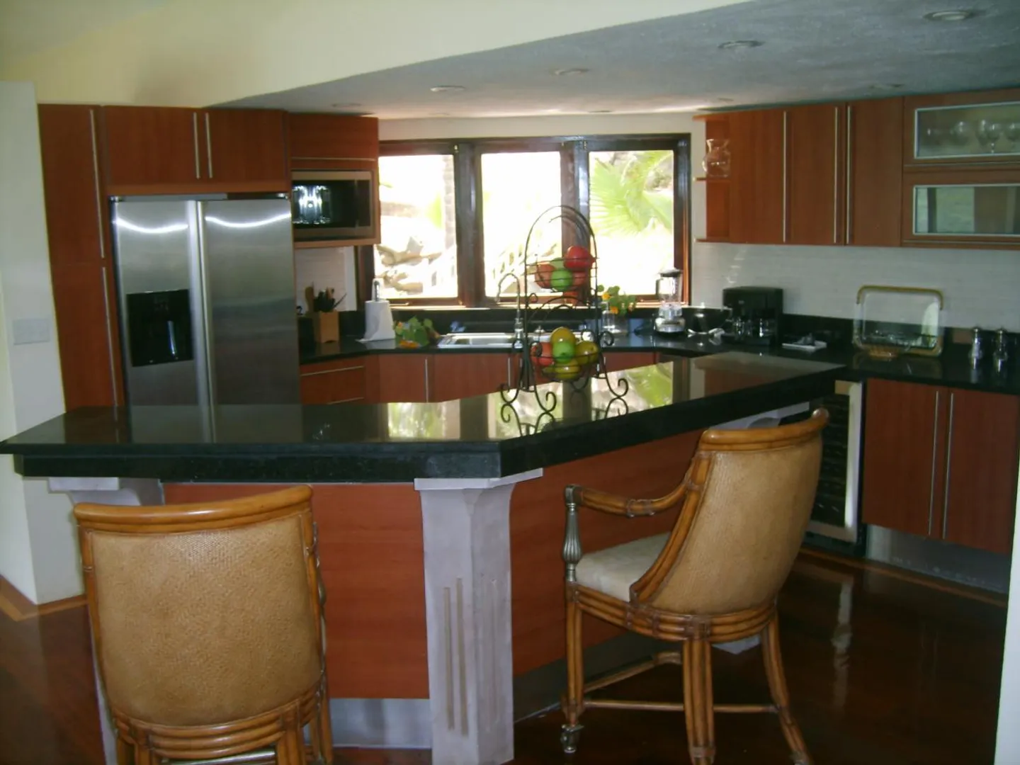 Lovely large home with fantastic views to Magen's Bay. Remodeled kitchen with stainless appliances, upgraded bathrooms with custom stonework, beautiful furnishings and more. Three bedrooms, three baths in main home and separate wing with two bedrooms and one bath. Studio apartment down not included with home and will be rented separately for $1,000/month. Infinity edge swimming pool.