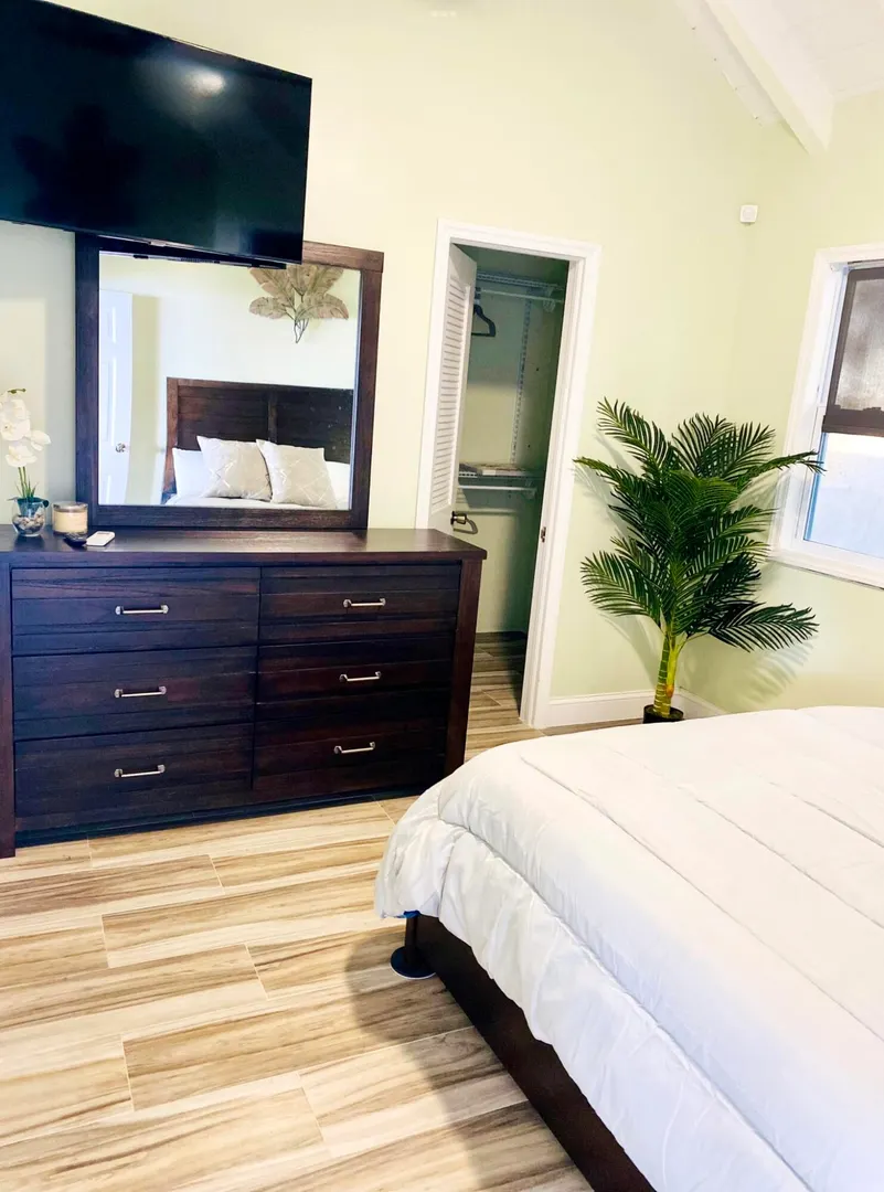 This remodeled single family residence is ready for immediate occupancy. Detailed with a spacious family room, a chef inspired kitchen, 3 generously sized bedrooms, 2 baths with walk in showers, expansive laundry room, and covered deck overlooking Preservence Bay. This warm and welcoming home sits off the ground to maximize the sweeping Caribbean Sea views. The home's entry is reached by a set of 14 steps. Equipped with solar, tenants will experience peace of mind in knowing they have less reliance on the local grid. Offered fully furnished with a monthly $400 electricity credit.
