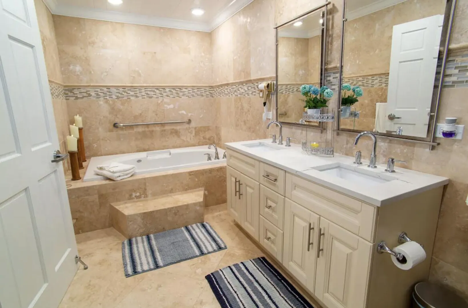 Space galore! This 3 bedroom 2 bath apartment has all the space you need. Walk into the living room with a dedicated work space on your right. The huge master is in the west wing and features a king sized bed, sitting area, walk in closet and en-suite master bathroom with a jetted tub and stand up shower. Relax after a long day on patio overlooking the pool. The kitchen and dining room separates the east wing which has two good sized bedrooms with queen beds. One of those bedrooms also has access to a porch. All bedrooms have ACs and Smart TVs. A whole house automatic generator is on standby along with laundry facilities.