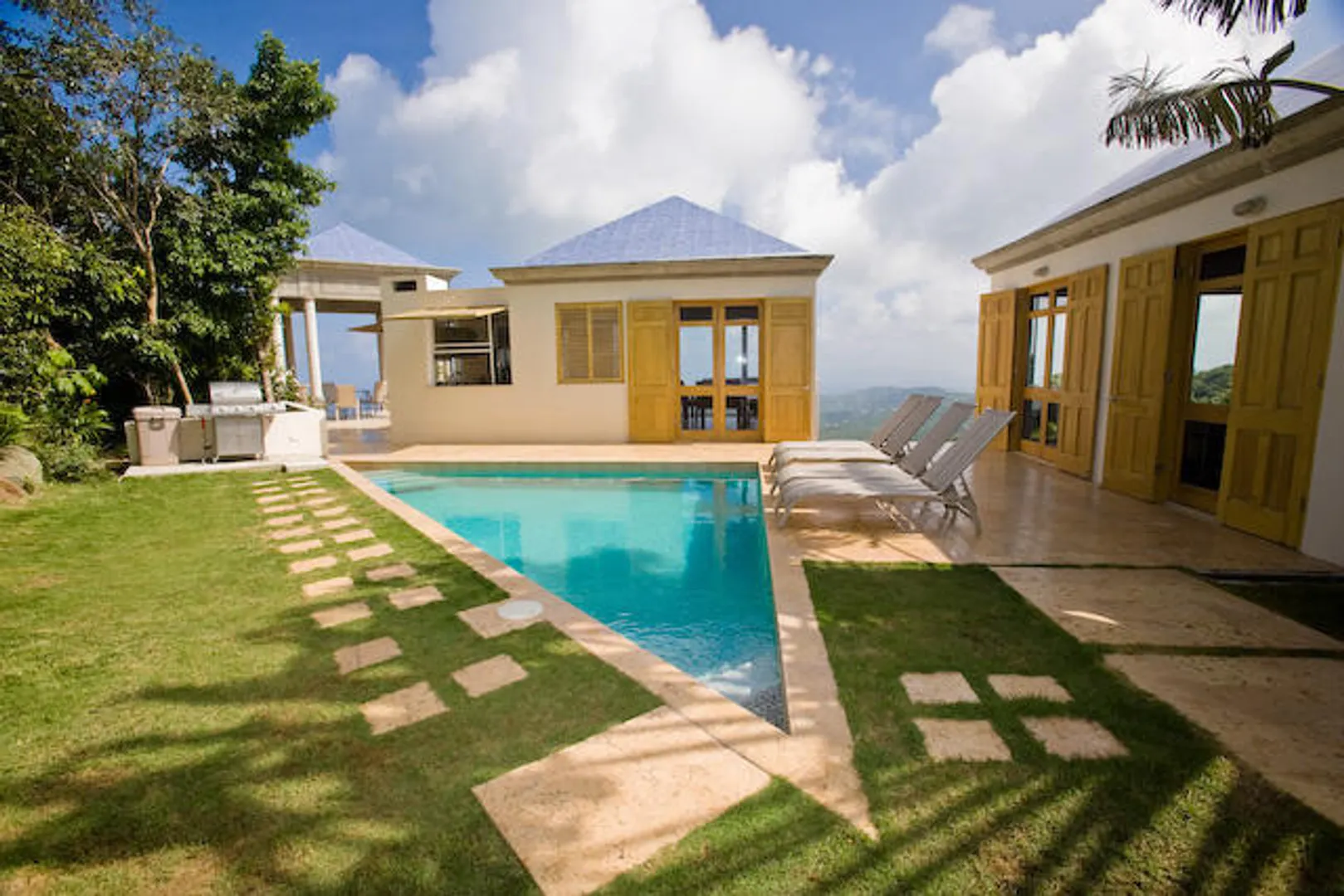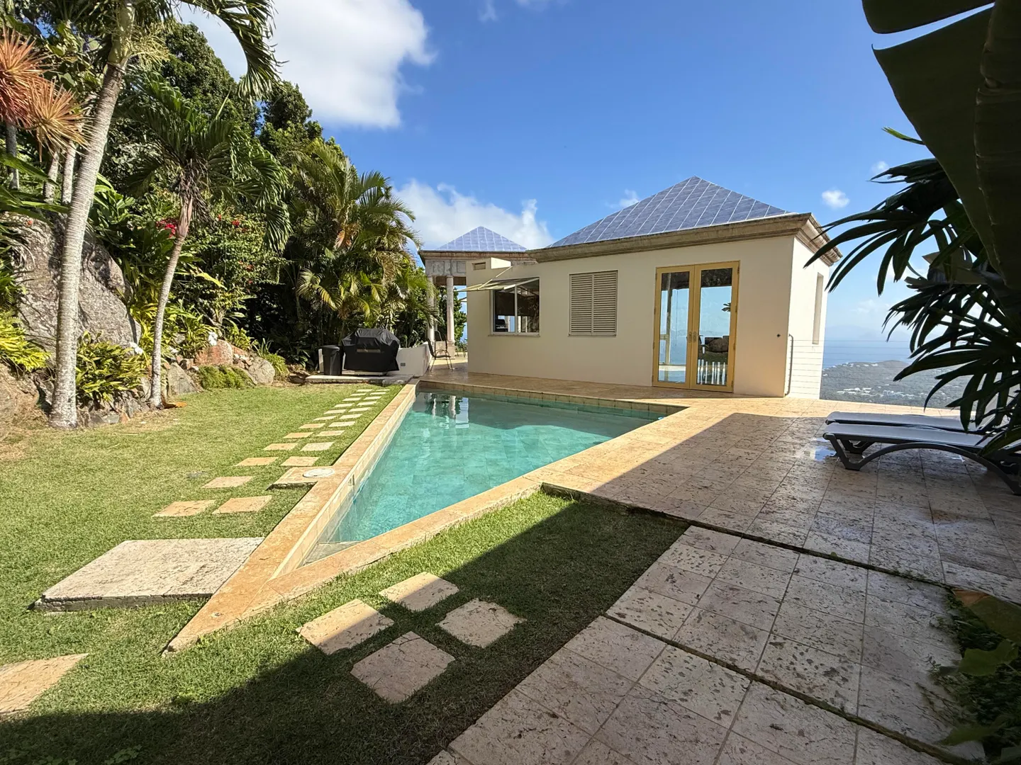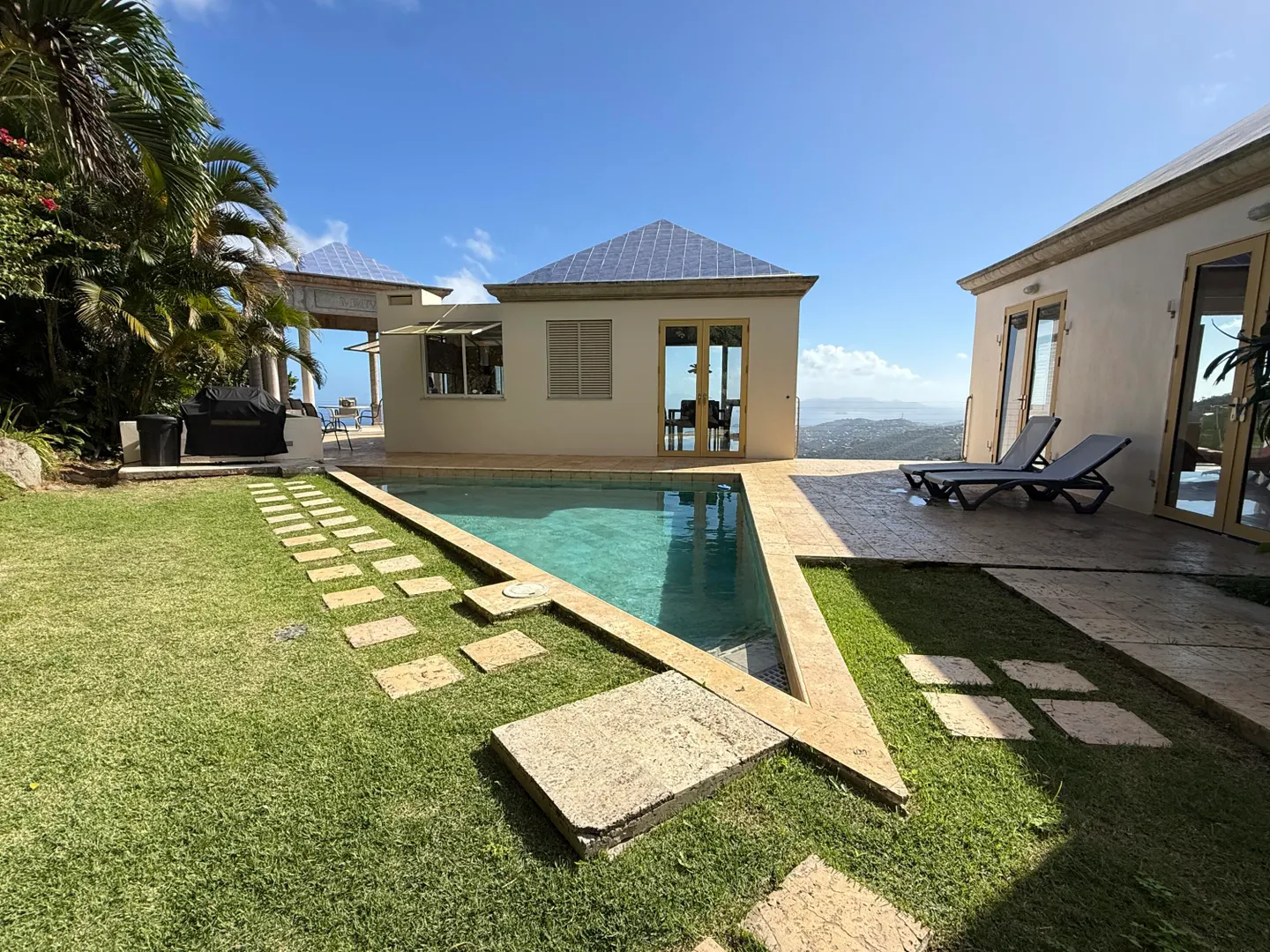 Experience luxury living in this pod-style 3-bedroom, 4-bathroom residence designed by local architects. This impeccably designed home offers a beautiful view of Magen's Bay. The property features a private pool, generator on site, washer and dryer and air conditioning in each room. Enjoy the convenience of each bedroom having its own en suite bathroom. Move in ready with all essentials provided - just bring your clothes and come ready to settle into this dreamy home.
