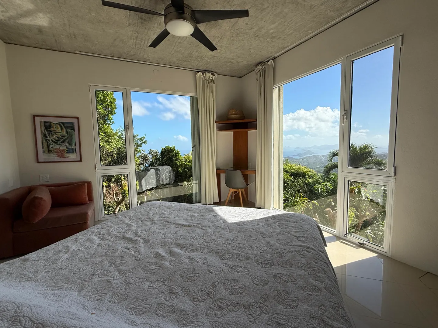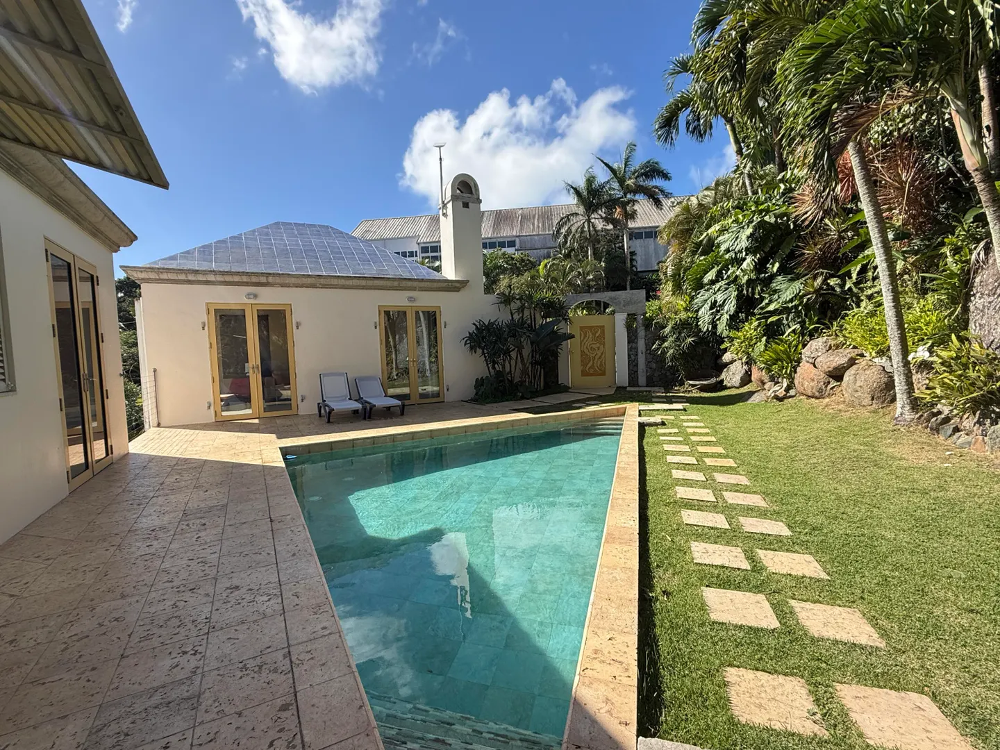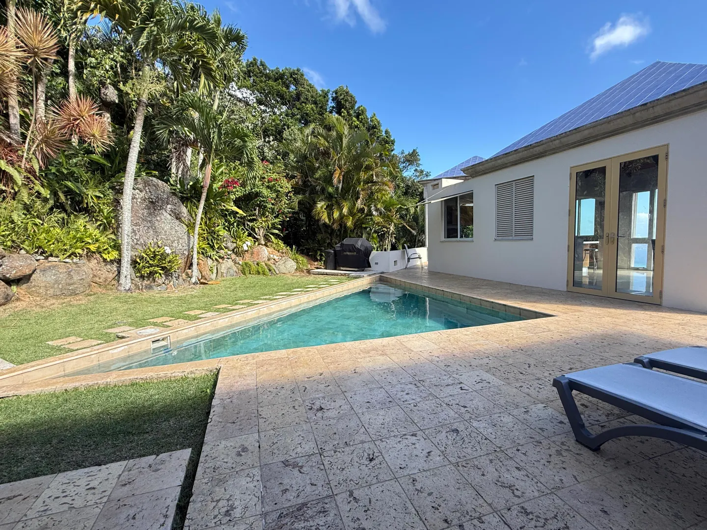Experience luxury living in this pod-style 3-bedroom, 4-bathroom residence designed by local architects. This impeccably designed home offers a beautiful view of Magen's Bay. The property features a private pool, generator on site, washer and dryer and air conditioning in each room. Enjoy the convenience of each bedroom having its own en suite bathroom. Move in ready with all essentials provided - just bring your clothes and come ready to settle into this dreamy home.