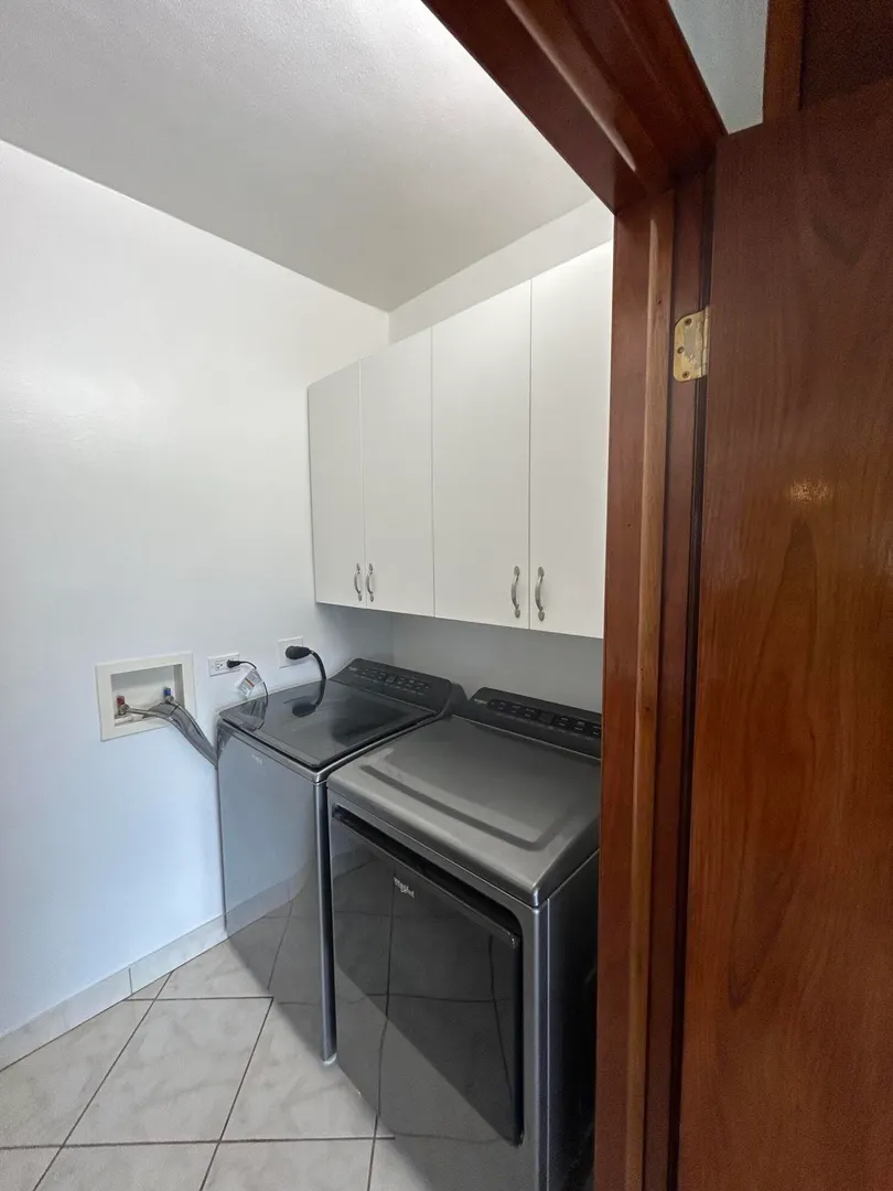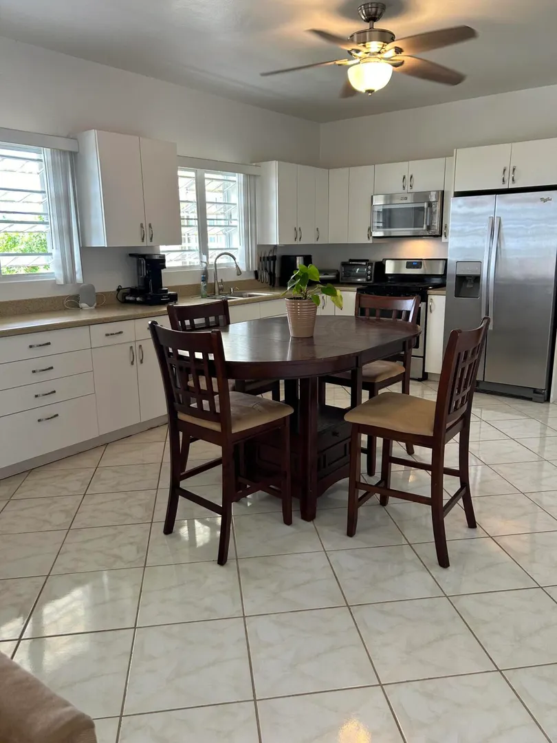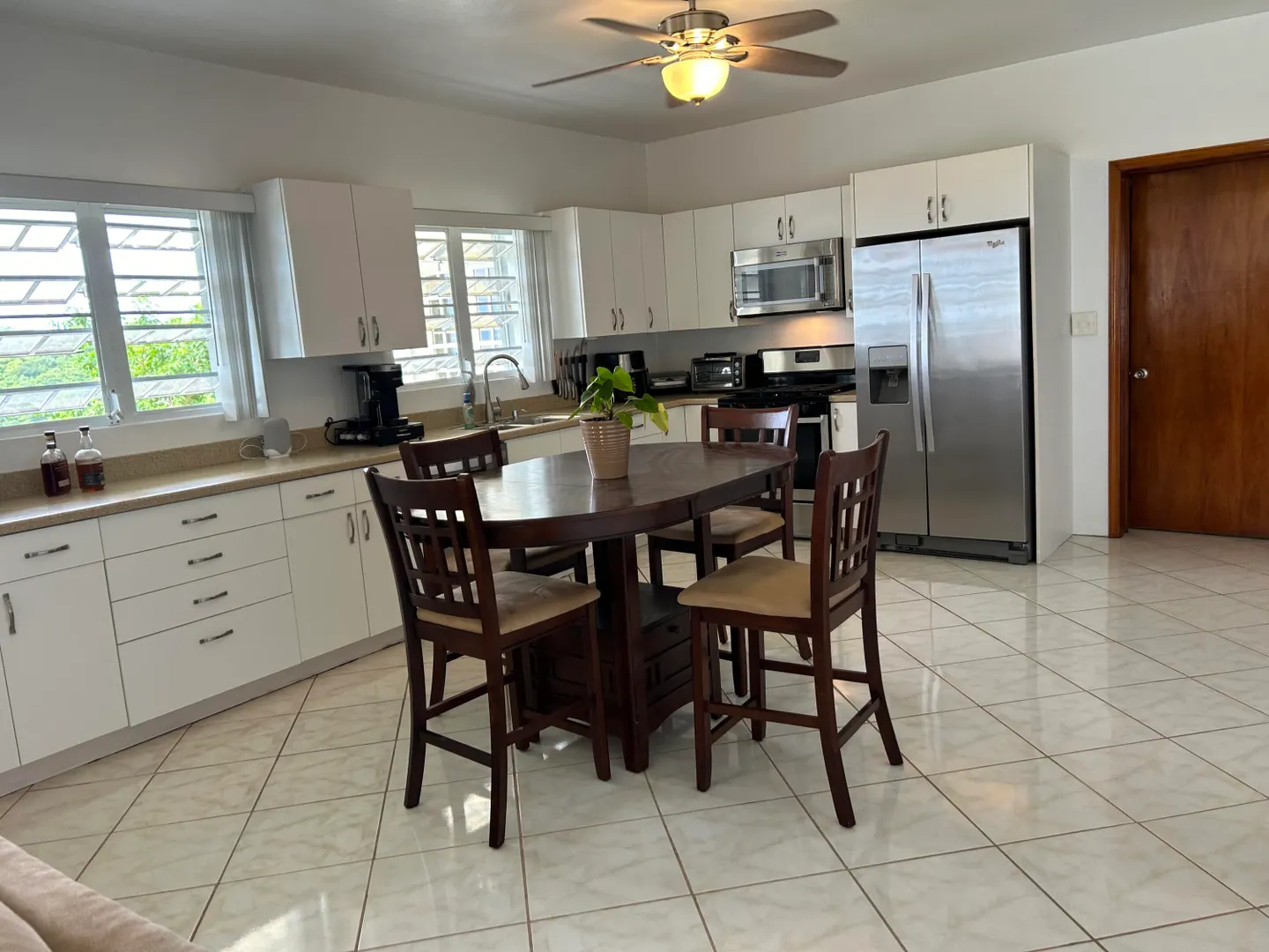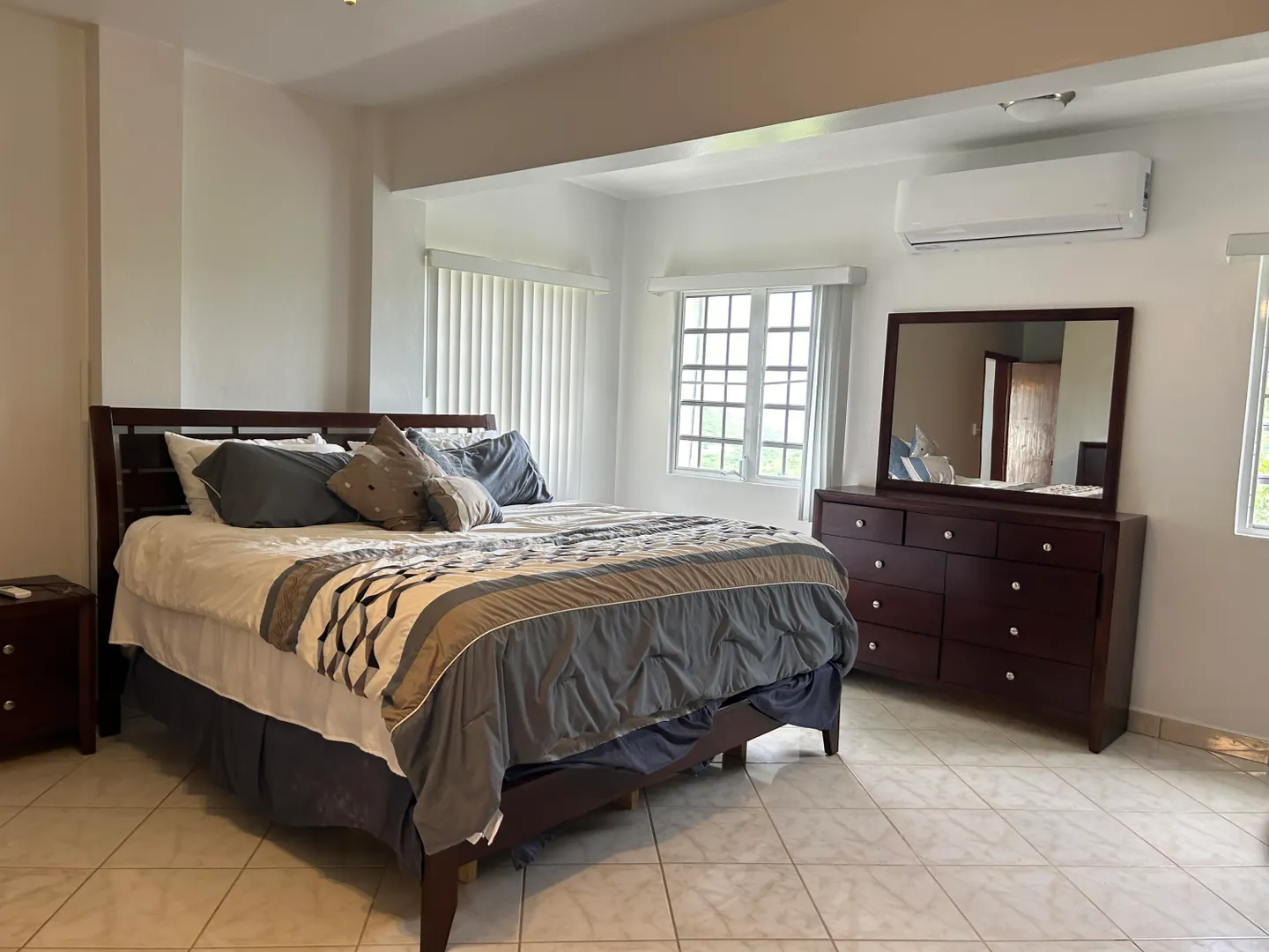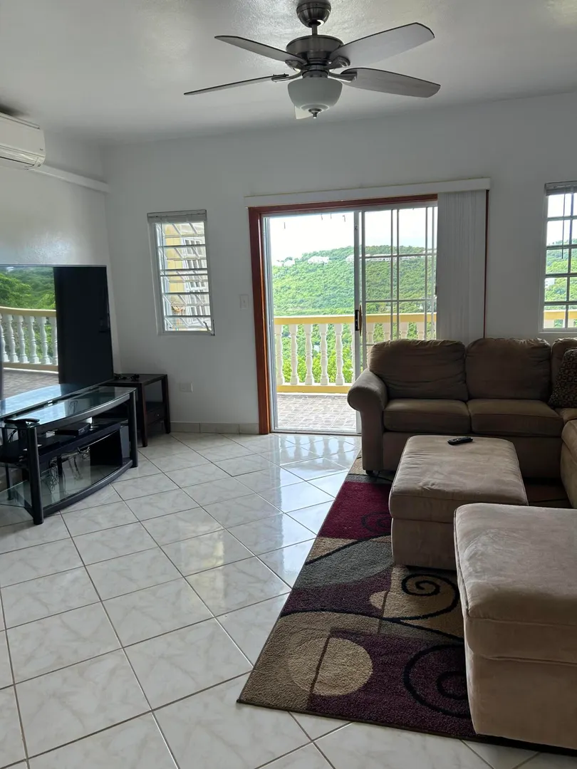Enjoy peace and tranquility high on the hillside of Estate Mandahl. This spacious apartment has the feel of an upper level home with high ceilings, upgraded appliances, tasteful decor and furnishings. Full size laundry room offers both washer and dryer. Each of the two ensuite bedrooms feature a flat screen TV and are located at opposite ends of the house from one another, offering the utmost in privacy. This rental is ready to move in, complete with kitchen supplies, televisions and more. All utilities to be transferred into tenants name. F/L/S required before tenancy. Credit Report, Application, and References (work and personal) required.