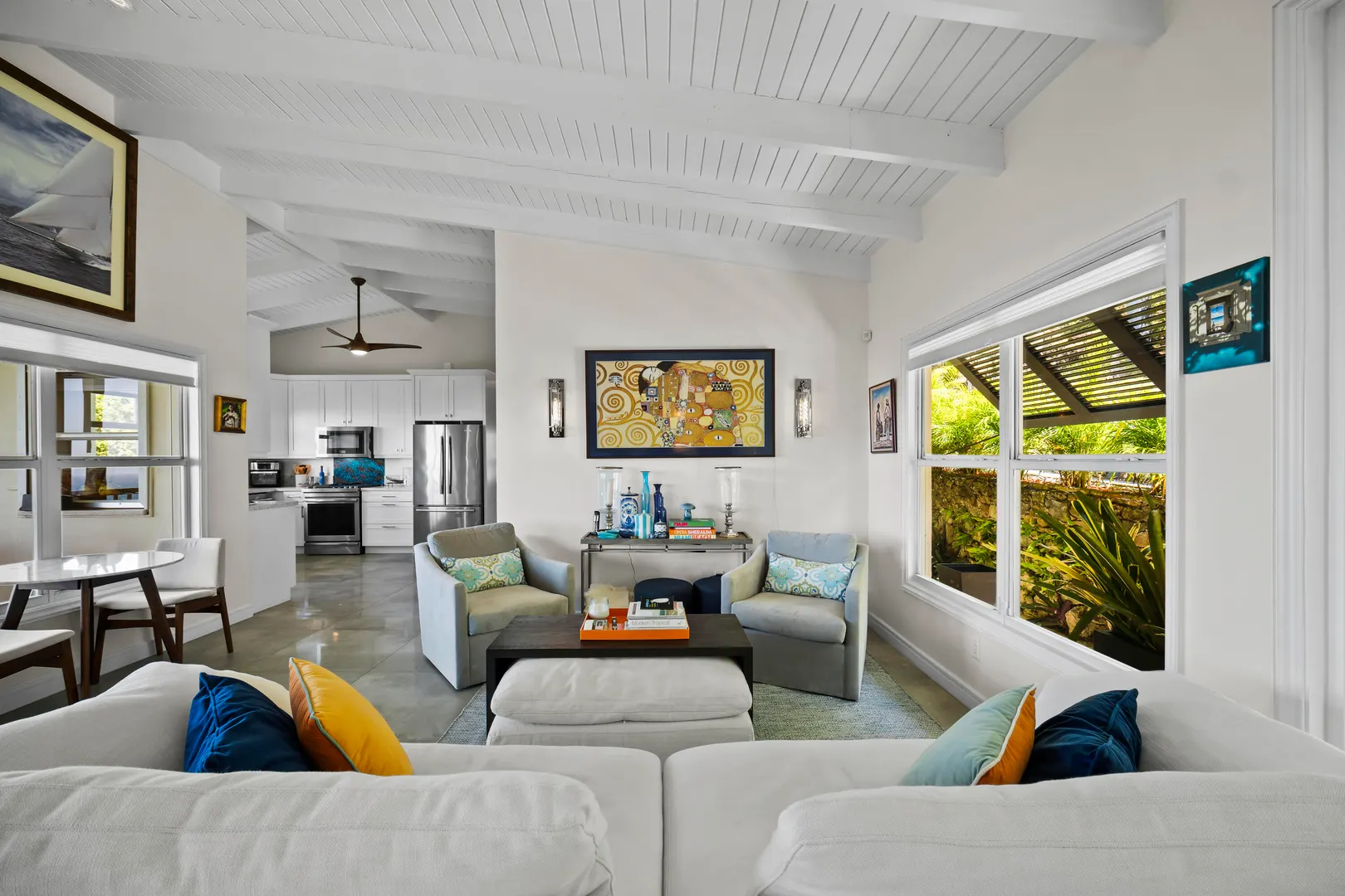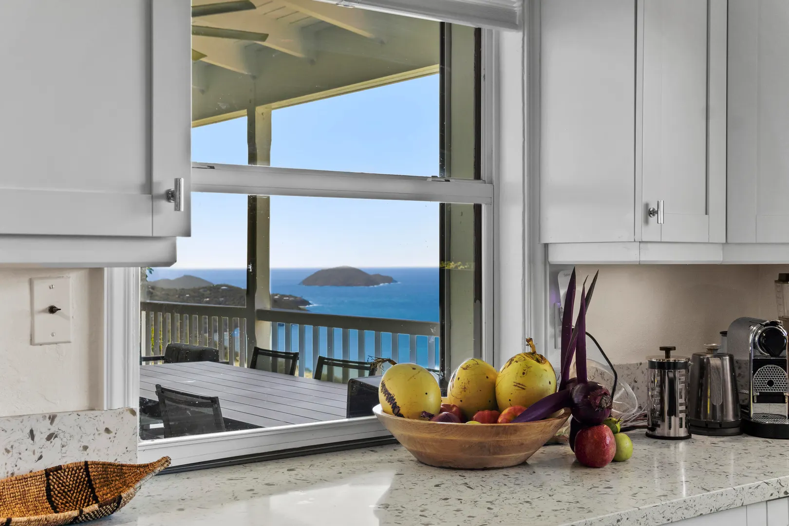 Luxury Living -- Flexible Multi-Unit Estate Turn-key 5BD/4BA gated estate offered fully furnished, blending Danish West Indies charm with contemporary design. Versatile layout functions as two 1BD apartments with private entrances and full kitchens, plus a 3BD/2BA upstairs residence with its own kitchen--ideal for crews, teams, or extended families wanting to live separately yet together. Features include a remodeled chef's kitchen with butler's pantry, hot tub, garage, ample parking, generator, alarm system, Sonos sound, and mature fruit trees. Just 5 minutes to town or Magens Bay, this property is an exceptional executive rental or private retreat, move-in ready.