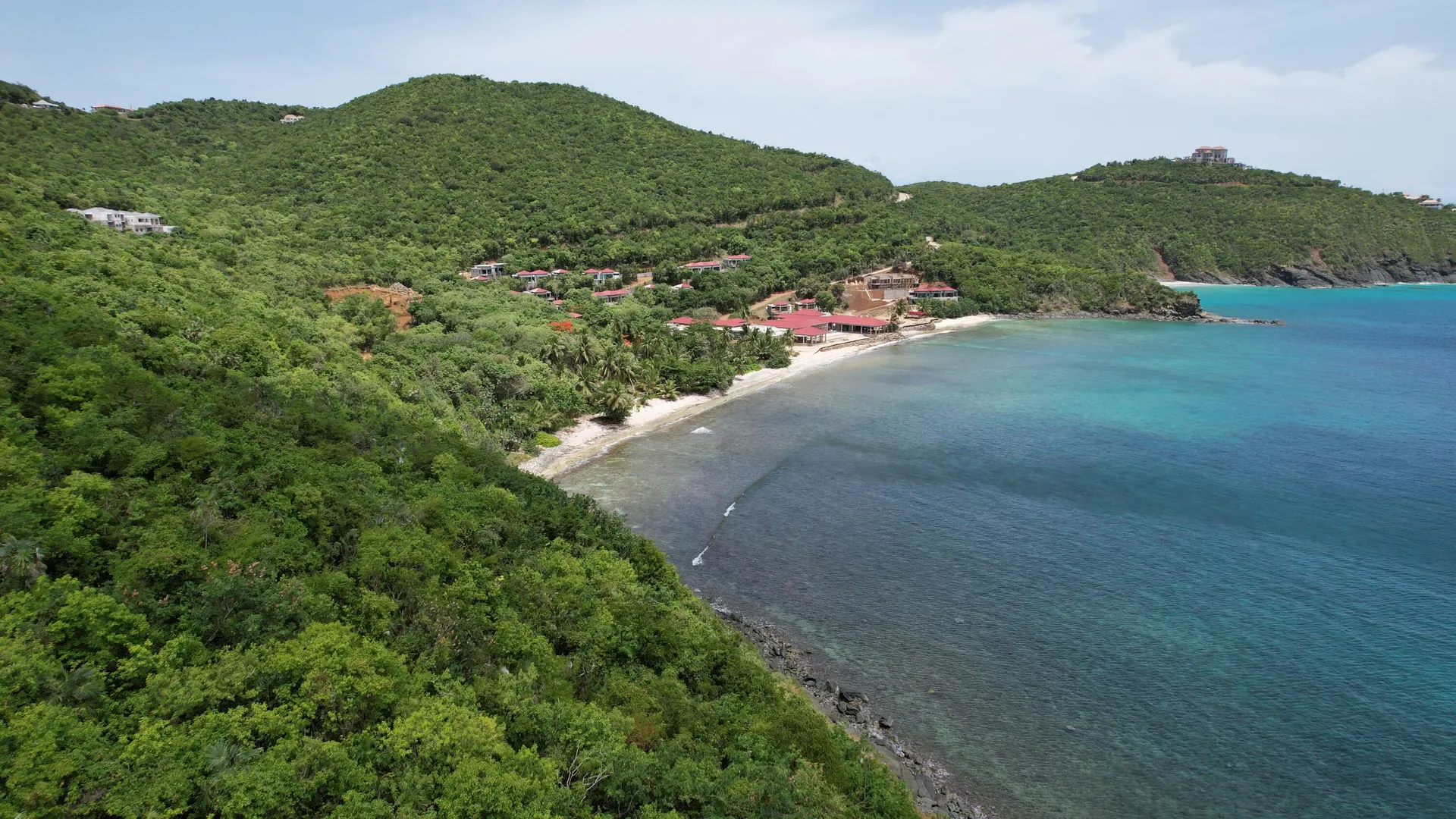 Prime promontory within gated Botany Bay. Sublime privacy over looking beaches, islands near and far, and an horizon as far as you can see. White ruffled waves break on the shore. The red roofs of brand-new Botany Hotel adds Caribbean color to the scene. Several building sites come to mind with a sweeping driveway . The lush land is moderately sloped. If you dream of a Tropical oasis, flesh it out on this stunning acerage.