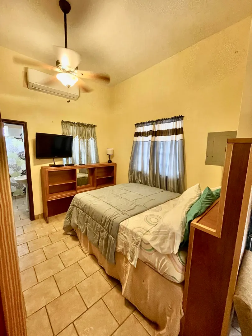 Fully furnished studio apartment with A/C. Rent includes electricity, water, cable and internet. The property is gated with off street parking. There is solar and a back up generator. You never have to worry about losing power. No smoking anywhere on property.