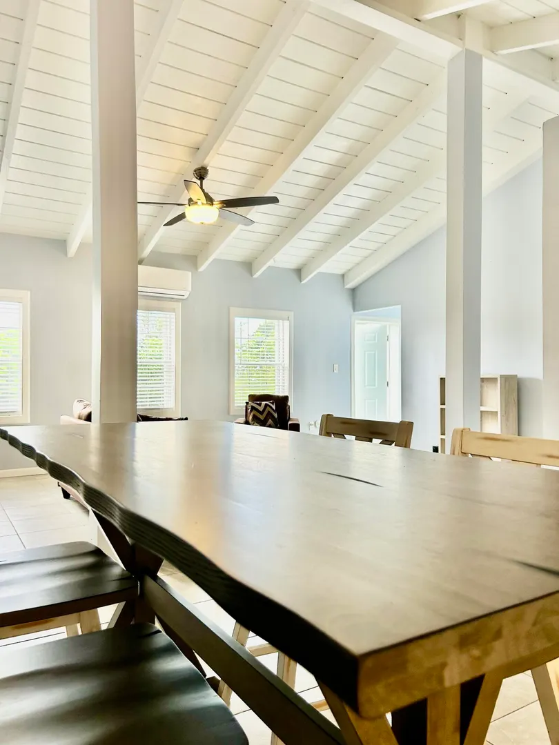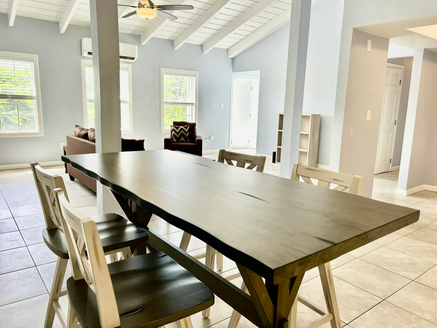 CORPORATE HOUSING or a FAMILY HOME. Discover your dream RENTAL on the serene western side of St Thomas, in the quiet residential community of Fortuna. This spacious 3/2 furnished residence is in pristine condition, having recently undergone multiple renovations. The expansive yard provides ample space and privacy from neighboring homes, making it an ideal location for parking multiple company vehicles, enjoying wide-open areas for outdoor play, gardening or simply unwinding in the back yard with a glass of wine while cooking dinner on the grill. This home is equipped with conveniences including a generator, split AC units, ceiling fans, washer/dryer , security system and a fenced dog run.