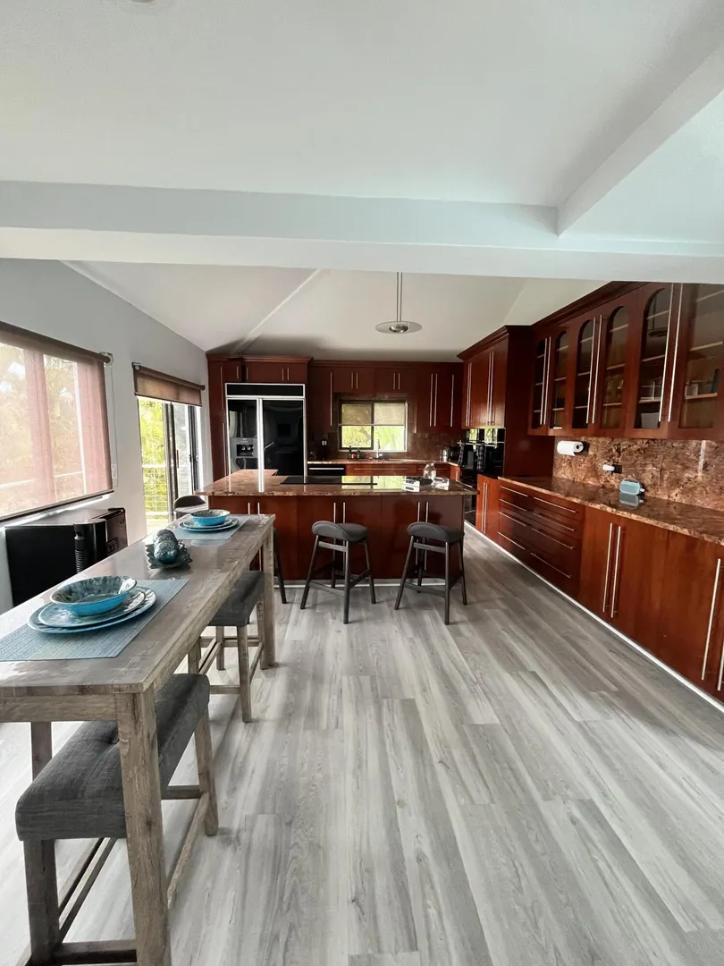 Villa Atasi is a beautiful MOVE IN READY 2 bed/3 bath/ Pool unit located in quiet neighborhood private porches with ocean views of Magens Bay lush fruit trees and healthy green foliage off street parking conveniently located 10 min from town, 15 min from Redhook Split ACs in bedrooms onsite Washer/Dryer Walk in closet/ separate shoe closet massive entertaining kitchen secluded pool Perfect for professionals or family