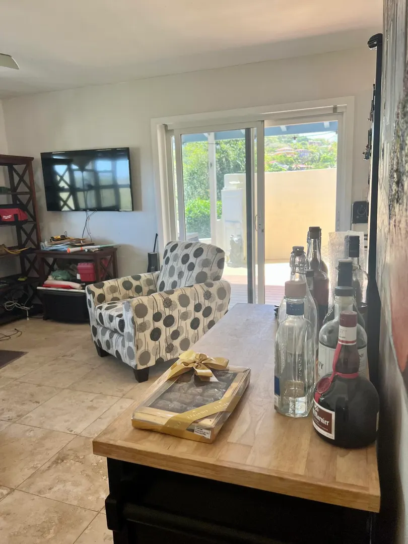 All of the utilities are included in this 1 bedroom, 1 bathroom unit! Centrally located this bright and airy unit features AC in the bedroom, shared washer and dryer, and an automatic backup generator. Enjoy a covered deck and views of north shore. Magens Bay is a 5 minute drive away. Stores and restaurants are nearby. Set yourself up for success and make an appointment to see this unit!