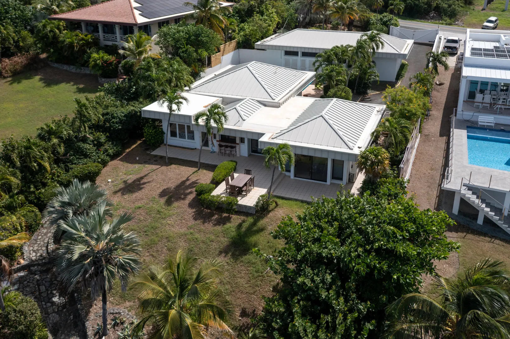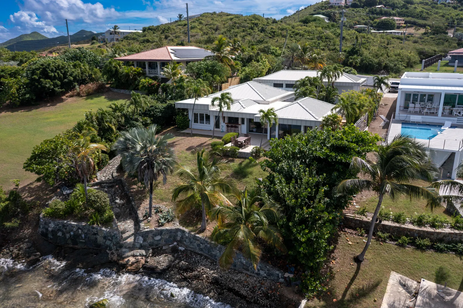 Spectacular beachfront living awaits as you enter through the private gates of this stunning home on more than 80 feet of secluded beach on St. Croix's East End. With a total of three bedrooms and now three full bathrooms plus a half bathroom, this property showcases panoramic views with Buck Island as the centerpiece and is sure to delight even the most discerning buyers. Fresh exterior paint enhances the home's curb appeal, and the main house sits approximately 20 feet above sea level, capturing steady breezes and postcard-worthy vistas. The expansive patio and pass-through kitchen window bar create true alfresco living, ideal for effortless entertaining. POTENTIAL OWNER CARRY FINANCING AND, OF COURSE, BANK FINANCING IS AVAILABLE FOR THIS PROPERTY.The main house features two bedrooms, two full and one half bathroom, an open floor plan with soaring cathedral ceilings, and a gourmet kitchen with granite countertops and custom cabinetry. The home is equipped with two solar hot water heaters that provide energy savings and added efficiency. Family and guests will appreciate the private one bedroom, one bathroom guest house complete with a cozy living room and kitchenette.