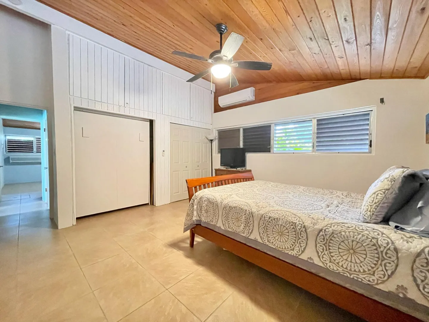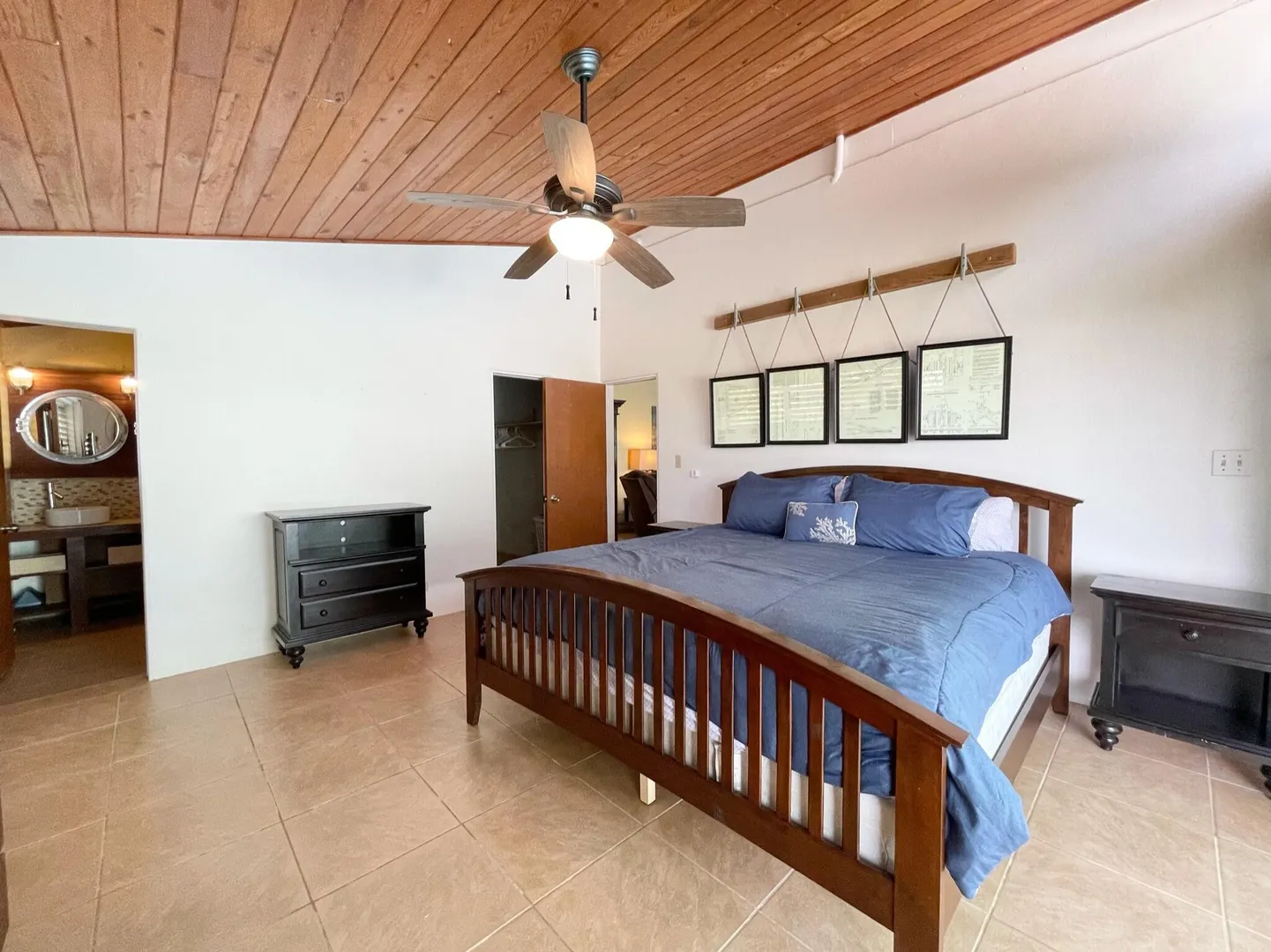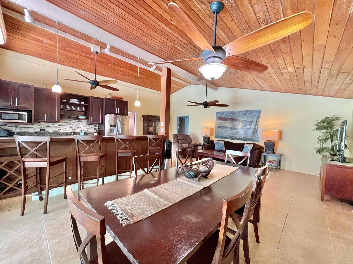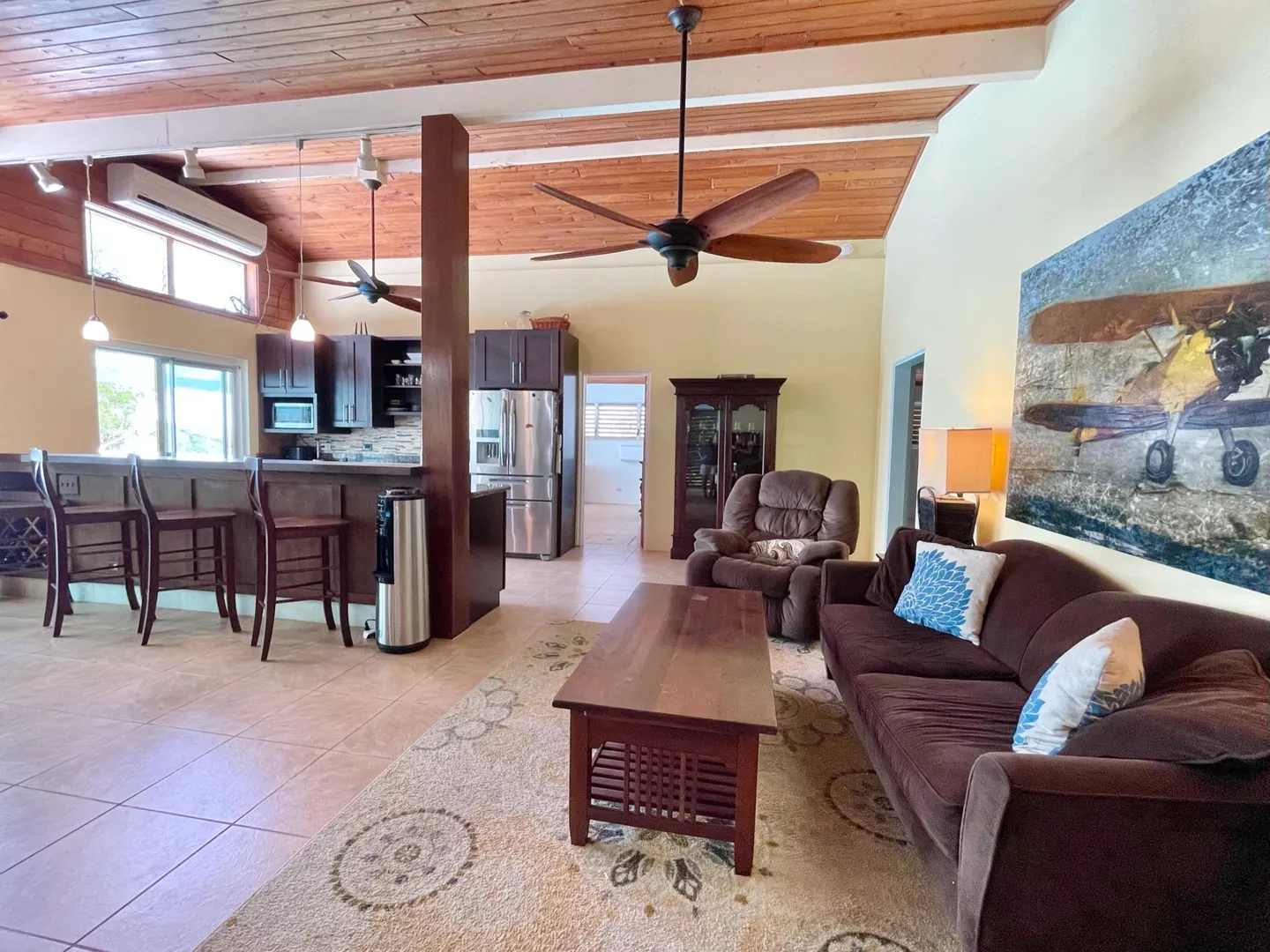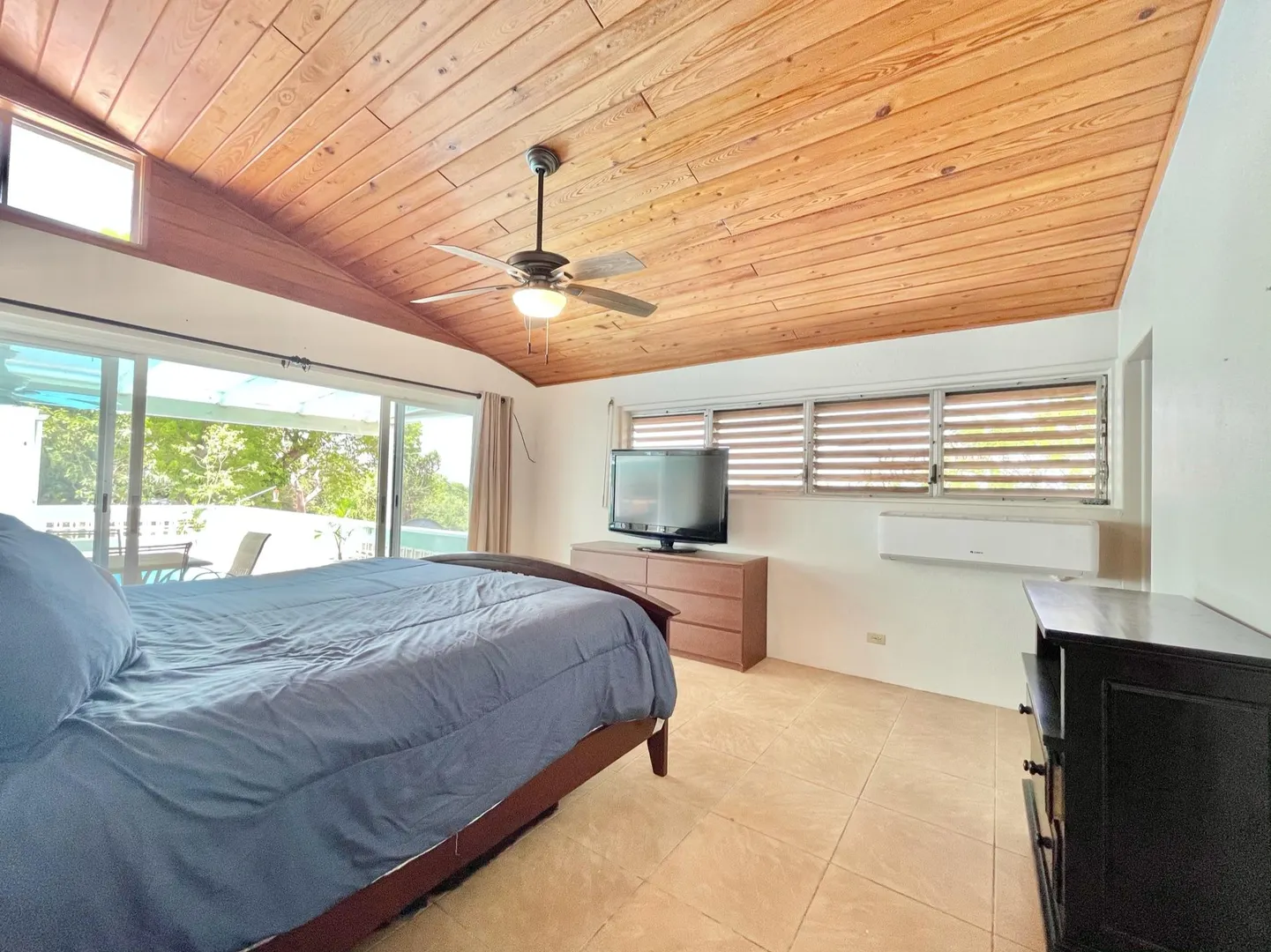 Nestled in the green hills and with beautiful views of the Caribbean Sea, this 3 bedroom 2 bathroom house is private and inviting. The updated kitchen with stainless steel appliances and large kitchen island opens up to the living and dining room. Open the sliding glass doors and enjoy the breeze and inviting pool area. The spacious master bedroom has ensuite bathroom, walk-in closet and its own private access to the pool. The two large additional bedrooms are perfect for hosting guests with its extra Murphy style beds. Cool off in the pool or enjoy dining al fresco under the covered gallery. The garage has ample space for storage and a workshop. The house comes with a 12.5KW - propane generator with 500 gallon tank and solar hot water heater.