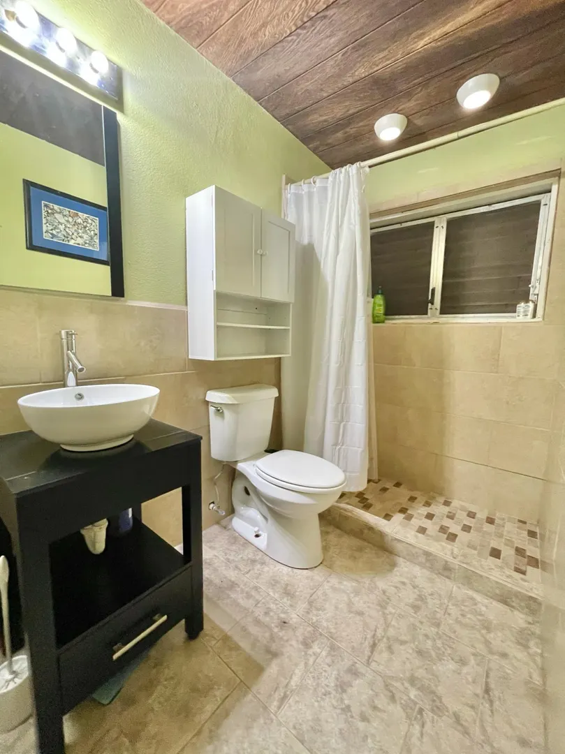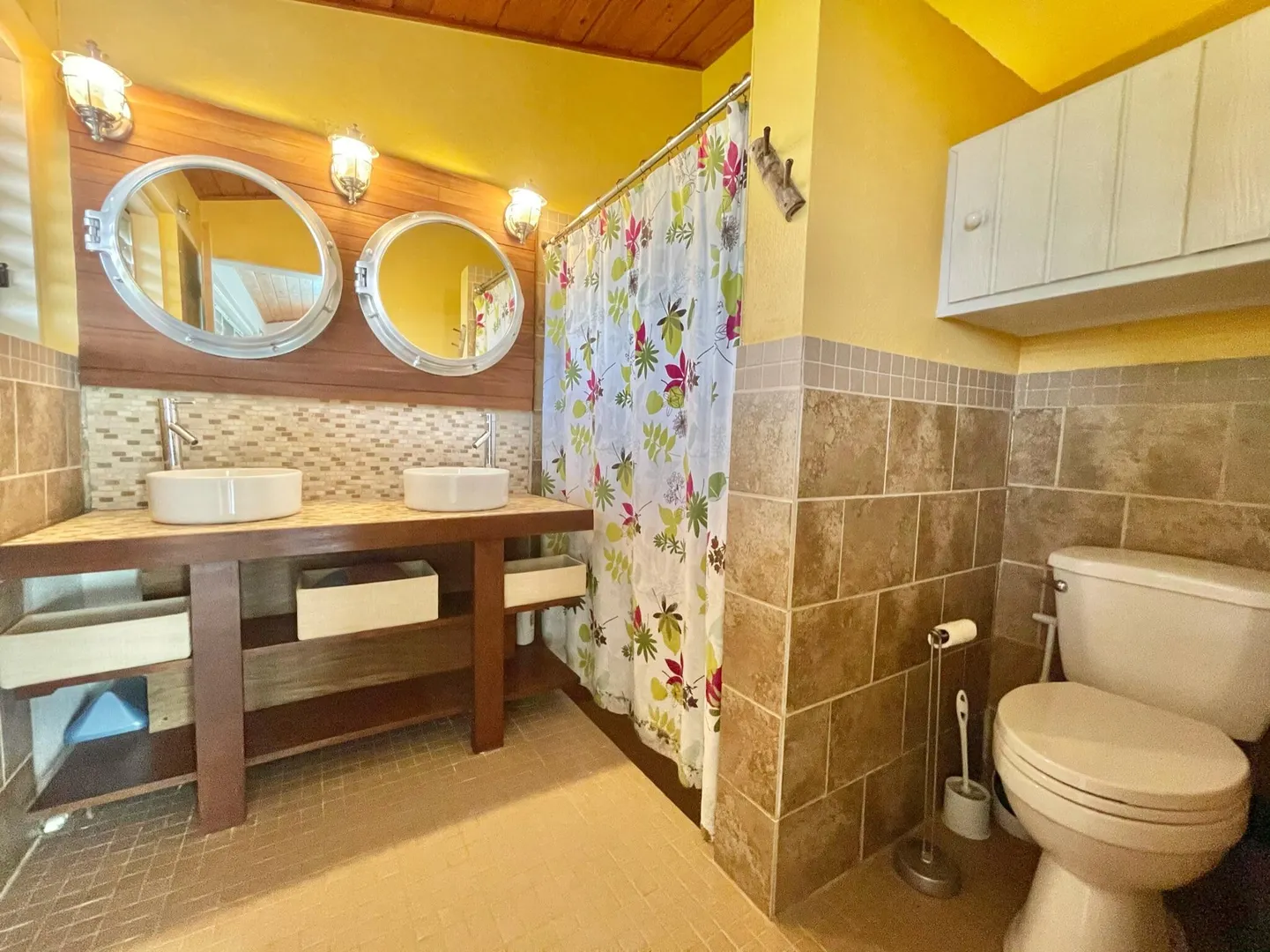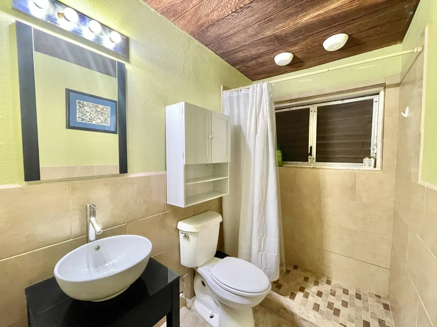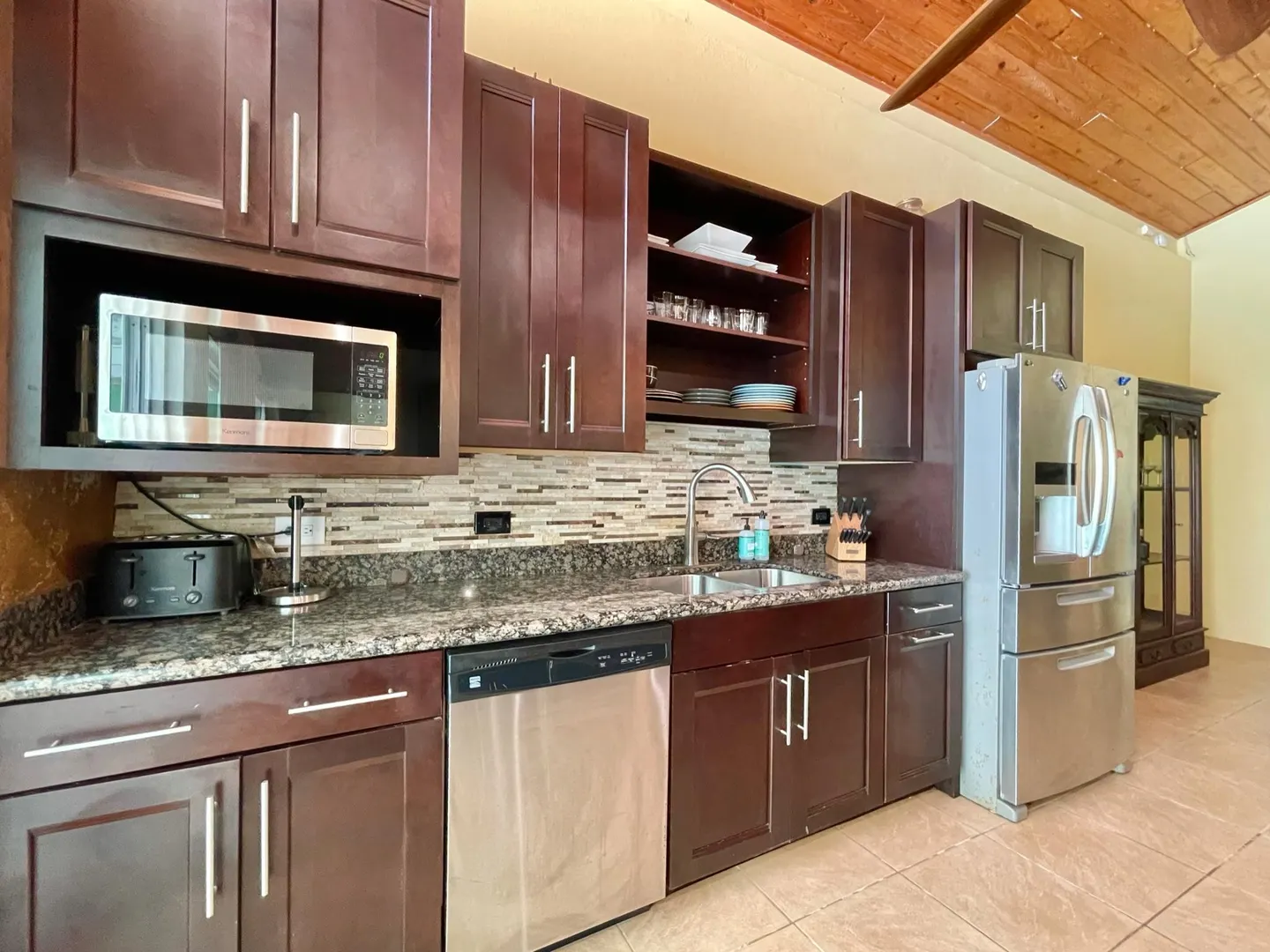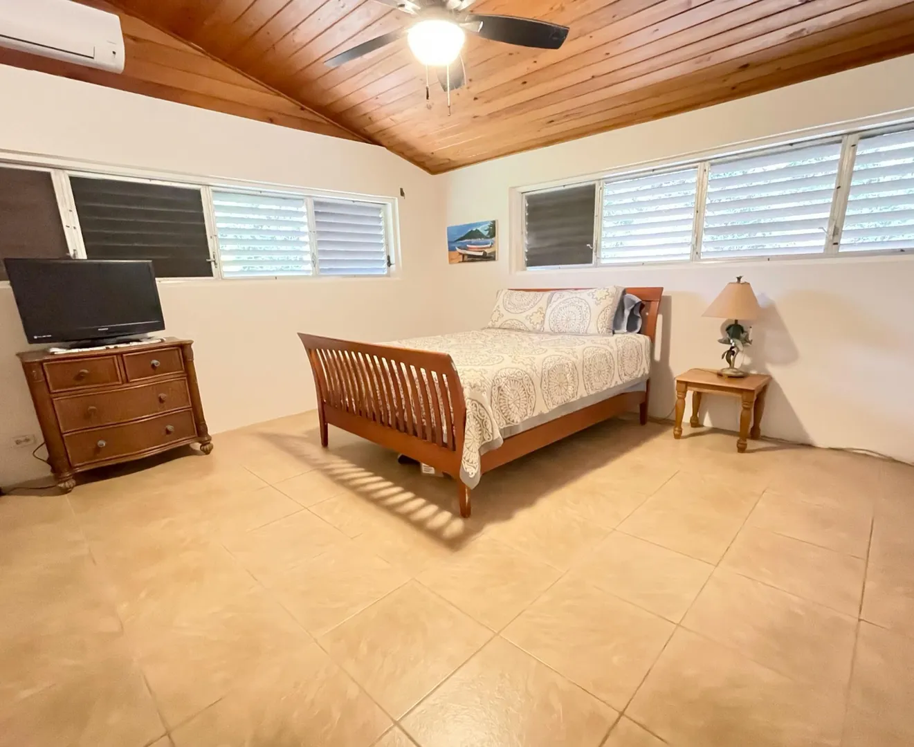 Nestled in the green hills and with beautiful views of the Caribbean Sea, this 3 bedroom 2 bathroom house is private and inviting. The updated kitchen with stainless steel appliances and large kitchen island opens up to the living and dining room. Open the sliding glass doors and enjoy the breeze and inviting pool area. The spacious master bedroom has ensuite bathroom, walk-in closet and its own private access to the pool. The two large additional bedrooms are perfect for hosting guests with its extra Murphy style beds. Cool off in the pool or enjoy dining al fresco under the covered gallery. The garage has ample space for storage and a workshop. The house comes with a 12.5KW - propane generator with 500 gallon tank and solar hot water heater.