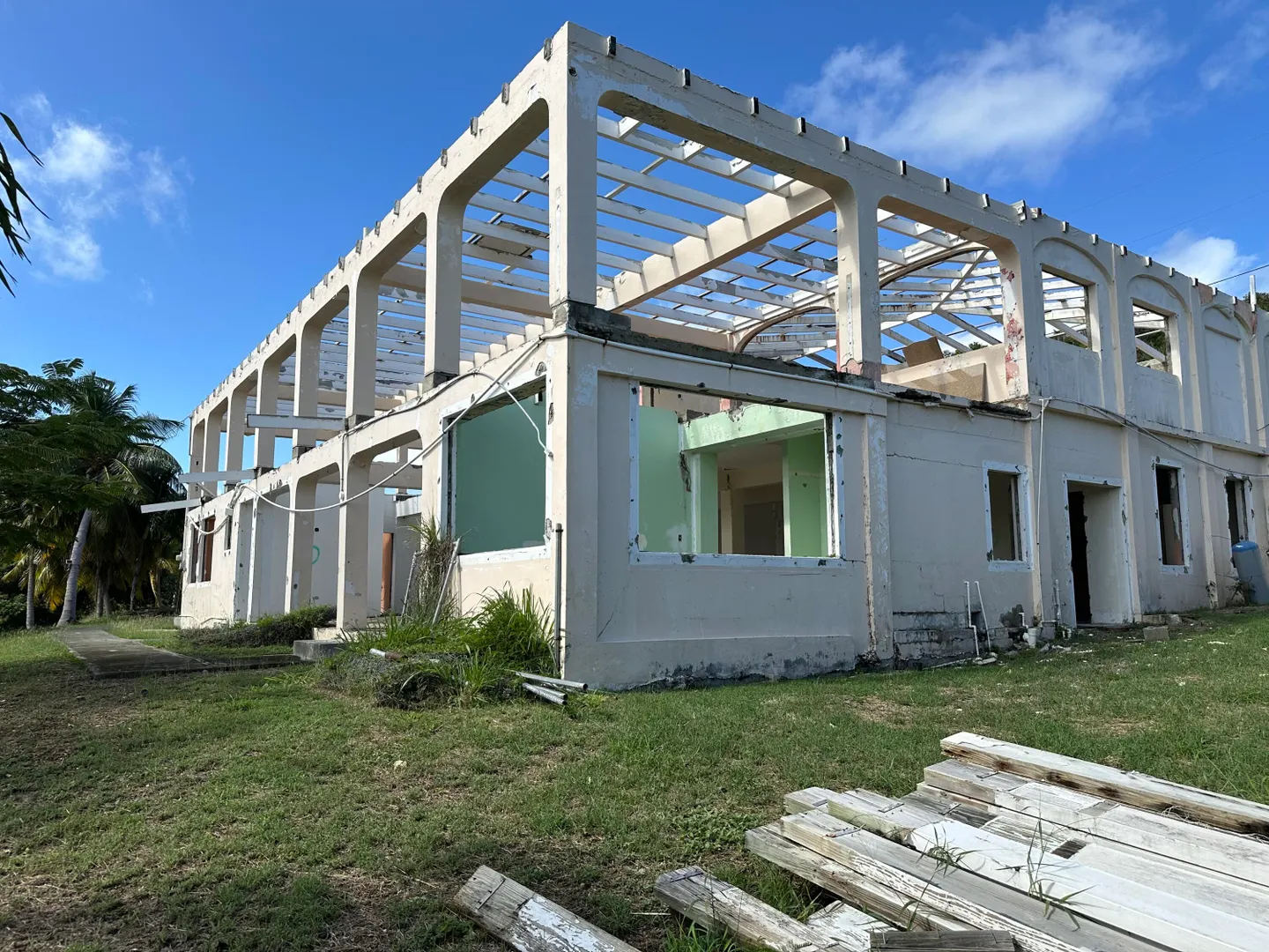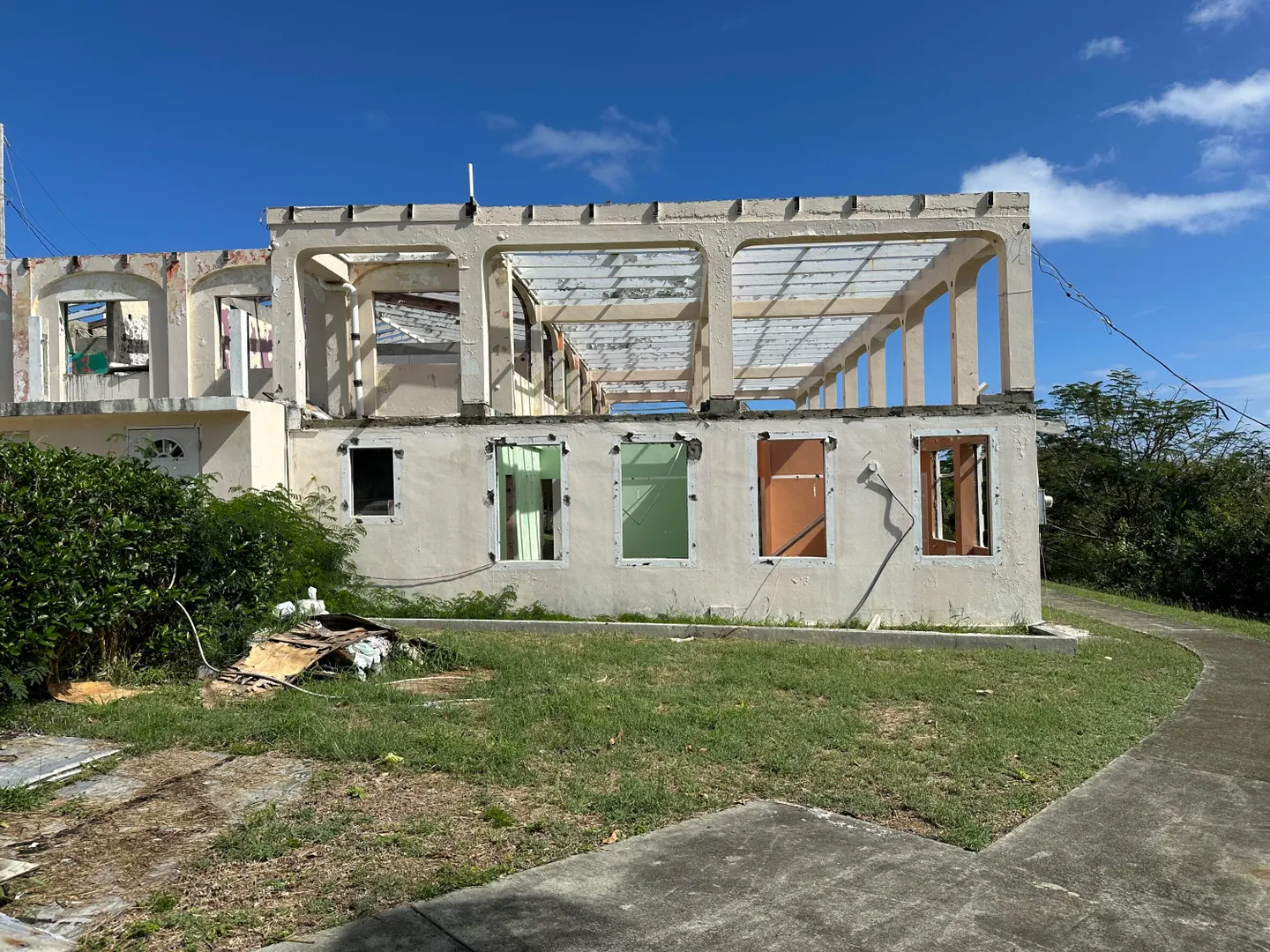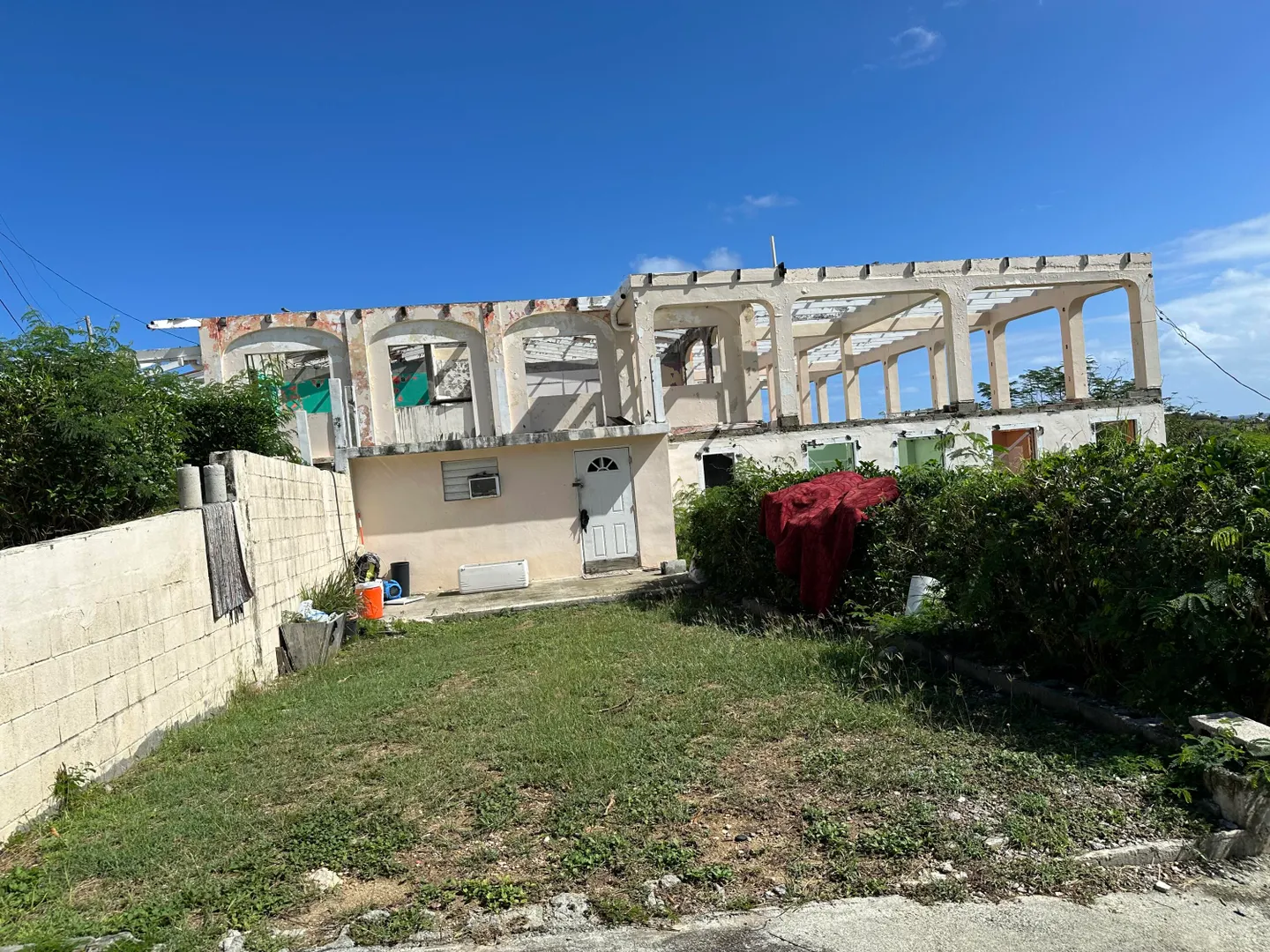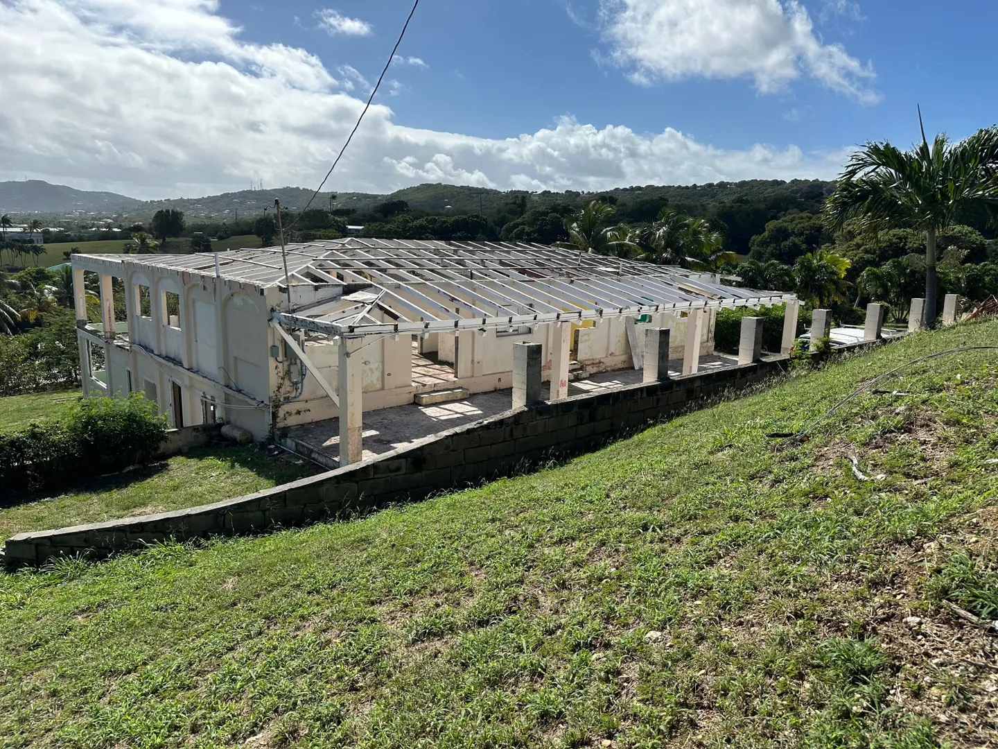 Gigantic sea view home in desirable Judiths Fancy, hurricane damaged (no roof), many many improvements including long concrete drive, mature landscaping. Top floor (main house) had exceptionally large (3000SF) covered deck for entertaining, Bottom level is large apartment with private entrance. Priced to sell!!!! Adjacent three building lots (Plots 173, 174, and 175) are also available.