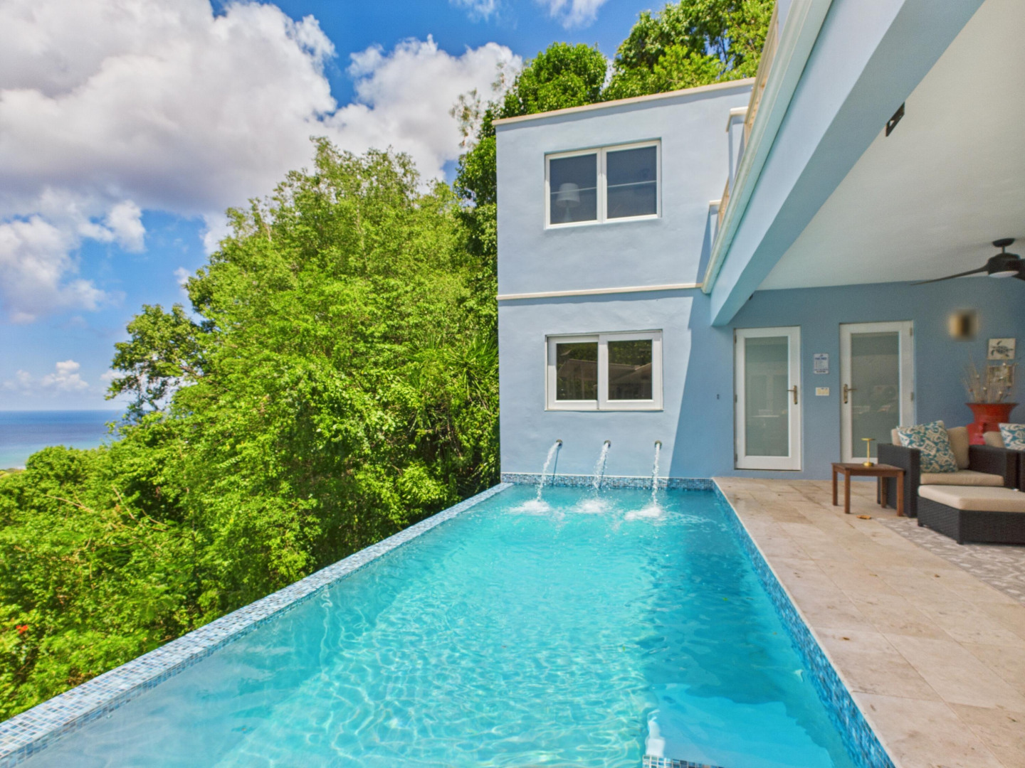 Experience Caribbean living on the lush North Shore with this hillside retreat at 195 La Vallee. The main home offers a custom kitchen, airy living spaces, and seamless flow to a covered gallery, perfect for indoor-outdoor enjoyment. The property includes an infinity pool, built-in grill patio, and a 2-story guesthouse with two en suite bedrooms. A private 2BR/2BA apartment below, complete with its own hot tub and entrance, enhances the rental potential. Just minutes from Cane Bay's renowned dive sites, scenic beaches, and vibrant restaurants.Welcome to your North Shore oasis at 195 La Vallee, where striking views, thoughtful design, and income potential converge. Tucked into the hillside, this property offers an ideal blend of privacy and convenience, with quick access to Cane Bay Beachone of St. Croix's most scenic and lively coastal areas, known for world-class diving, oceanfront dining, and a friendly island atmosphere.