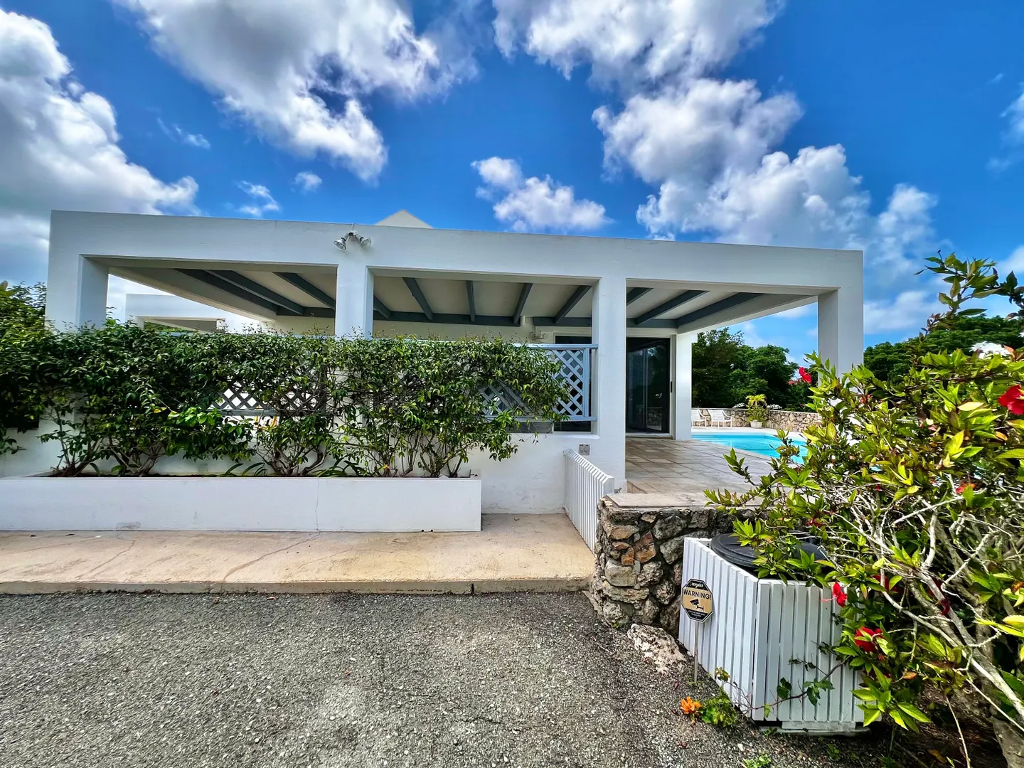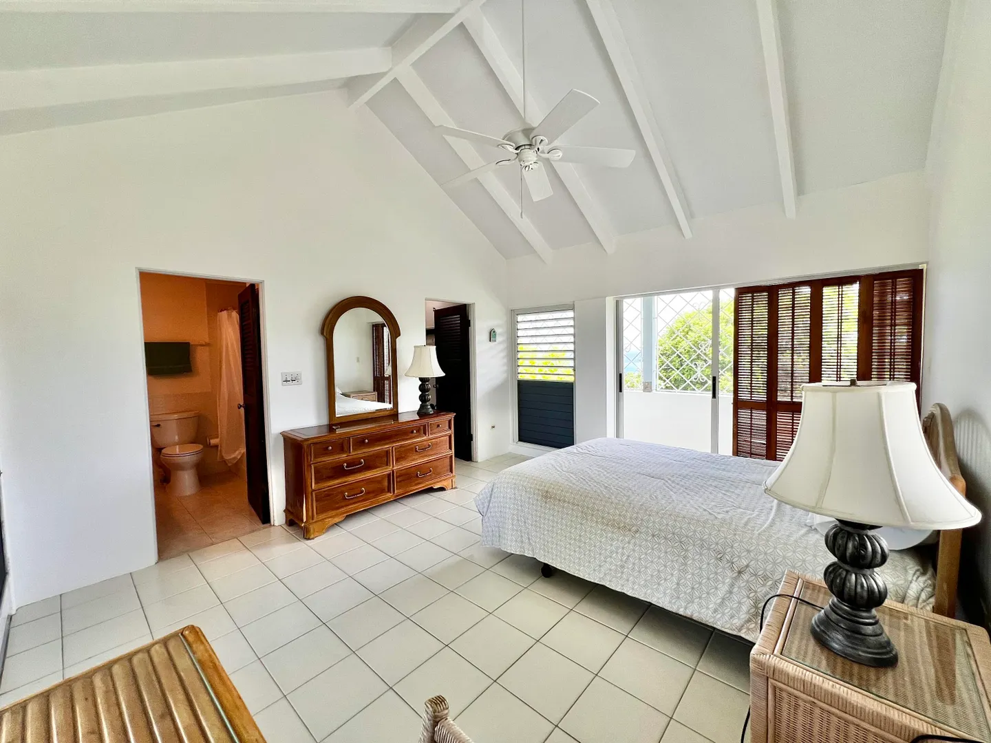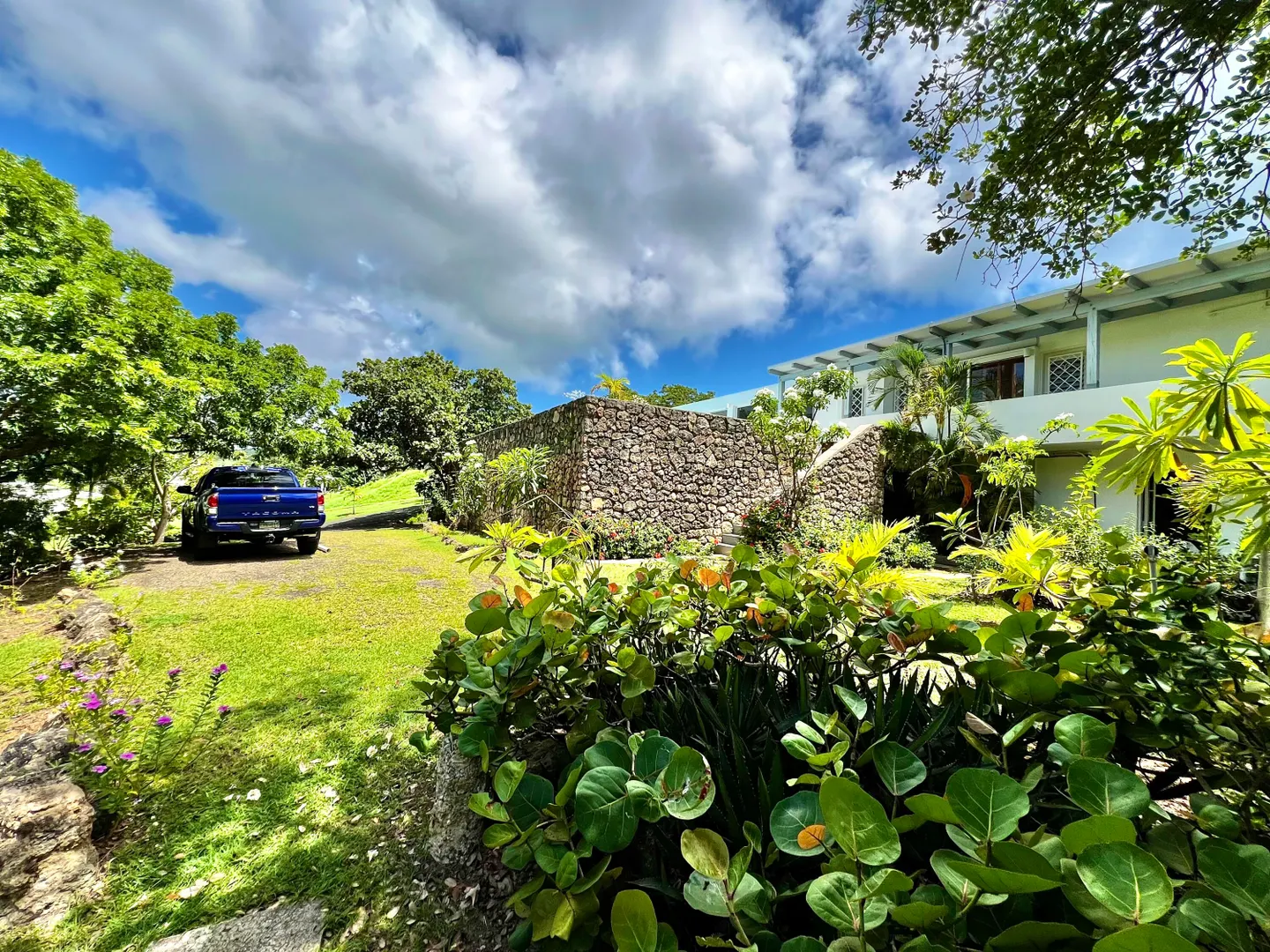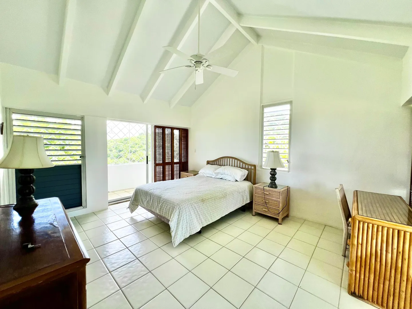 Experience island living at its finest in this three-bedroom villa with a spacious apartment featuring a large swimming pool and a sunlit deck. Nestled amid tranquil outdoor alcoves and shaded seating areas throughout, the property, set back from the Hermon Hill neighborhood road, offers privacy and serenity. The villa, set on a large yard, is surrounded by majestic old trees and lush landscaping adding to its tranquil vibe. The home has a large great room that is flanked by sea views and galleries to the north and the swimming pool to the south, with potential sea views in that direction. Two primary bedrooms, each with a private entrance via a covered exterior walkway, open to a sea-facing gallery and a shaded outdoor living area. The third bedroom, which can also serve as an officeis located off the large living room, making it versatile for guests or hybrid use.