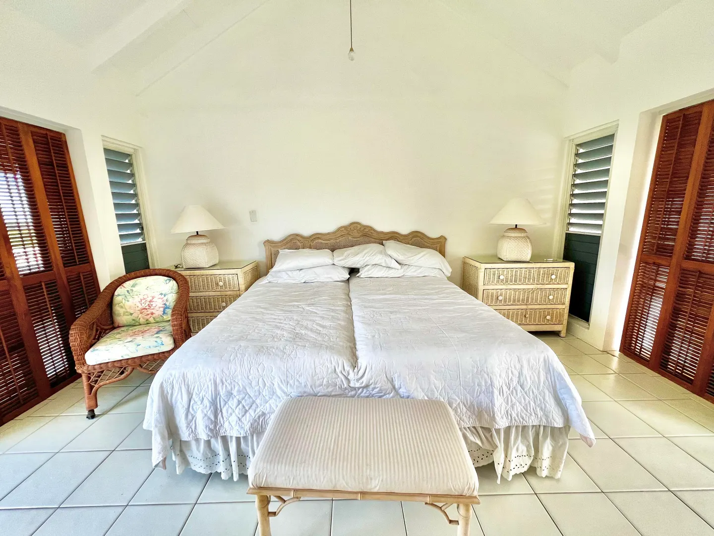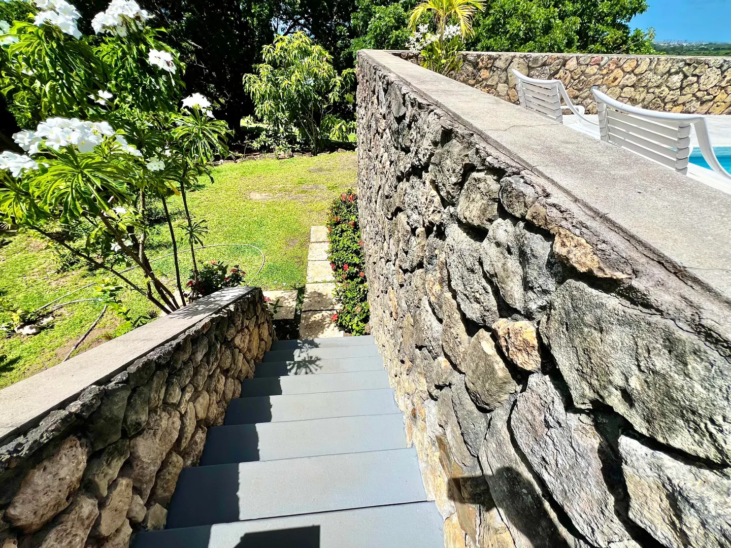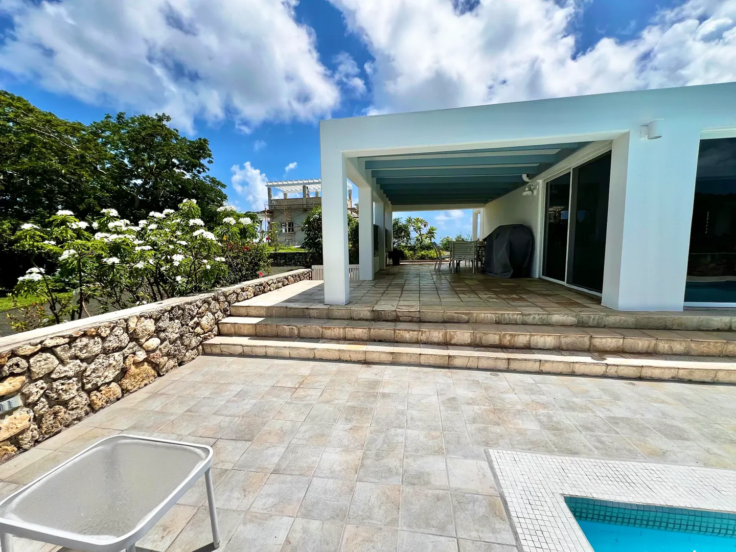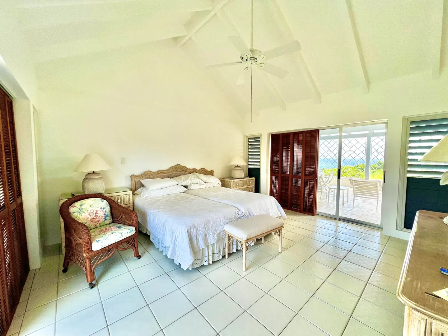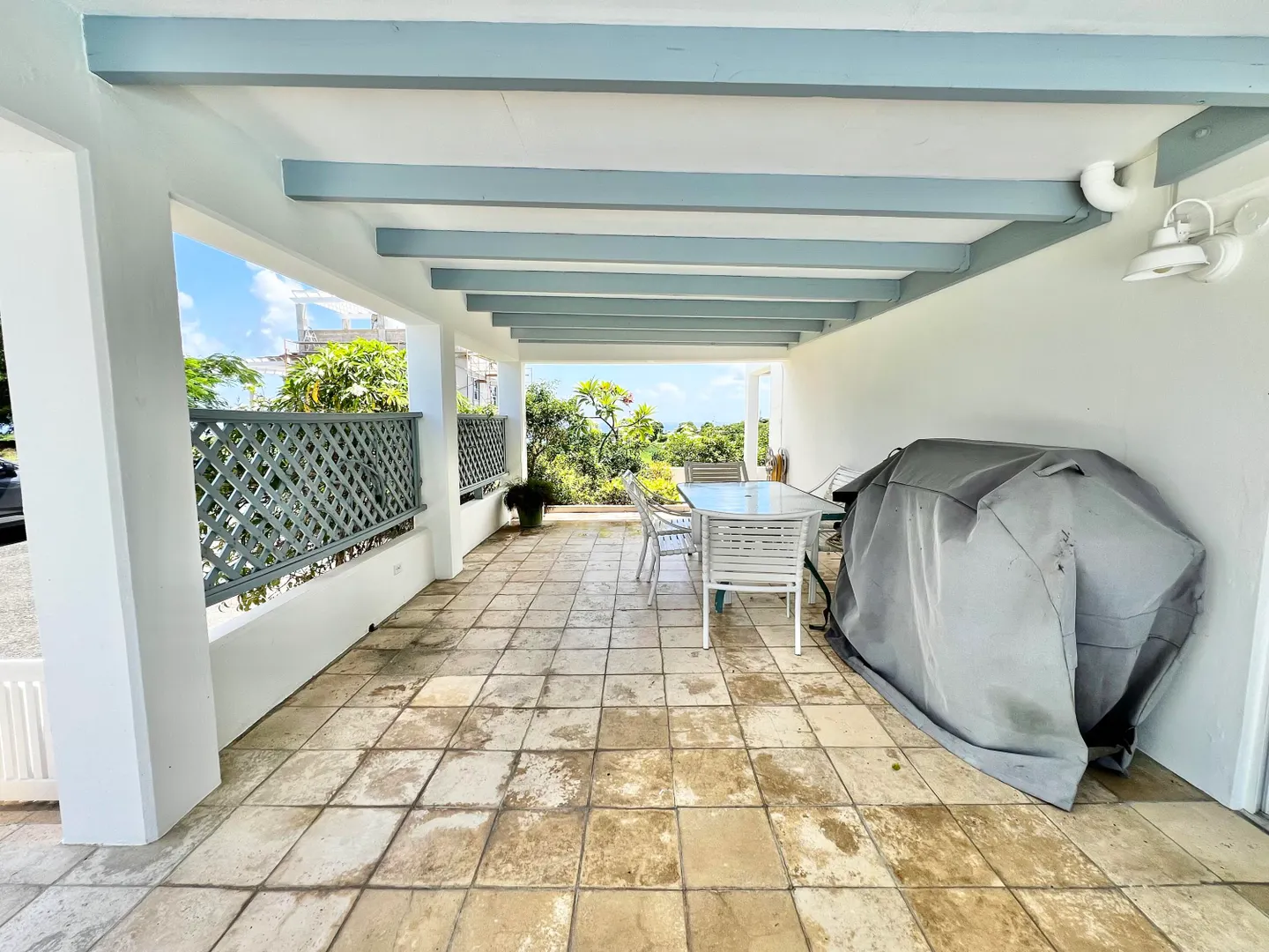 Experience island living at its finest in this three-bedroom villa with a spacious apartment featuring a large swimming pool and a sunlit deck. Nestled amid tranquil outdoor alcoves and shaded seating areas throughout, the property, set back from the Hermon Hill neighborhood road, offers privacy and serenity. The villa, set on a large yard, is surrounded by majestic old trees and lush landscaping adding to its tranquil vibe. The home has a large great room that is flanked by sea views and galleries to the north and the swimming pool to the south, with potential sea views in that direction. Two primary bedrooms, each with a private entrance via a covered exterior walkway, open to a sea-facing gallery and a shaded outdoor living area. The third bedroom, which can also serve as an officeis located off the large living room, making it versatile for guests or hybrid use.