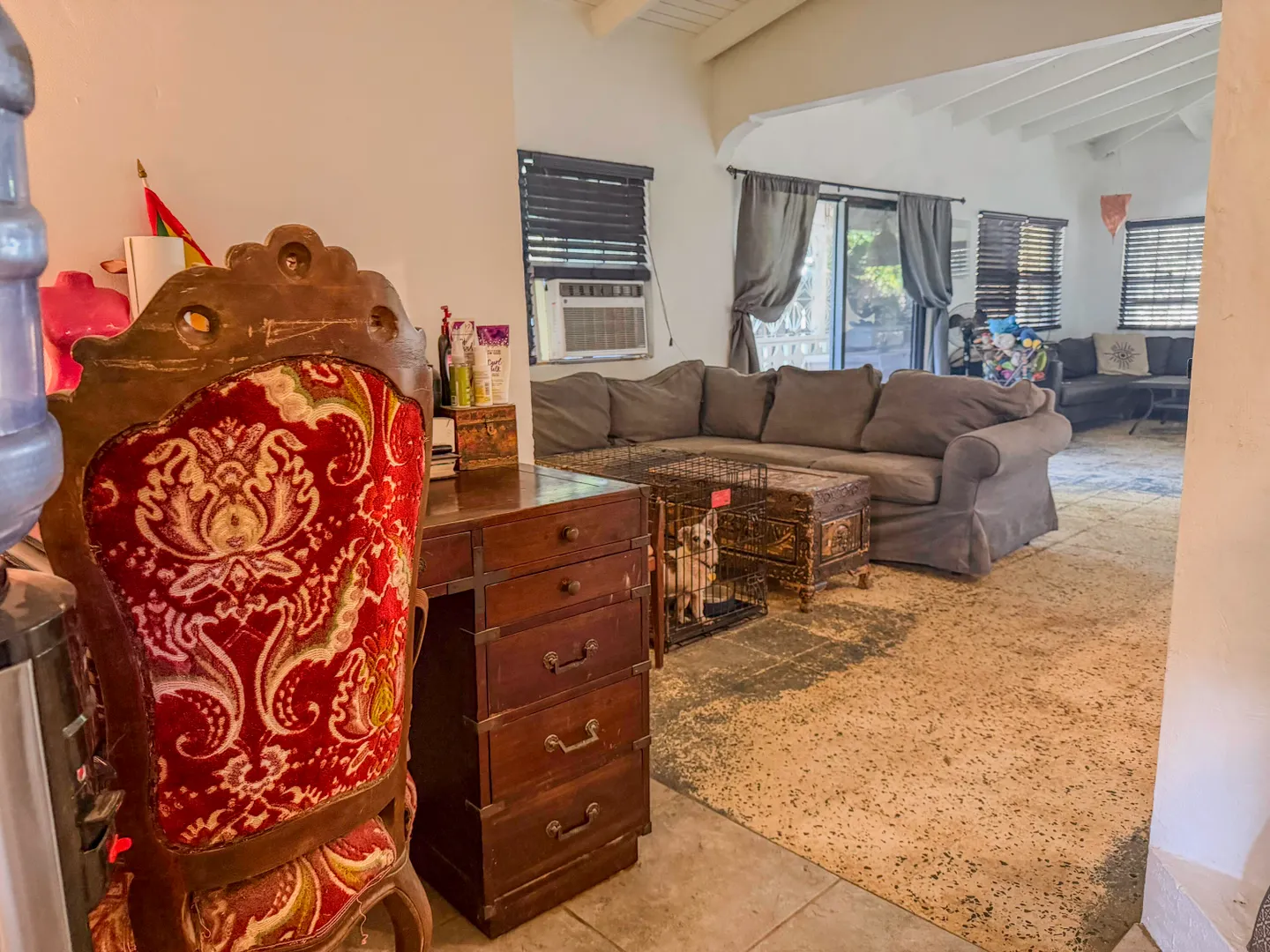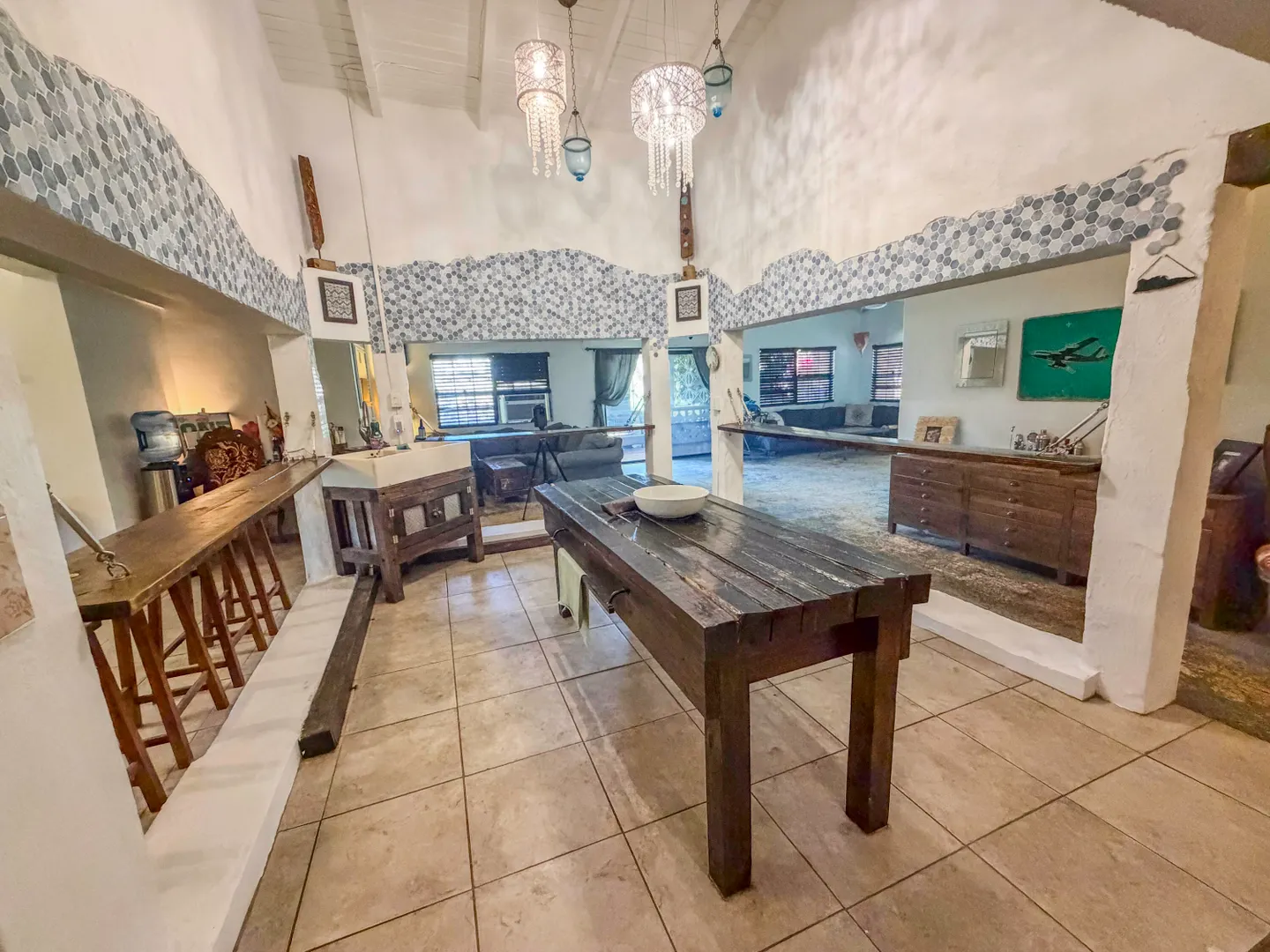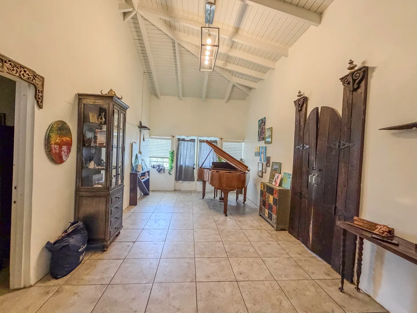 Step into a beautifully renovated possible income producing St. Croix gem!! A six-bedroom, six-and-a-half-bath home set on a 0.24-acre corner lot in a quiet, friendly neighborhood. Just seven minutes from Christiansted, this residence boasts two covered porches (one enclosed), a pastoral view, and lush tropical landscaping. With a private backyard surrounded by a seven-foot concrete wall, multiple courtyards, and a platform for yoga or a hot tub, this home offers serene island living. Continuing this inviting picture, the property is thoughtfully designed with convenience and potential in mind. It includes two cisterns for reliable water storage, an outdoor bamboo shower for a true Caribbean experience, and a generator transfer switch to easily add a generator to the property. an outdoor bamboo shower for a true Caribbean experience, a generator transfer switch to easily add a generator to the property. private outdoor spaces are a tropical oasis, complete with mature fruit treesmango, coconut, plum, sugar apple, pineapple, passionfruit, carambola, soursop, banana, and noniproviding both shade and a taste of the island.