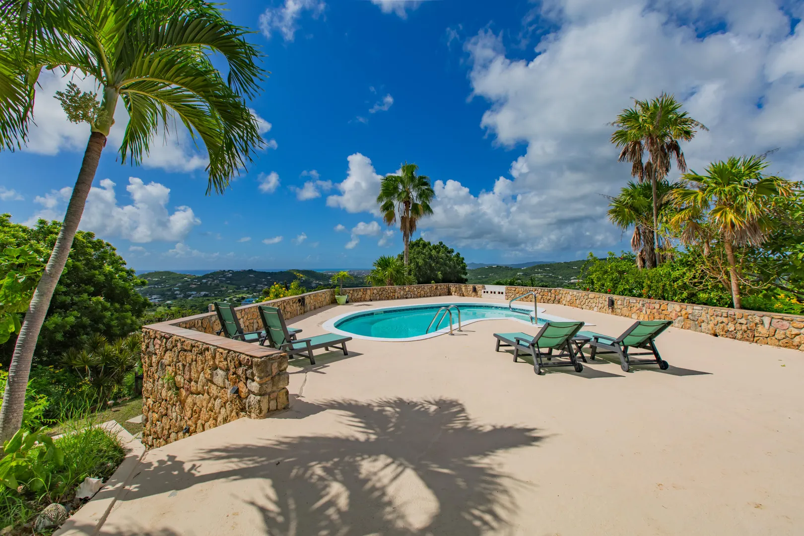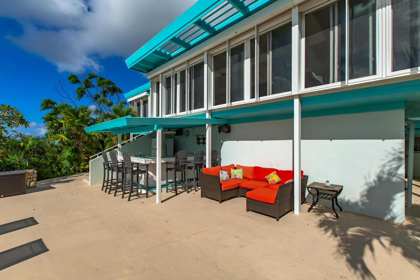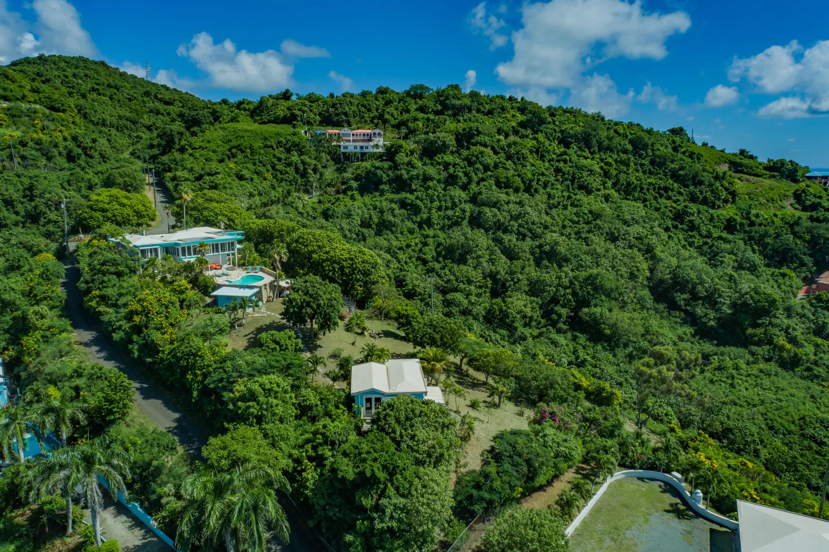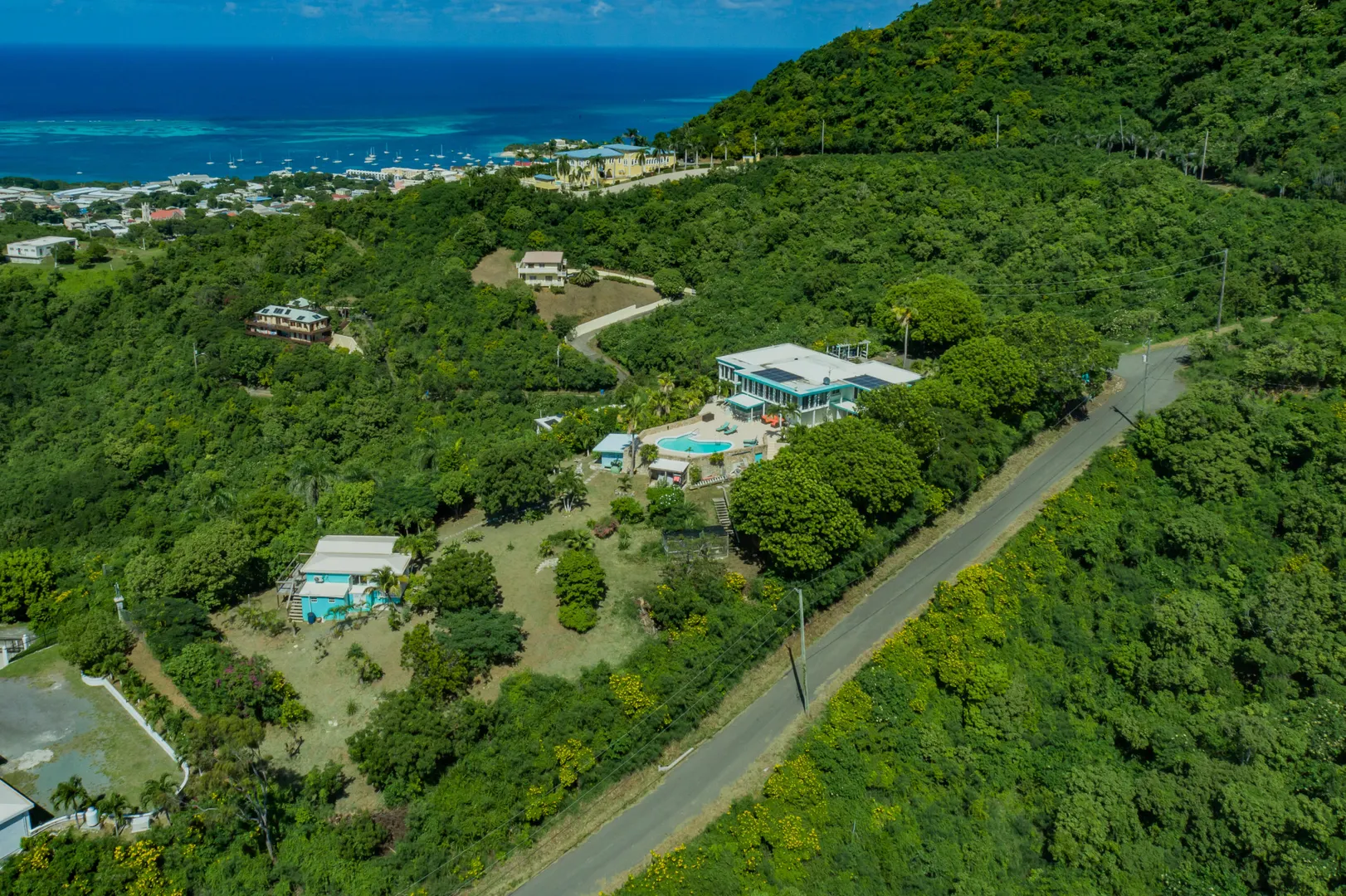 Escape to St. Croix and live in this magnificent 5200 square foot hilltop estate with 5-bedrooms & 6.5-baths. With dual shore views, a 2BR main house, 2 apartments, a caretaker's cottage, pool & solar panels w/ 2 Tesla batteries, it's a move-in-ready oasis! The main house features 2 primary bedrooms w/ sea views, open concept living spaces with abundant natural light, impact glass and automatic roll down shutters, expansive sundeck & poolside wet bar w/ 2 self-contained apartments located poolside, ideal for guests or rental income w/ separate parking & entrance! Also featured: aviary & greenhouse, 2 cisterns, 500 gallon propane tank, workshop, storage/tool room, outdoor shower and salt chlorinator for pool. Caretaker's cottage even has a private deck & laundry.