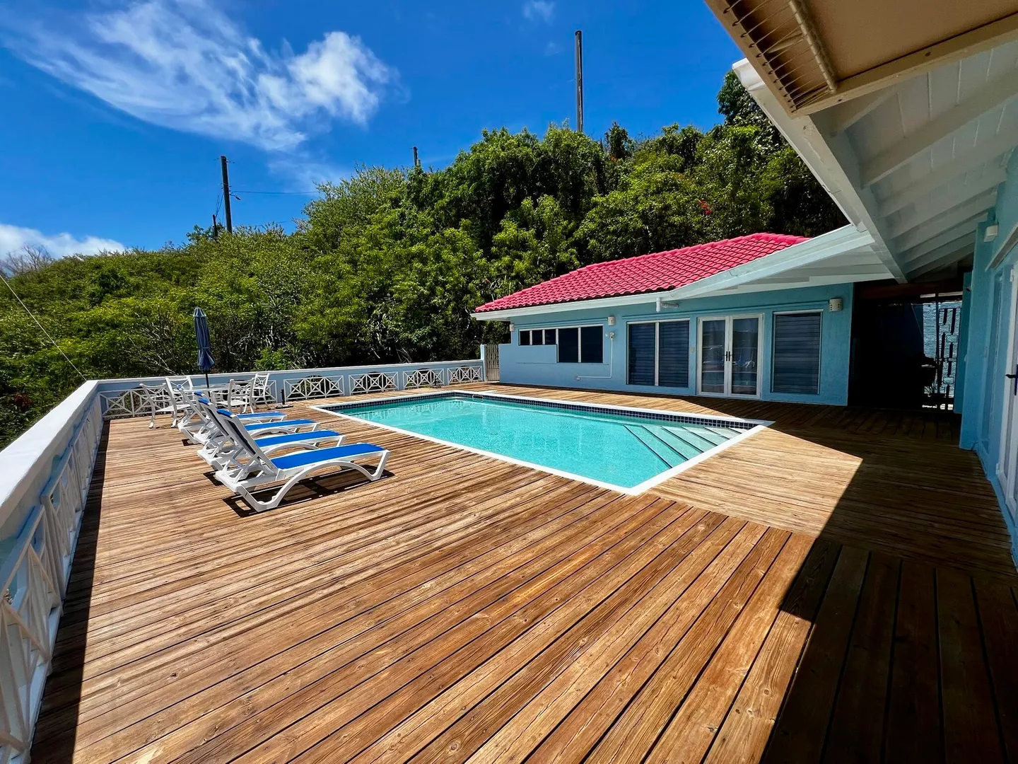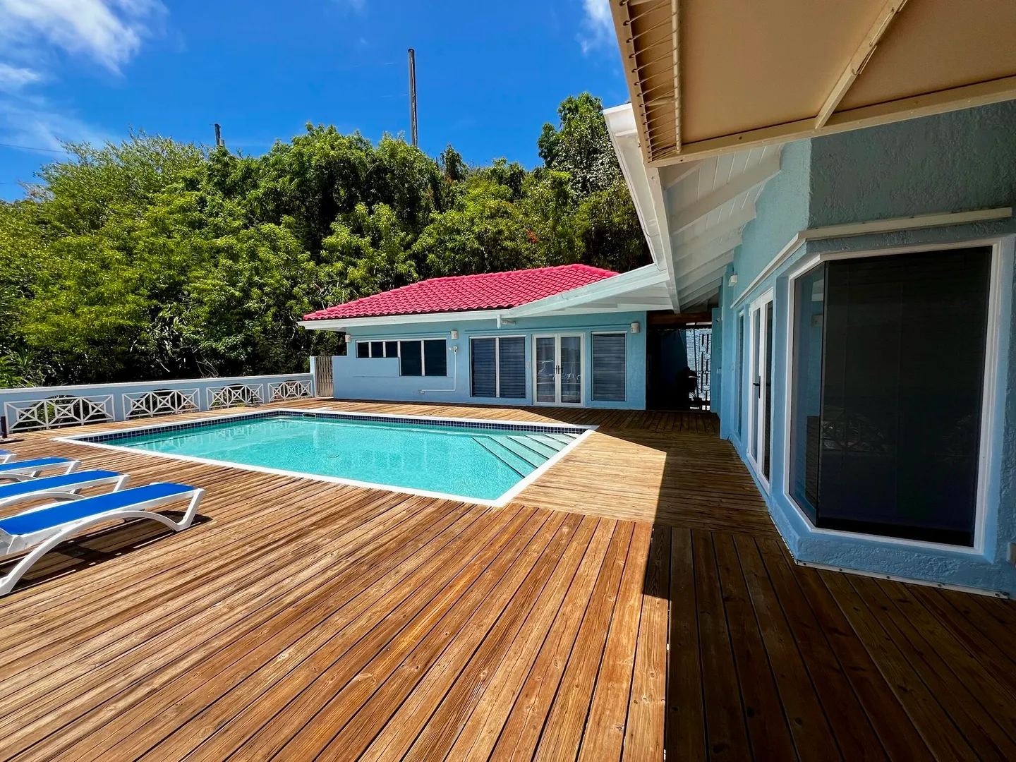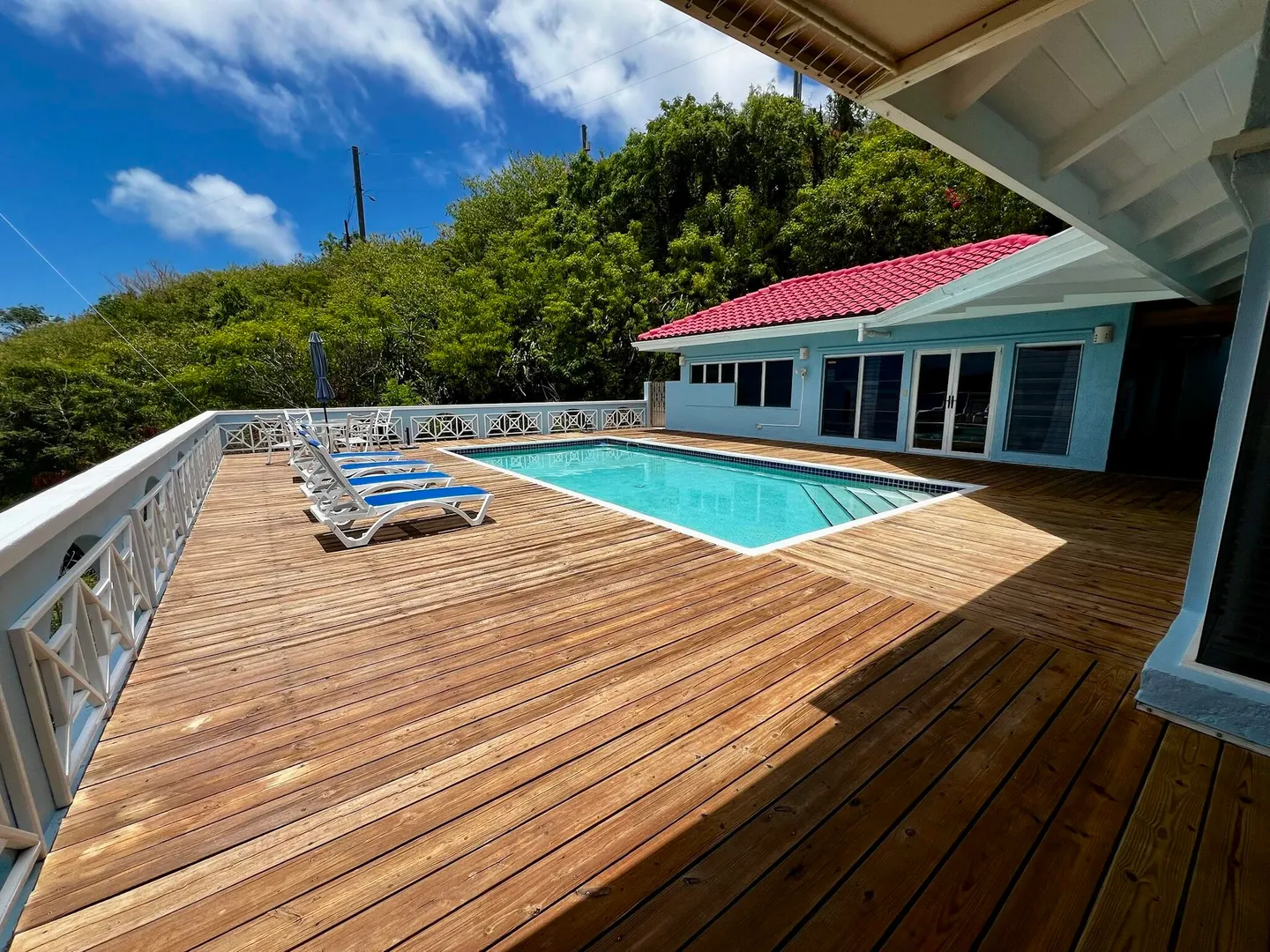 Mandevilla, where luxury living blends seamlessly with breathtaking sea views and surrounding natural beauty. This pod-style island retreat offers the perfect balance of indoor-outdoor living, with 3 en-suite bedrooms in the main house, a fully equipped lower-level apartment, totaling 4 bedrooms and 4.5 baths--designed for privacy and comfort.The heart of this home is its light-filled kitchen, completely remodeled in 2023. A new skylight floods the space with natural light, beautifully highlighting the quartz countertops, sleek new appliances, and a stylish kitchen hood. The living area features new shades and a mini-split AC system, ensuring a comfortable and inviting atmosphere. Step outside to your private outdoor haven, complete with a salt-chlorinated,heated pool surrounded by multiple seating areas for sun or shade. A recently added concrete path leads you to the front door, enhancing both convenience and curb appeal.