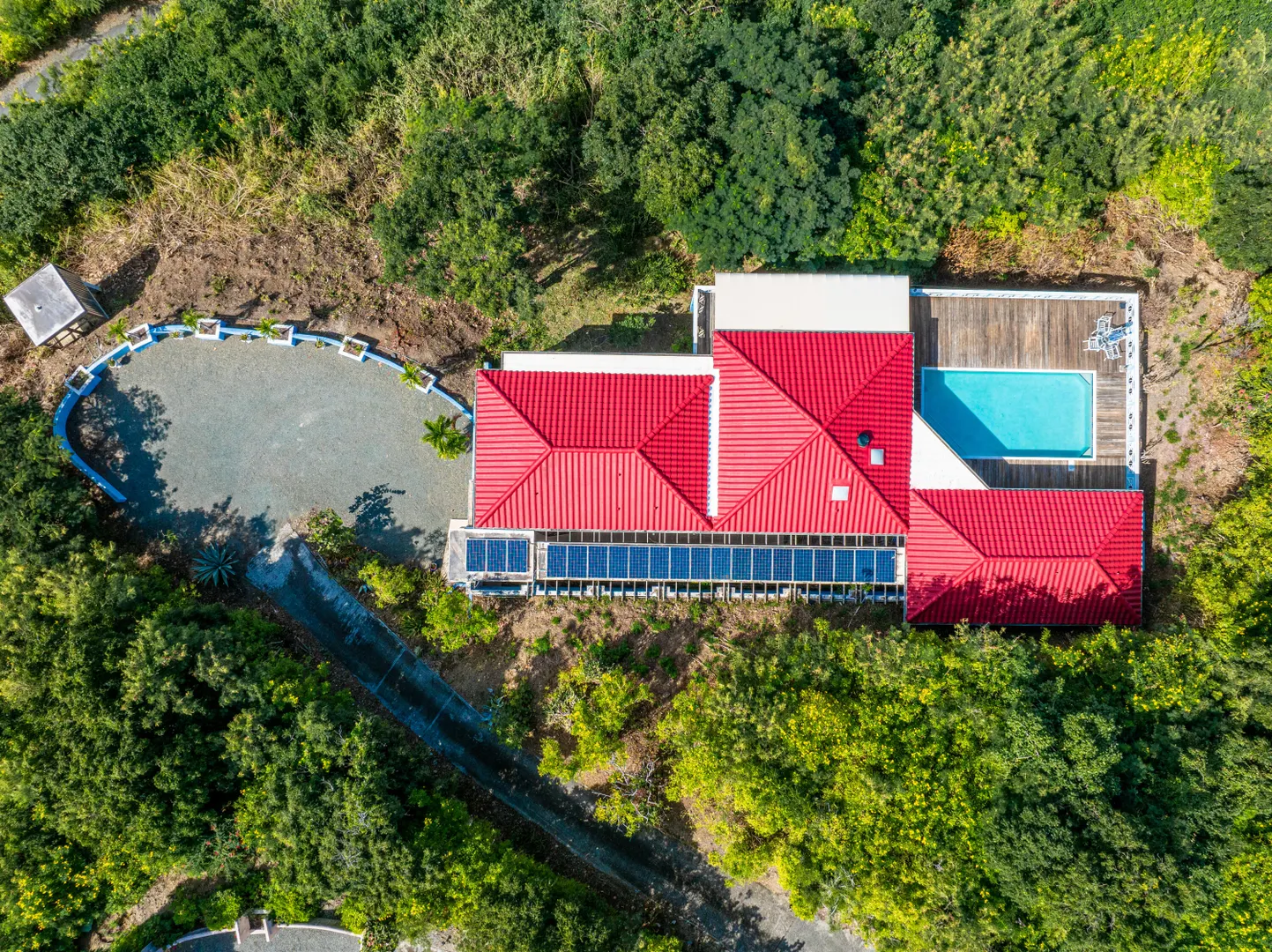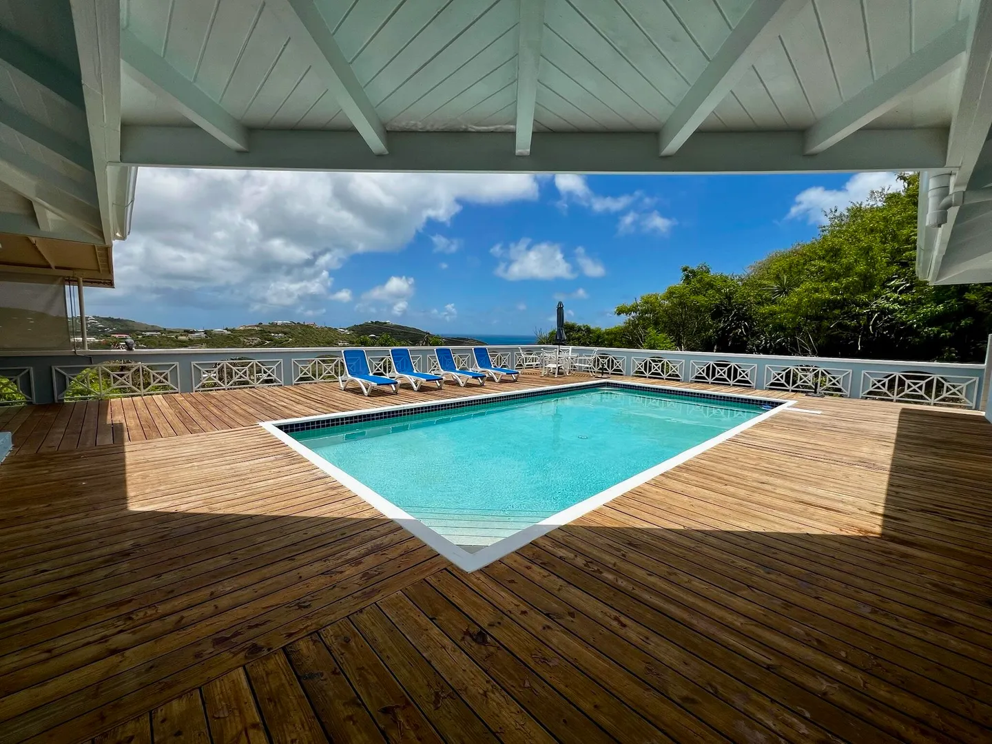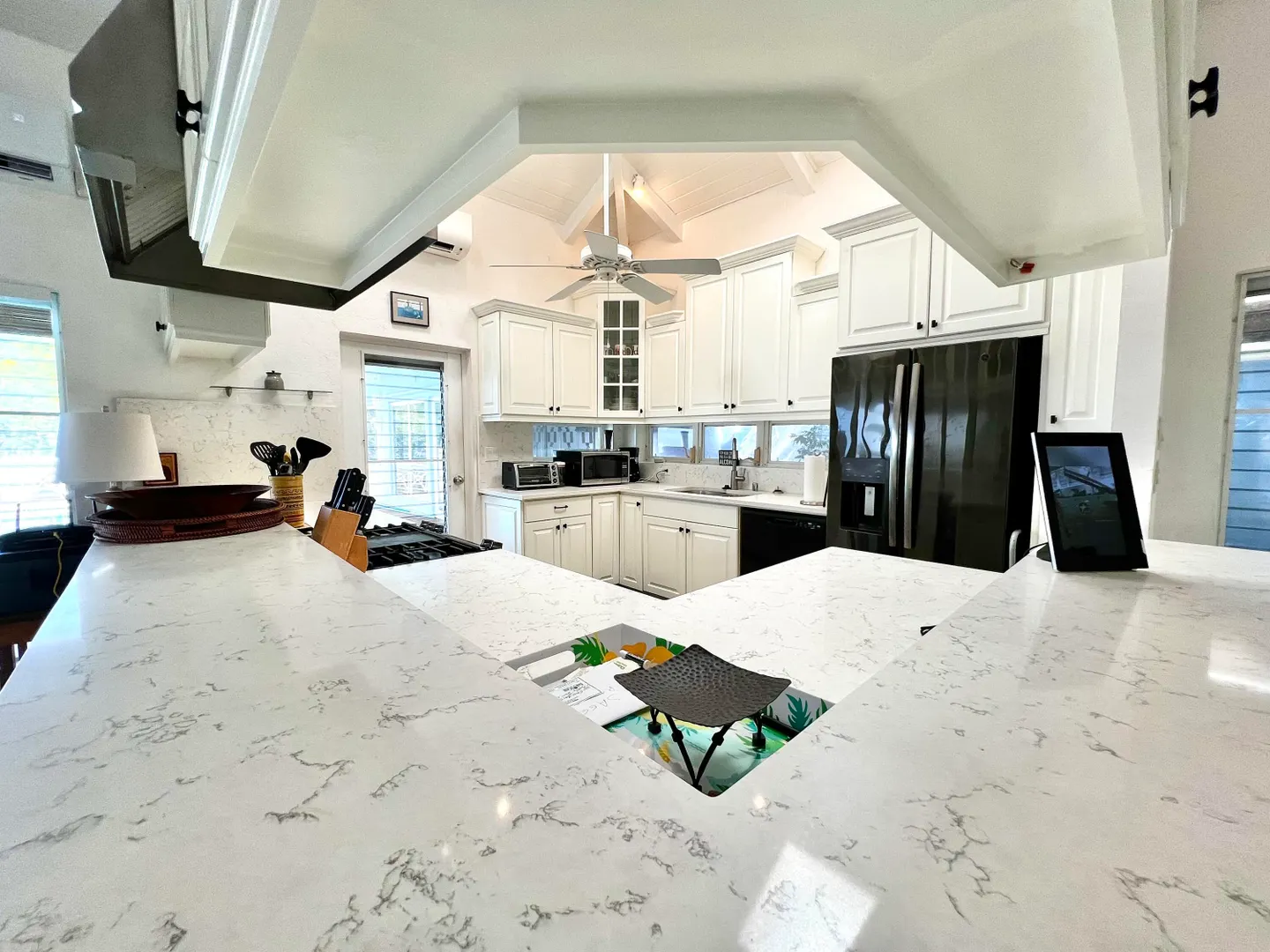 Mandevilla, where luxury living blends seamlessly with breathtaking sea views and surrounding natural beauty. This pod-style island retreat offers the perfect balance of indoor-outdoor living, with 3 en-suite bedrooms in the main house, a fully equipped lower-level apartment, totaling 4 bedrooms and 4.5 baths--designed for privacy and comfort.The heart of this home is its light-filled kitchen, completely remodeled in 2023. A new skylight floods the space with natural light, beautifully highlighting the quartz countertops, sleek new appliances, and a stylish kitchen hood. The living area features new shades and a mini-split AC system, ensuring a comfortable and inviting atmosphere. Step outside to your private outdoor haven, complete with a salt-chlorinated,heated pool surrounded by multiple seating areas for sun or shade. A recently added concrete path leads you to the front door, enhancing both convenience and curb appeal.