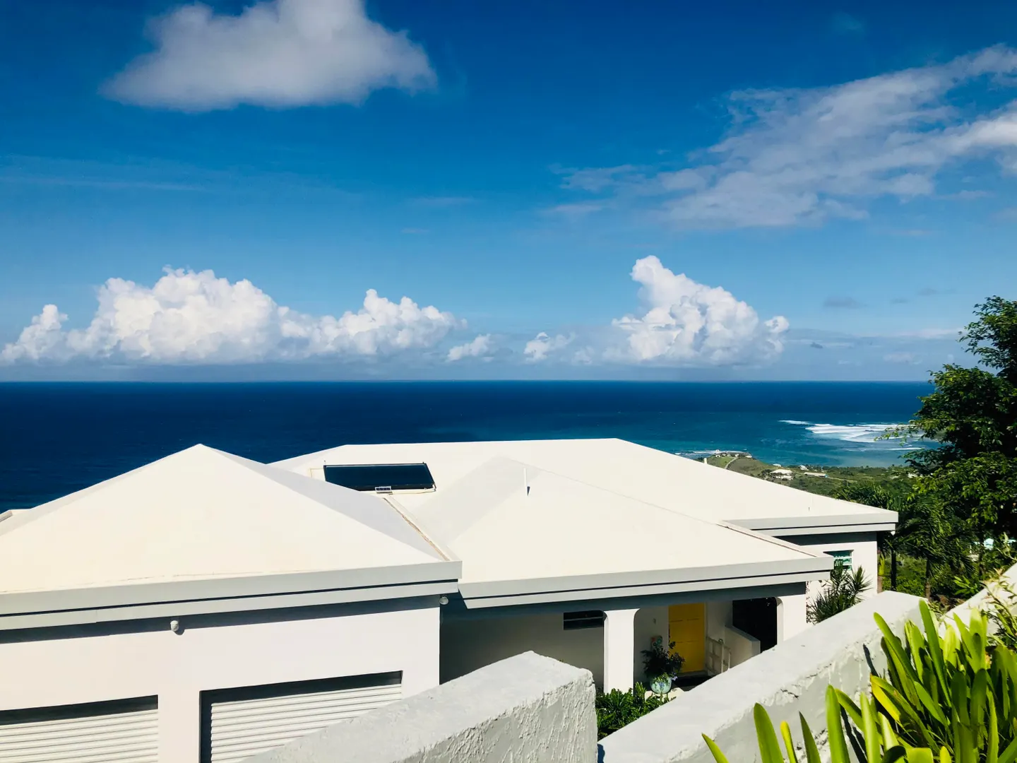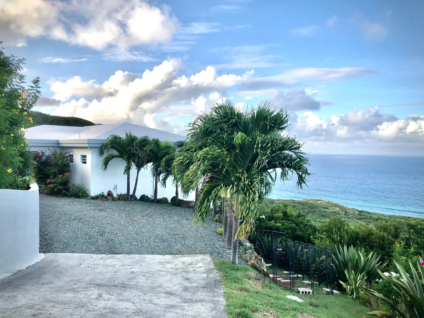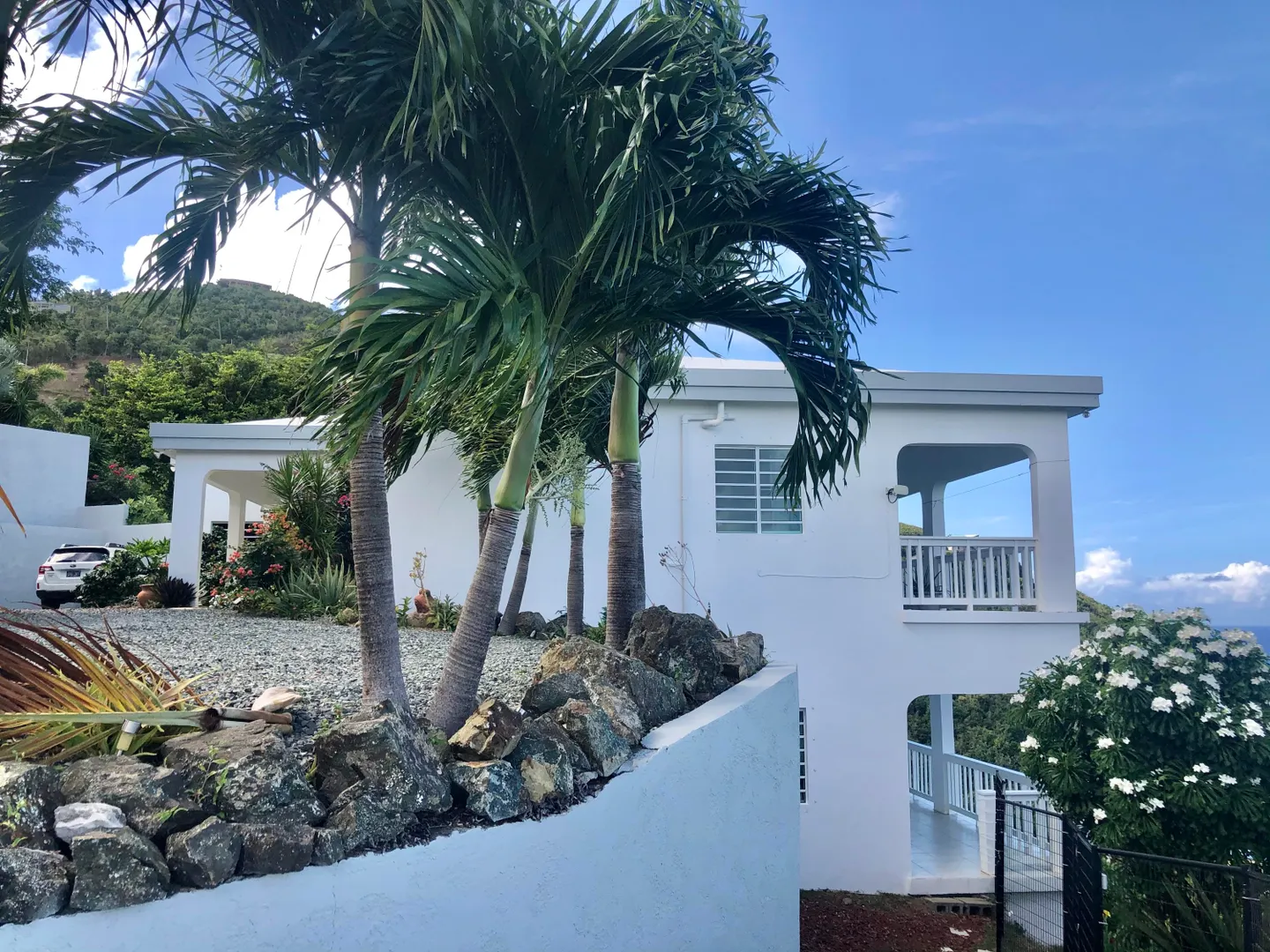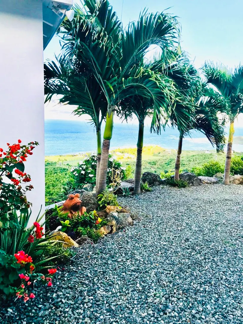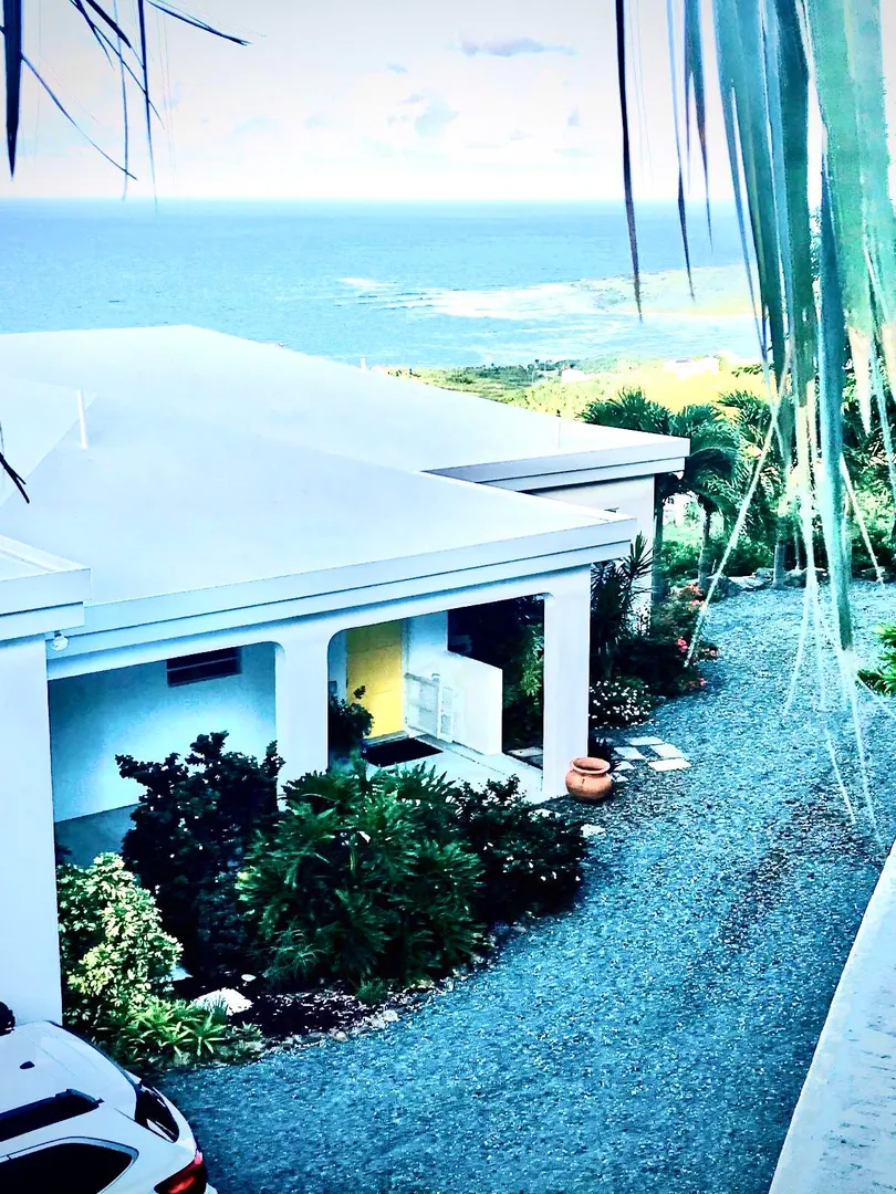 SPECTACULAR SEA VIEWS from every room of this pristine hillside home! Upper and lower covered galleries allow for easy indoor/outdoor living. Open, updated kitchen flows to dining and living areas --great for entertaining. Four generously sized bedrooms with three en suite baths are perfect for a family or vacation rental. Large multipurpose area can be used for entertaining, exercise, game room, or studio. Rare two car garage can double as storage area if preferred. Convenient dog run for pet owners is easily removed if not desired. This property is beautifully maintained and landscaped. Lots of updates to the exterior and interior (see supplement). Neutral and move in ready. Private and peaceful. Conveniently located with newly paved roads. A hidden gem on St. Croix!Updates and repairs include a new solar water heater with 80 gallon tank, new water pump, freshly painted exterior and interior (including retaining walls), new steel hurricane roof clips, two cisterns repaired and resealed this year, AC installed in all bedrooms, new refrigerator, dishwasher, kitchen backsplash and corian countertops. Roof just power washed and septic pumped.
