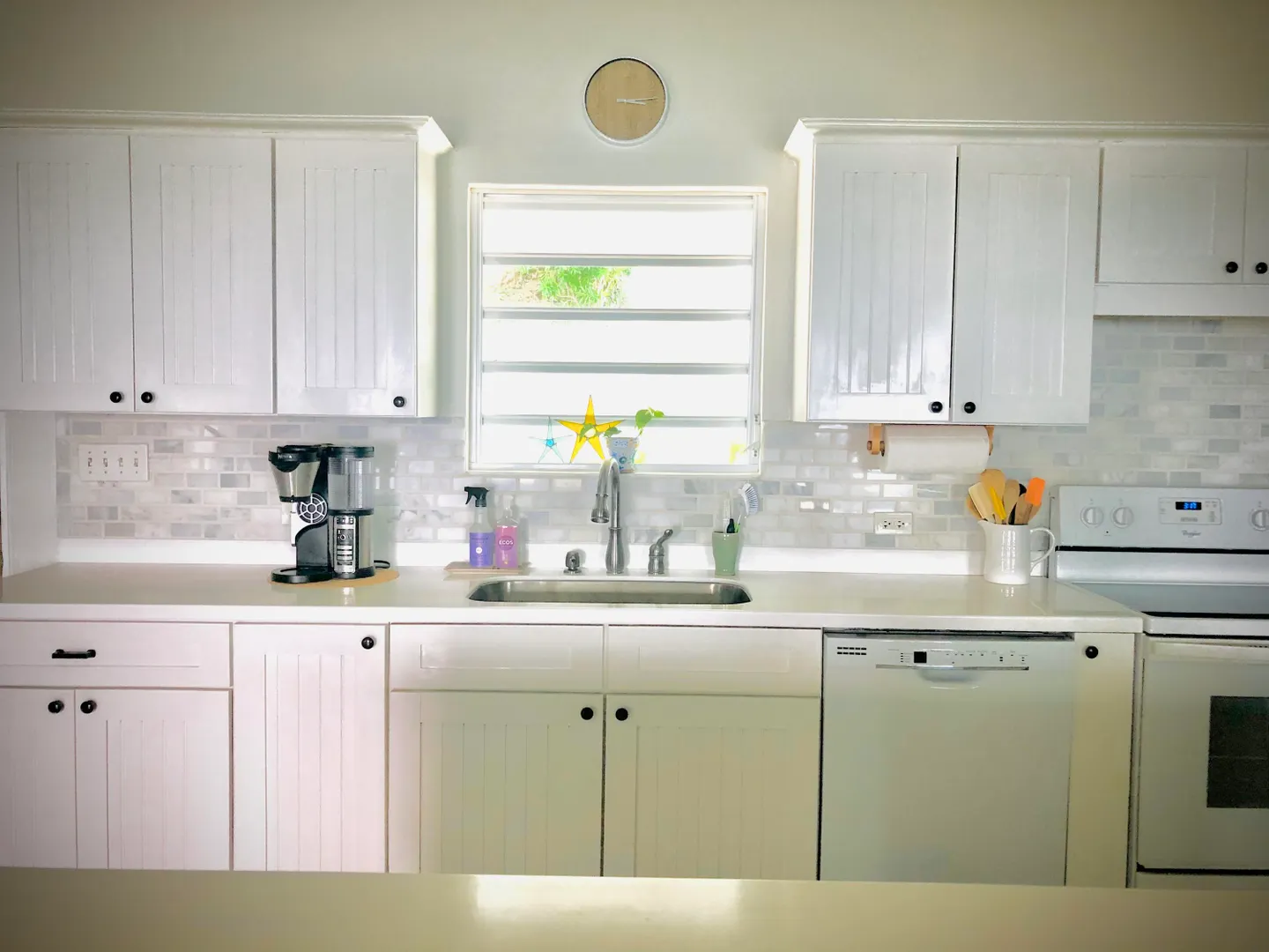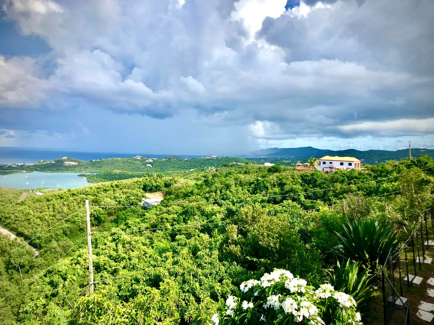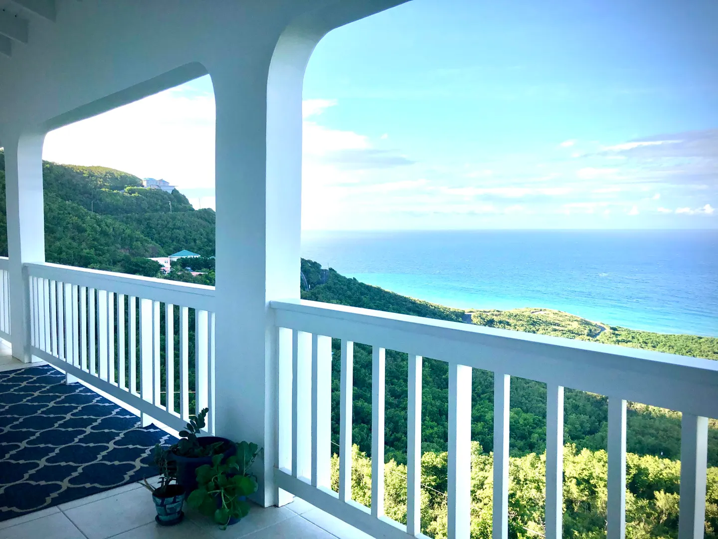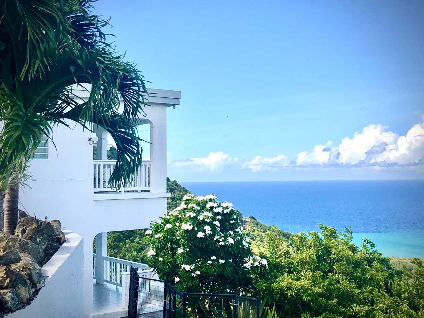 SPECTACULAR SEA VIEWS from every room of this pristine hillside home! Upper and lower covered galleries allow for easy indoor/outdoor living. Open, updated kitchen flows to dining and living areas --great for entertaining. Four generously sized bedrooms with three en suite baths are perfect for a family or vacation rental. Large multipurpose area can be used for entertaining, exercise, game room, or studio. Rare two car garage can double as storage area if preferred. Convenient dog run for pet owners is easily removed if not desired. This property is beautifully maintained and landscaped. Lots of updates to the exterior and interior (see supplement). Neutral and move in ready. Private and peaceful. Conveniently located with newly paved roads. A hidden gem on St. Croix!Updates and repairs include a new solar water heater with 80 gallon tank, new water pump, freshly painted exterior and interior (including retaining walls), new steel hurricane roof clips, two cisterns repaired and resealed this year, AC installed in all bedrooms, new refrigerator, dishwasher, kitchen backsplash and corian countertops. Roof just power washed and septic pumped.
