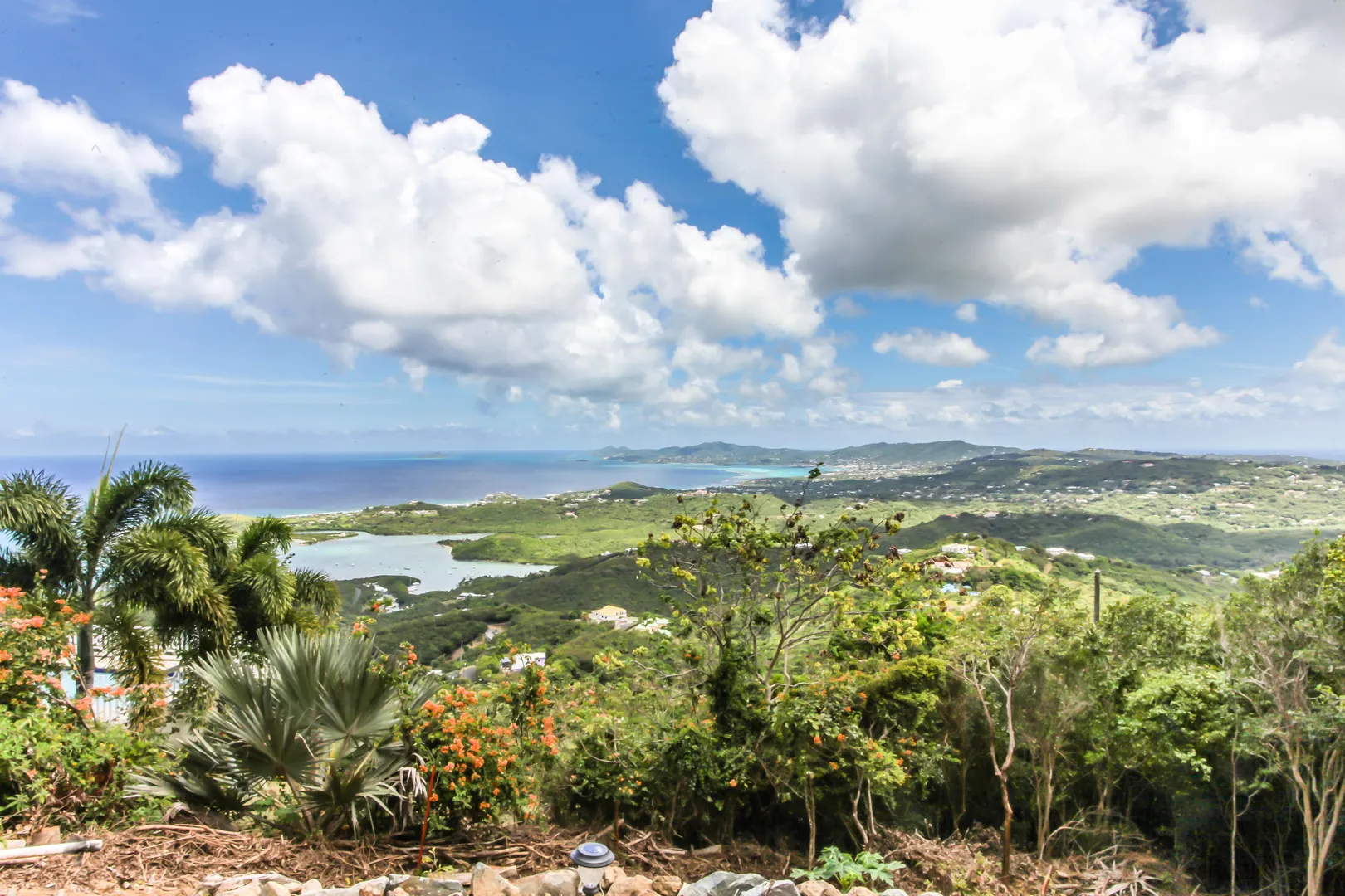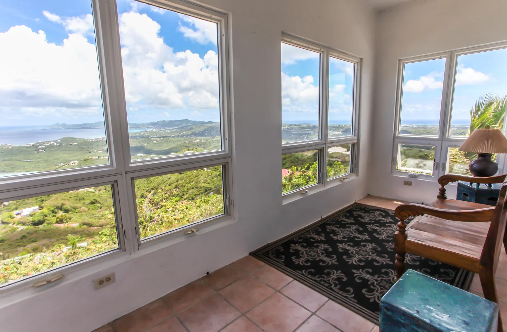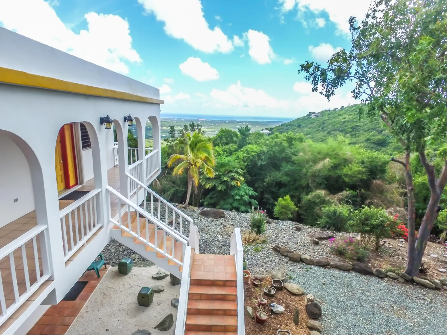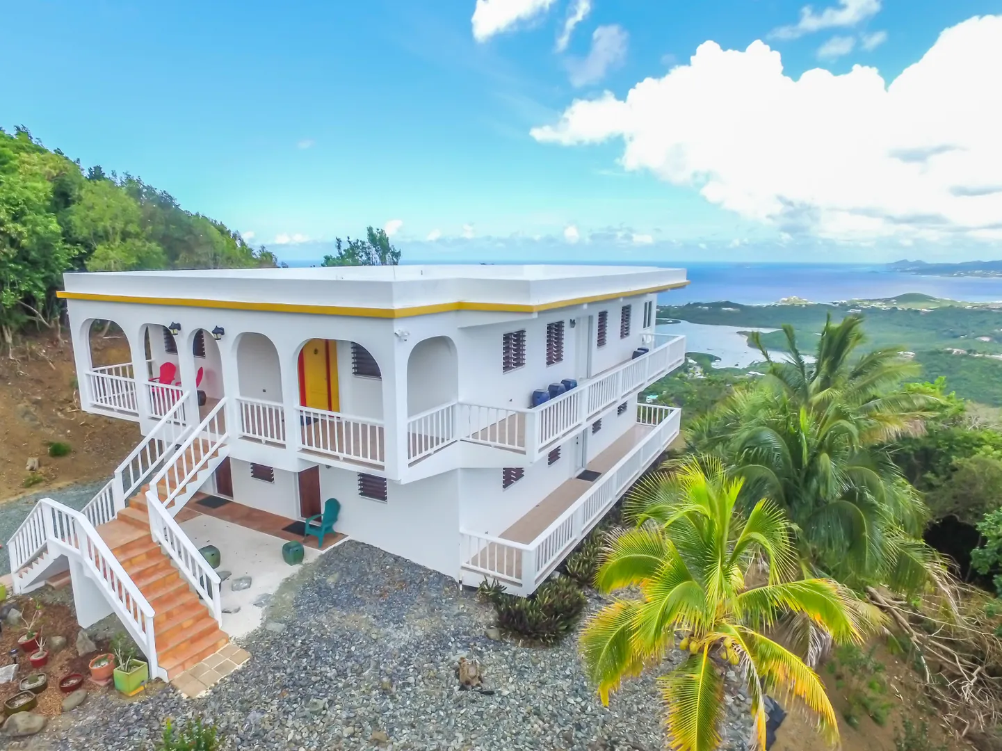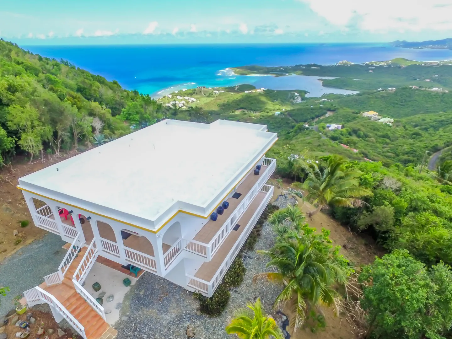 At 800 ft elevation this single family home with a lower unit provides commanding 270 degree views of Salt River, Buck Island, Green Cay, Christiansted harbor, down island, south shore and stretching across to Hamm's Bluff and Davis Bay. An Incredible view! The upper 2 bedroom 2 bath unit hosts a quiet and peaceful environment to enjoy Caribbean living. A sun room to capture the morning sunrises and various galleries to sit quietly and look over the vast landscape of St. Croix making this an exceptional home to call yours. The lower 2 bedroom and 1 bath unit has an extra room currently used as a home gym, a laundry room and private entrances.Built in 1995 this solid concrete structure has 8'' reinforced concrete roof and floors.