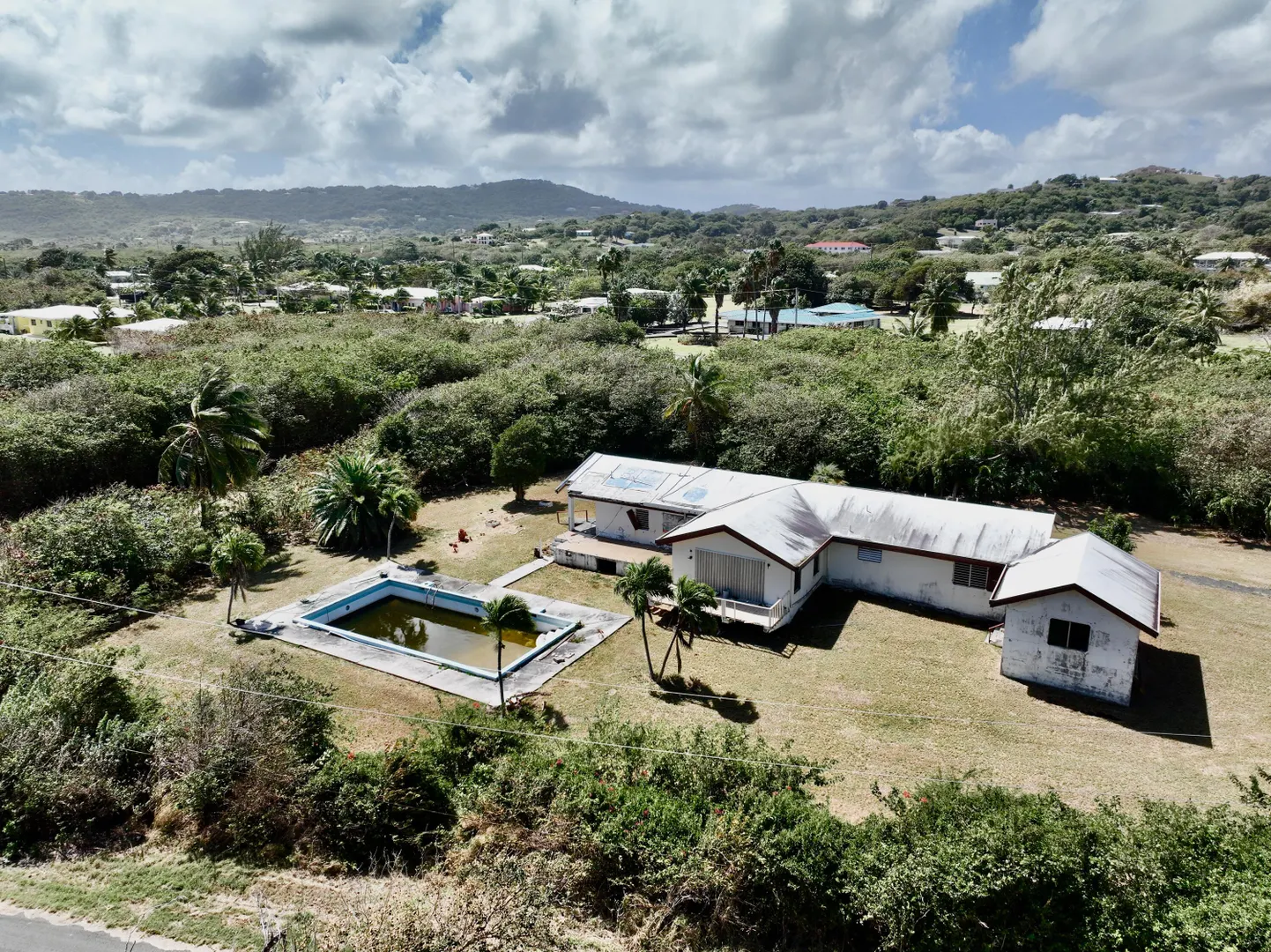 Calling all contractors! Huge 4 bedroom/3 bath home on an acre in Judith's Fancy- St Croix's premier gated beachfront neighborhood. The immense footprint includes a pool surrounded by a large flat yard- perfect for frolicking. Interior feature walls w/ wonderful stonework add character & charm. Bedrooms are nicely spaced out, creating private enclaves throughout the house. Vaulted ceilings w/thick support beams provide structural support & beauty. Do the work and own an amazing property. The fresh breeze and the sound of the sea are included! This property was once home to Audre Lorde, the renowned poet. SOLD AS IS.