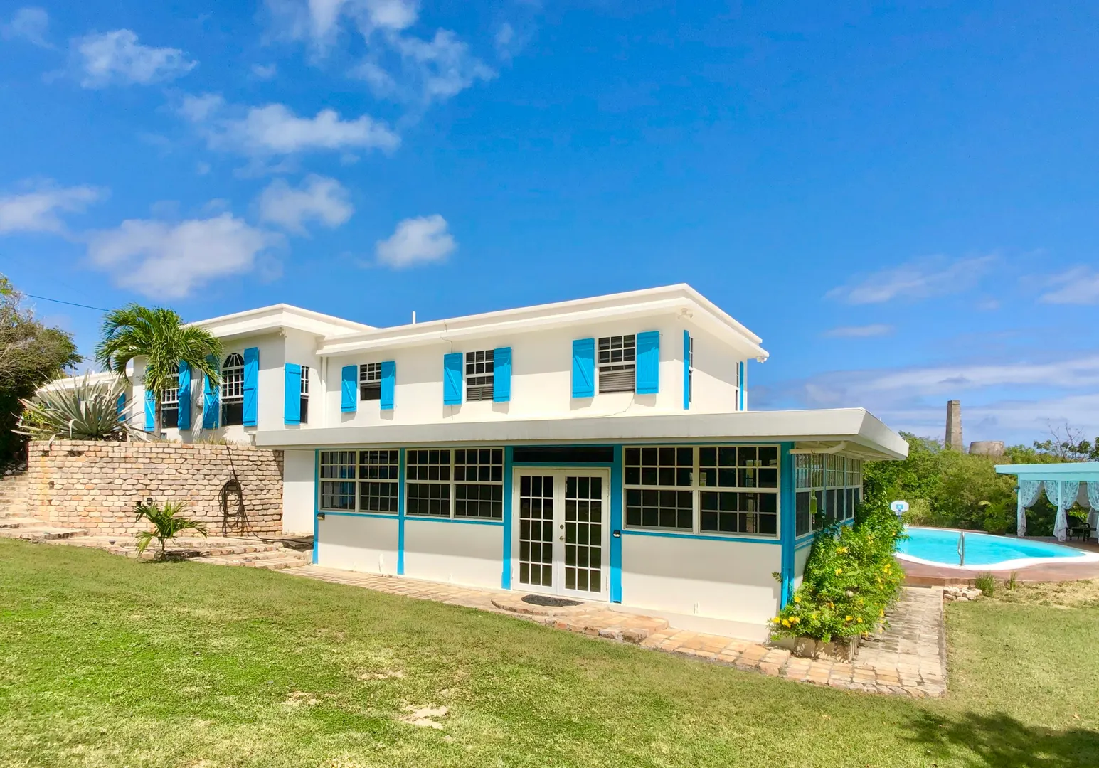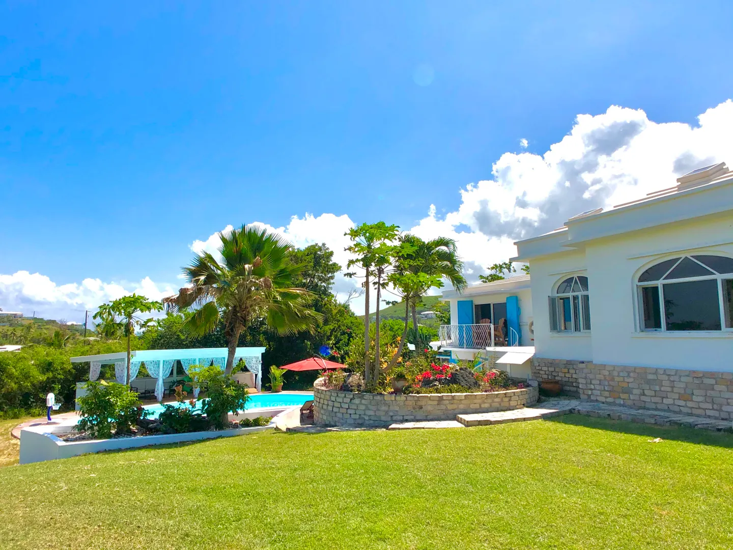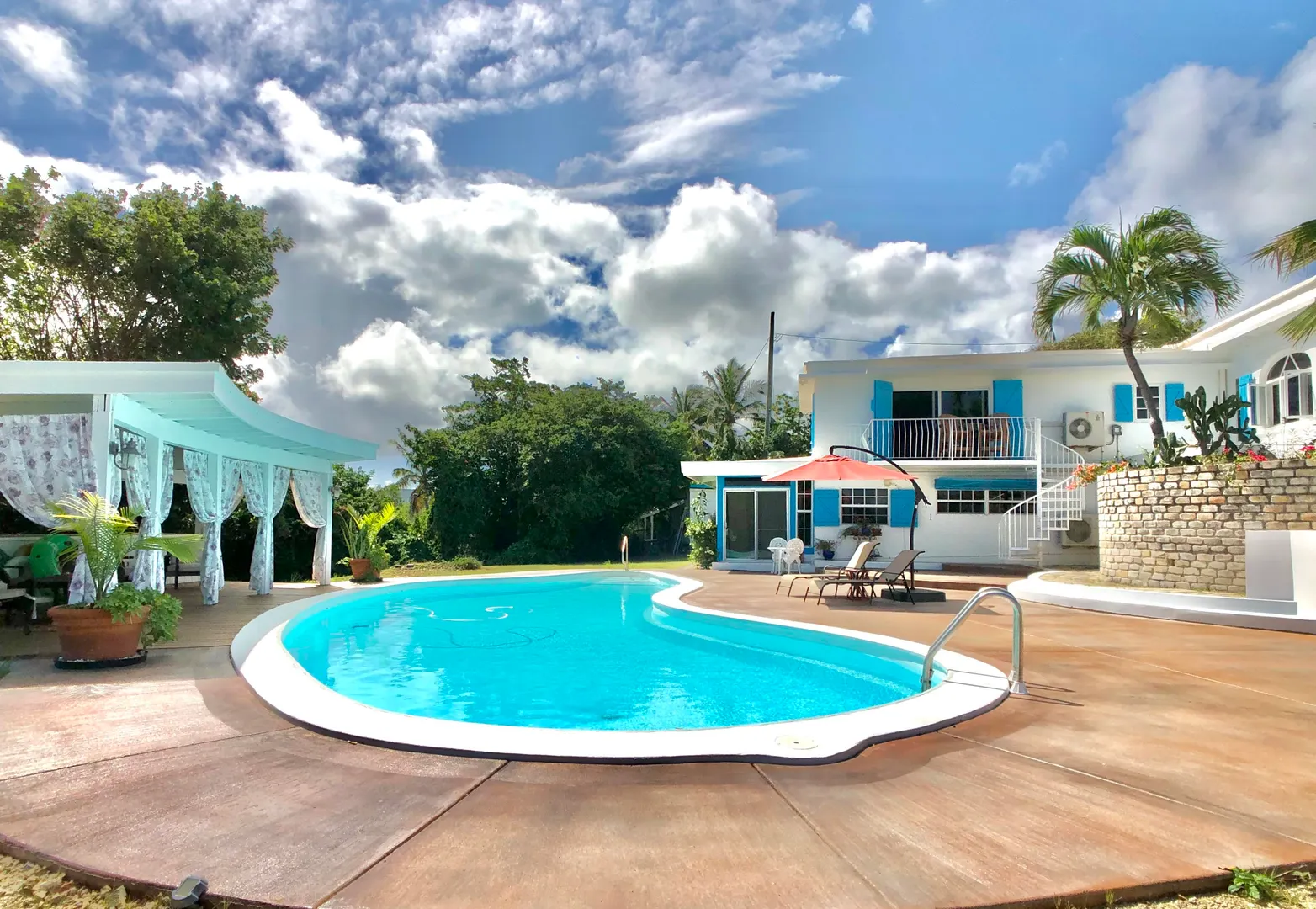 This beautiful and solidly built home is located in one of the islands most prestigious and gated neighborhoods (Judith's Fancy). The welcoming and newly renovated pool area will make you feel like you are at your very own private resort featuring a large salt water pool and a charming gazebo. Off the pool is a one bedroom apartment that the Sellers have used as a successful vacation rental. Upstairs you'll find the main residence consisting of three large bedrooms, a dining room and an inviting living room with vaulted ceiling. The master bedroom suite has a private balcony overlooking the pool and the Caribbean Sea, the staircase from the balcony provides easy access to the pool. Many updates including an 8KW generator. The perfect island home with just five minutes walk to the beach!The house was built in 1964 and has withstood two major hurricanes. The Sellers have done extensive updates and improvements to the house over the past few years. Some of the larger updates are mentioned below and a complete list of improvements can be found under documents. Pool: Resurfaced the 20,000 gallon salt water pool, replaced entire filtration system, electrical, timer, PVC pipes $22,000. Replaced salt water chlorinator with Pentair Intellichlor System $750. Installed Polaris 360 automatic pool cleaner $750. LED Pool Lights/GFCI $600 Removed and replaced wooden deck with concrete, stained & sealed and shed ramp $32,000 House: Rewired & replaced electrical panels $2,500 New tool shed $9,500 8K Generator $2,000 Generator transfer switch $1,500 A note from the Sellers: What we love about the house! Judith's Fancy is one of the most walk-able family-friendly neighborhoods on the island of St Croix. The beautiful historic ruins located next to the main house serves a perfect place to enjoy a morning cup of coffee, watching the sun rise over the Caribbean, or a glass of wine in the evening. The house looks over a huge field where the kids and animals have tons of space to run and explore. The trails at the end of the field lead to an old sugar mill where there are more beautiful views! Around the corner from the house is the beach entrance to one of the best surfing spots on island. When the apartment isn't occupied as a vacation rental, it's the perfect place to host family visits making them fun and easy! The newly renovated pool area was designed to be low maintenance and able to handle large parties and events with luxury and style.