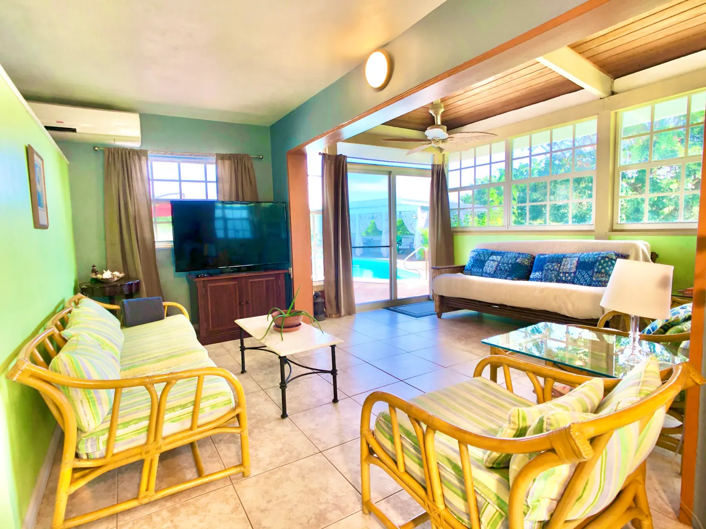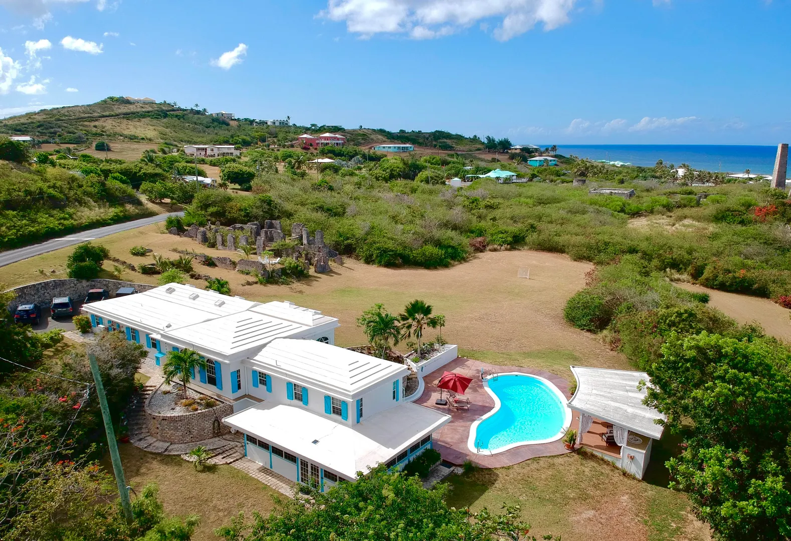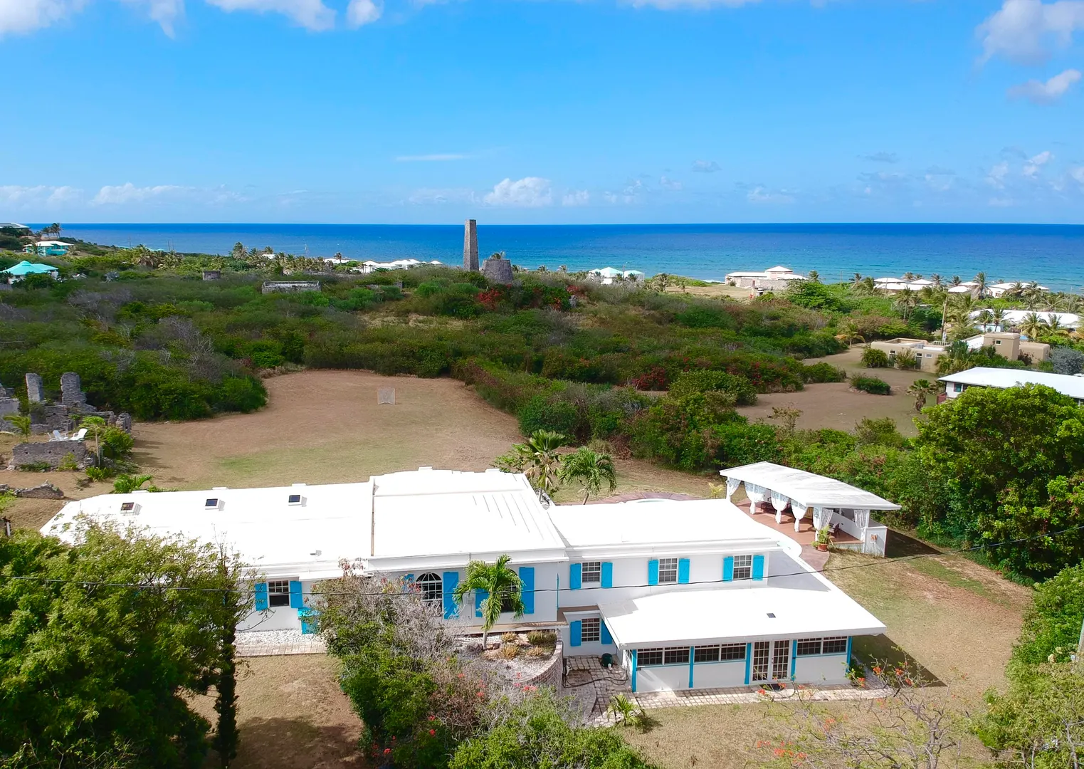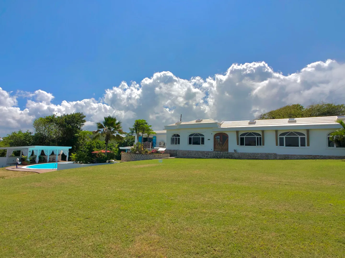 This beautiful and solidly built home is located in one of the islands most prestigious and gated neighborhoods (Judith's Fancy). The welcoming and newly renovated pool area will make you feel like you are at your very own private resort featuring a large salt water pool and a charming gazebo. Off the pool is a one bedroom apartment that the Sellers have used as a successful vacation rental. Upstairs you'll find the main residence consisting of three large bedrooms, a dining room and an inviting living room with vaulted ceiling. The master bedroom suite has a private balcony overlooking the pool and the Caribbean Sea, the staircase from the balcony provides easy access to the pool. Many updates including an 8KW generator. The perfect island home with just five minutes walk to the beach!The house was built in 1964 and has withstood two major hurricanes. The Sellers have done extensive updates and improvements to the house over the past few years. Some of the larger updates are mentioned below and a complete list of improvements can be found under documents. Pool: Resurfaced the 20,000 gallon salt water pool, replaced entire filtration system, electrical, timer, PVC pipes $22,000. Replaced salt water chlorinator with Pentair Intellichlor System $750. Installed Polaris 360 automatic pool cleaner $750. LED Pool Lights/GFCI $600 Removed and replaced wooden deck with concrete, stained & sealed and shed ramp $32,000 House: Rewired & replaced electrical panels $2,500 New tool shed $9,500 8K Generator $2,000 Generator transfer switch $1,500 A note from the Sellers: What we love about the house! Judith's Fancy is one of the most walk-able family-friendly neighborhoods on the island of St Croix. The beautiful historic ruins located next to the main house serves a perfect place to enjoy a morning cup of coffee, watching the sun rise over the Caribbean, or a glass of wine in the evening. The house looks over a huge field where the kids and animals have tons of space to run and explore. The trails at the end of the field lead to an old sugar mill where there are more beautiful views! Around the corner from the house is the beach entrance to one of the best surfing spots on island. When the apartment isn't occupied as a vacation rental, it's the perfect place to host family visits making them fun and easy! The newly renovated pool area was designed to be low maintenance and able to handle large parties and events with luxury and style.