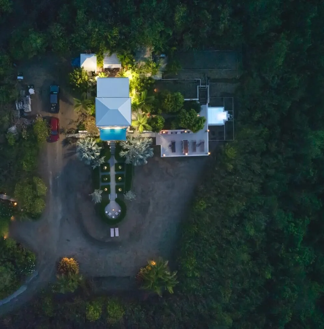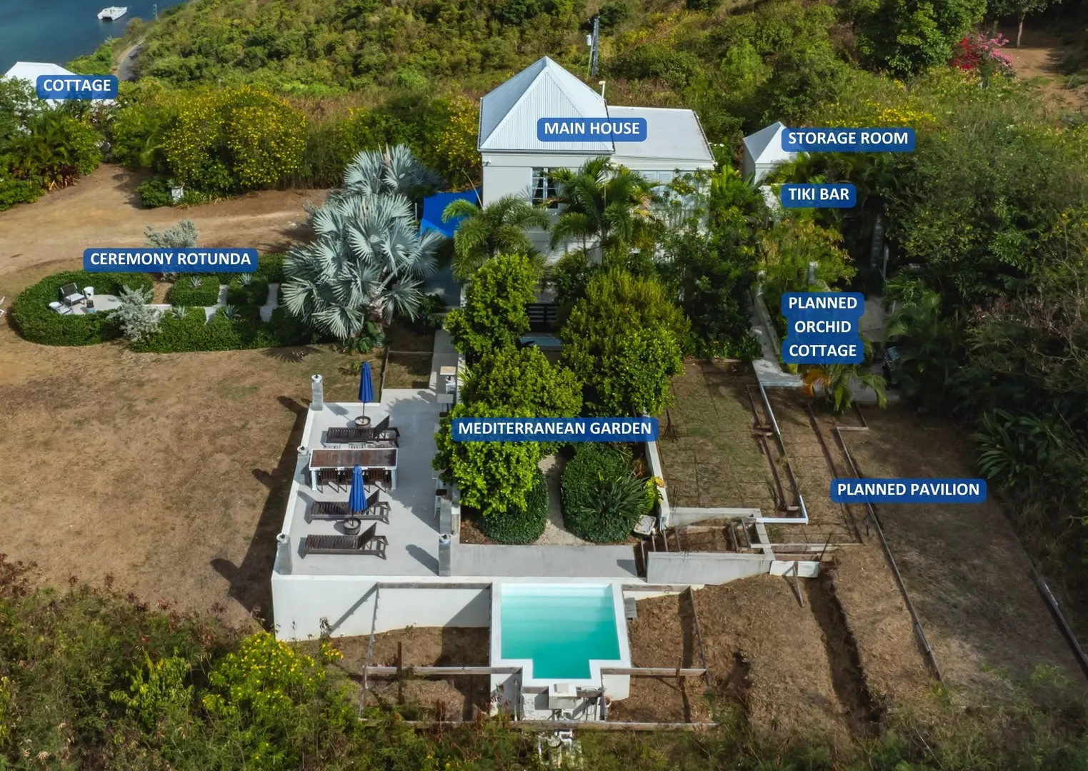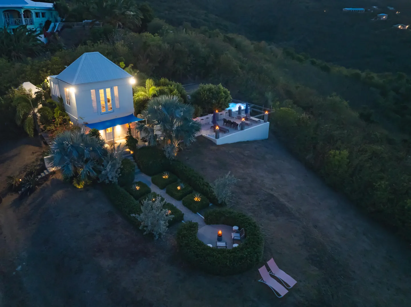 A Breathtaking TropiA stunning tropical estate with. The 2-bed, 1-bath main house surrounded by lush gardens, a plunge pool, tiki bar and expansive outdoor living areas. Designed by architects and upgraded by the owner/architect, the home features travertine floors, Caribbean decor, and seamless indoor-outdoor flow. The residence could be a successful vacation rental, offering upscale finishes, and serene privacy. Outdoor amenities include a firepit, Tiki bar, event space for 100 guests, and multiple lounge areas. Zoned R-1 with room to expand with the purchase of adjacent cottage and land parcels and partially constructed Orchid Cottage. Luxury, privacy, and income potential in one unforgettable property.
