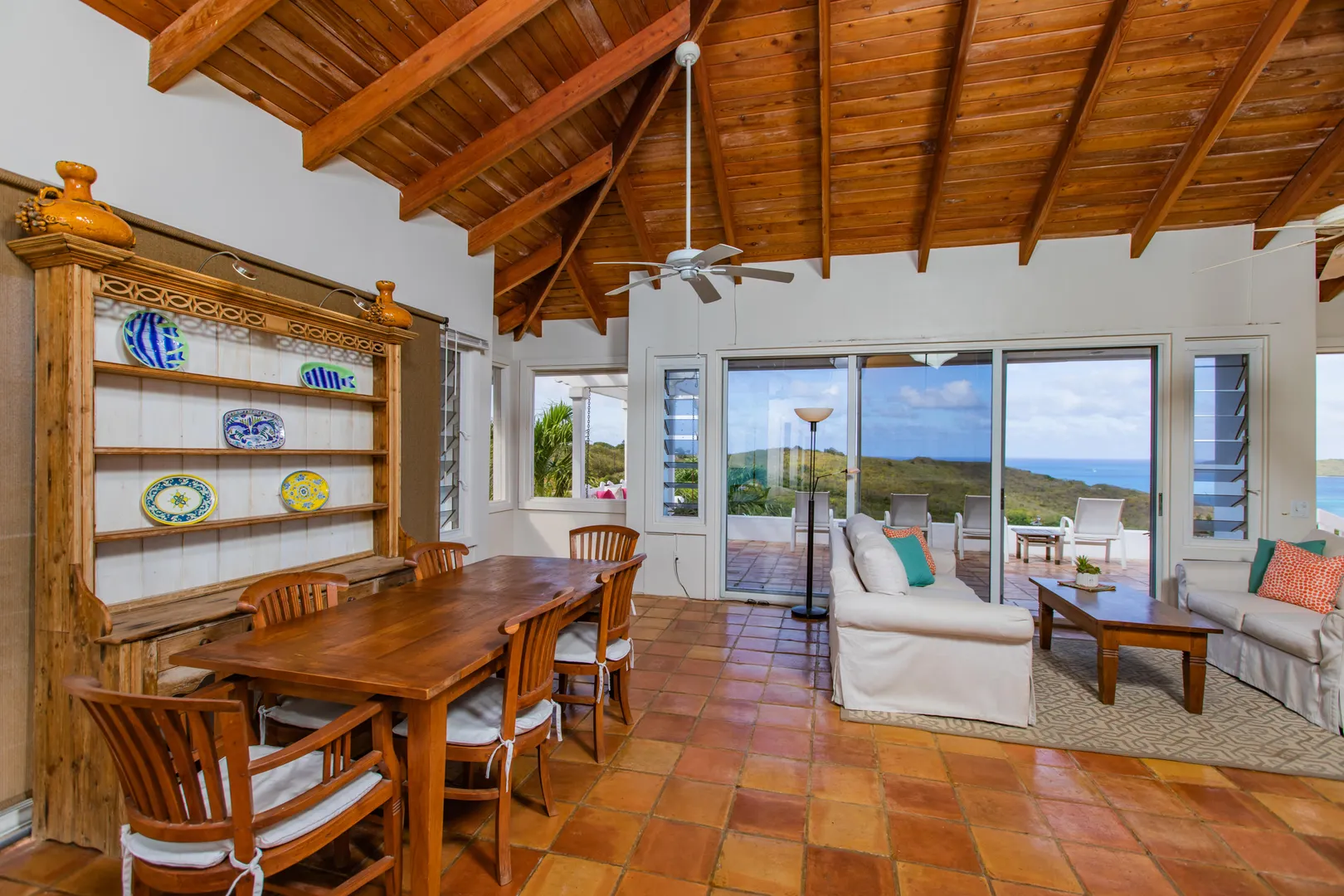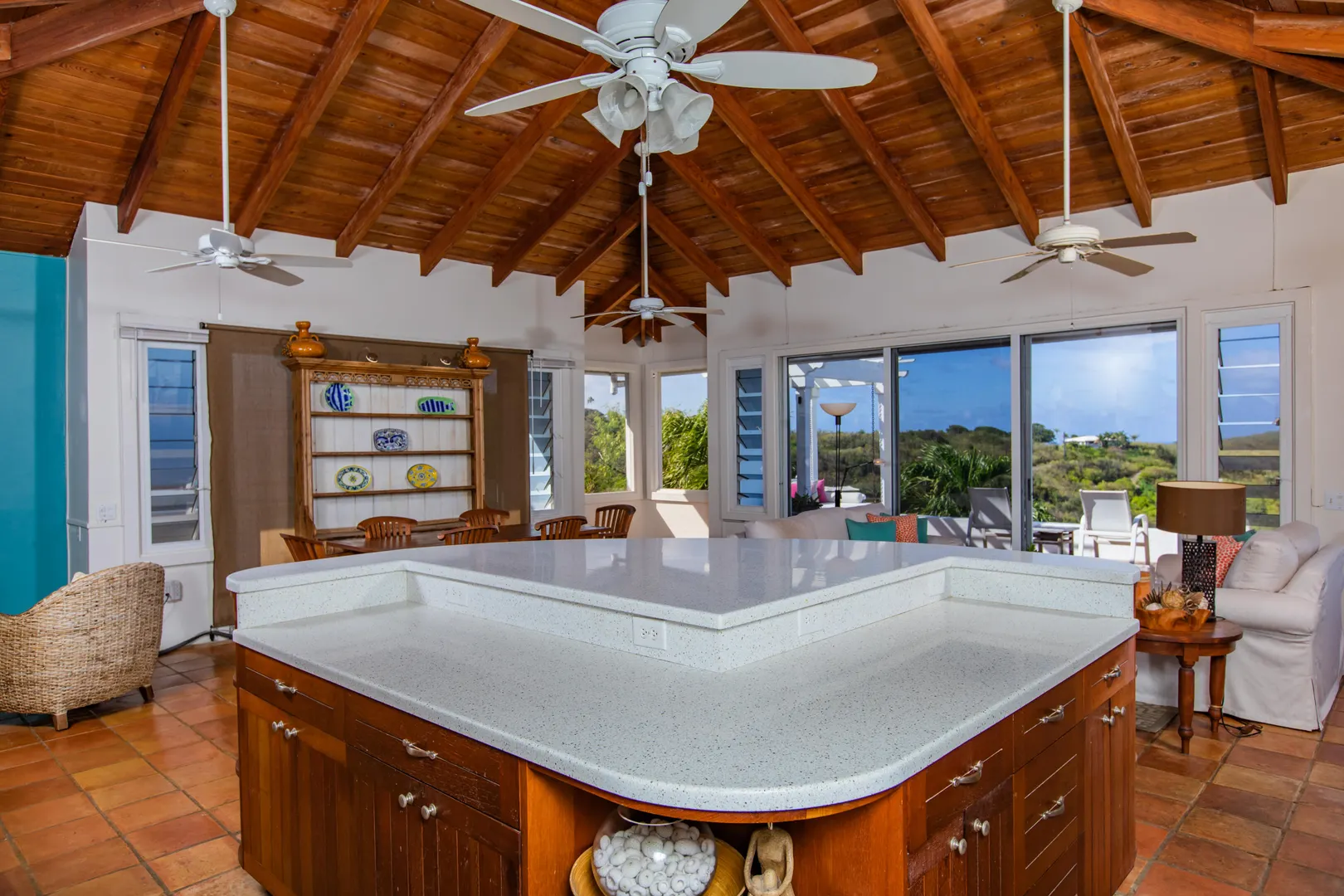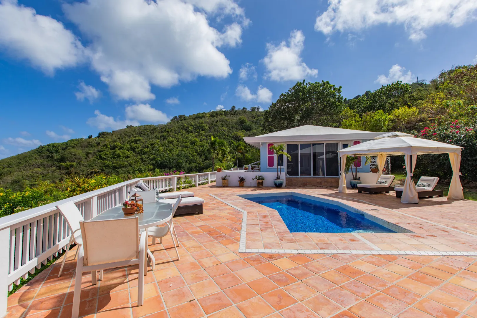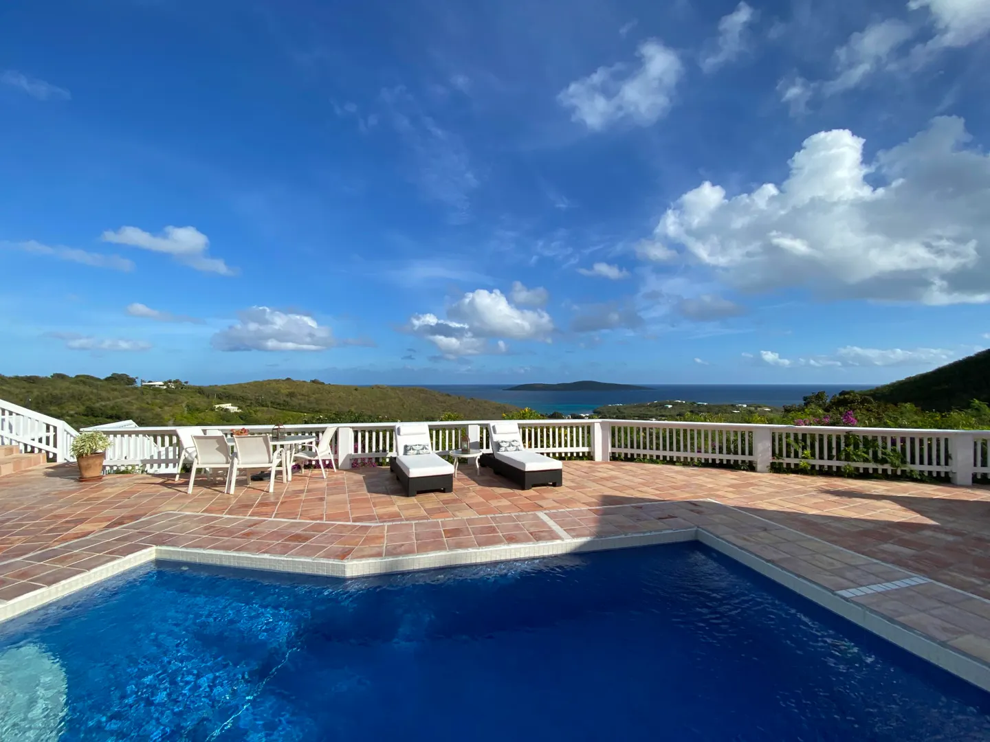 Perfect for large family or vacation rental! 4 acre hillside estate comprising a total of 7-bedrooms & 7-baths! ''Serenity at Solitude'' is a West Indian style home which features three detached buildings & a spacious pool patio w/ sweeping views of Buck Island and beyond! Main BR in one building w/ en suite bath & bonus office or nursery w/full bath. Kitchen & LR across the pool patio from MBR, guest BR & laundry below. Two more guest suites & baths plus a den for your guests or kids classroom/playroom! Solar panels & net metering, automatic gate, plus a separate 2BR, 1BA guesthouse - this East End home has it all!