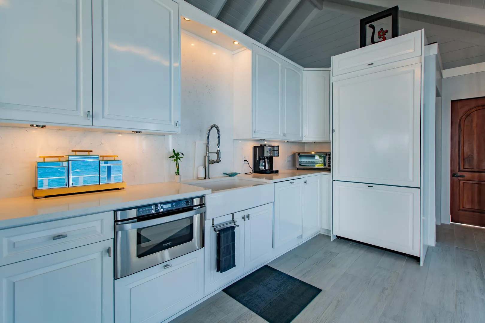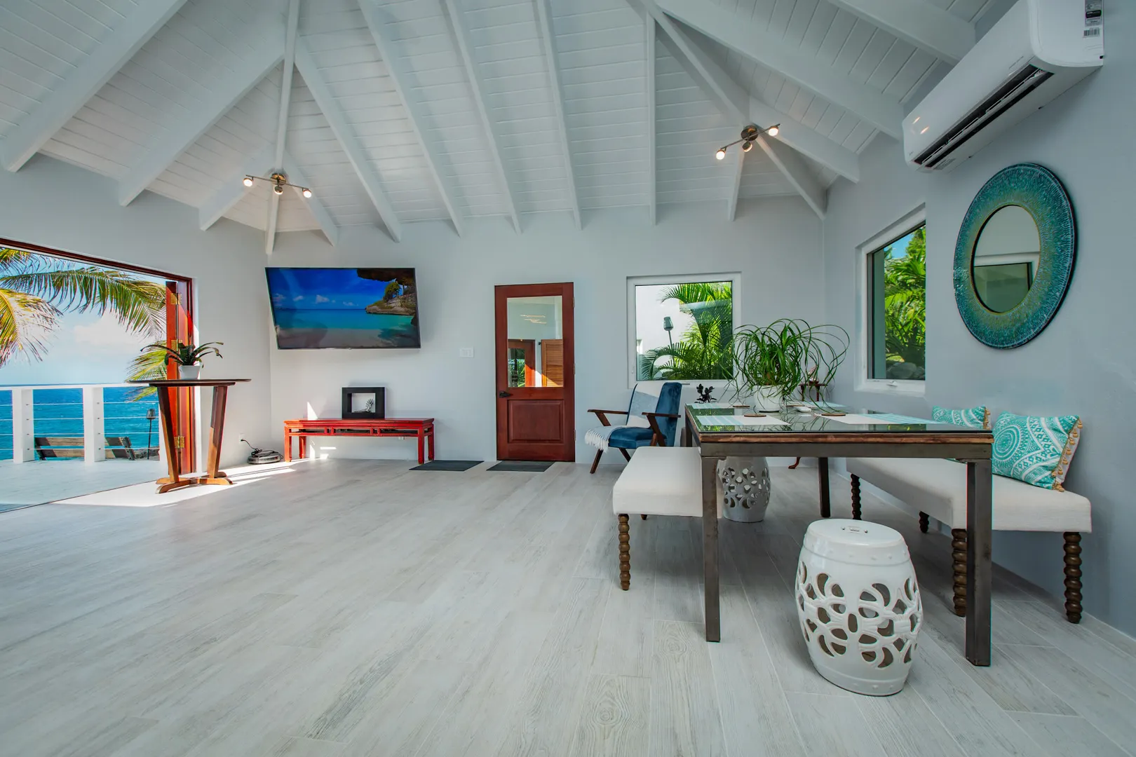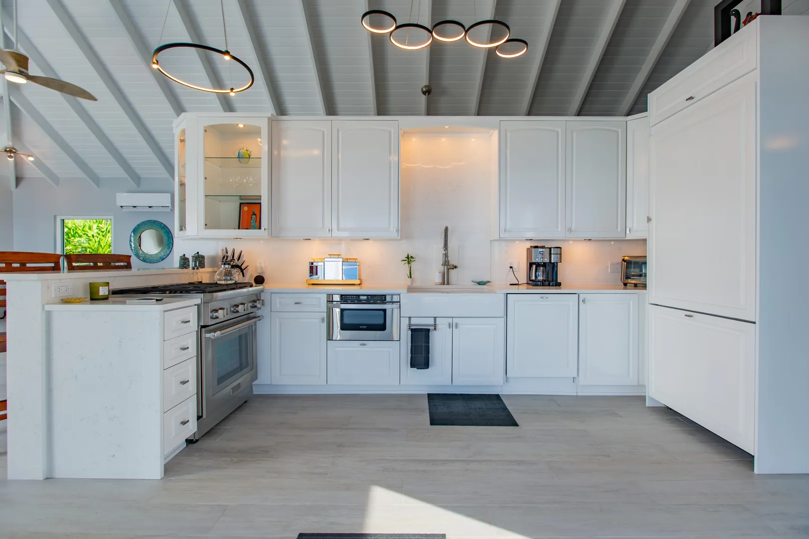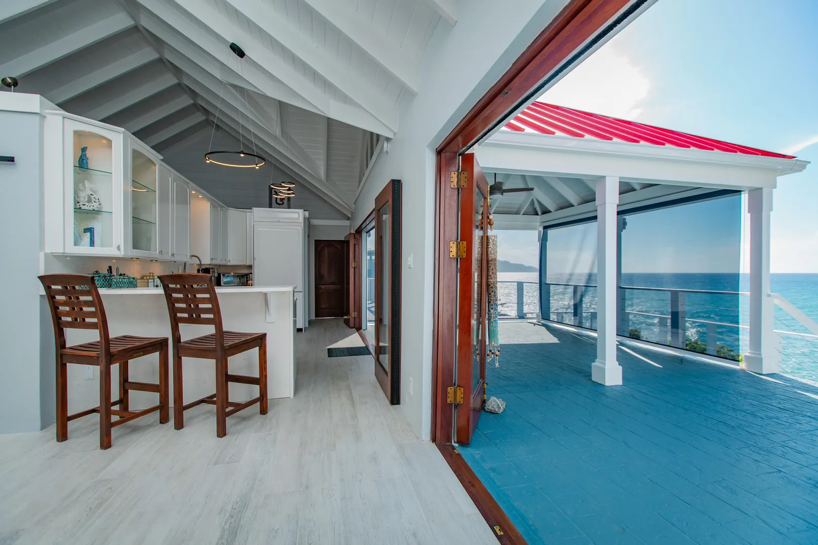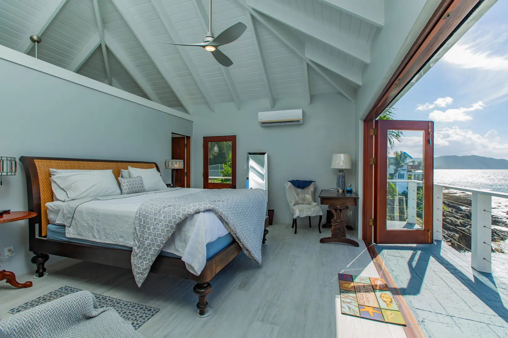 Welcome to ''Joyous Outlook'' A spectacular waterfront home with 270 degree views which has been completely remodeled from top to bottom! Brand new everything!! 2 BR's in main house, studio apt under garage next to the salt water-fed pool. Large great room with cathedral ceilings, huge bi-fold glass doors facing the sea, custom kitchen w/ Thermador appliances & quartz countertops & back splash, automatic roll down Kevlar shutters, auto roll down blinds in MBR & MBA, mahogany cabinets in MBA, split A/C's, ceiling fans, carpeted loft space in 2nd BR, exterior security camera, automatic gated access to side yard/extra parking, laundry room, extensive outdoor patio spaces, private patio off apt, outdoor shower. This home boasts the only garage in LaVallee on the waterfront!
