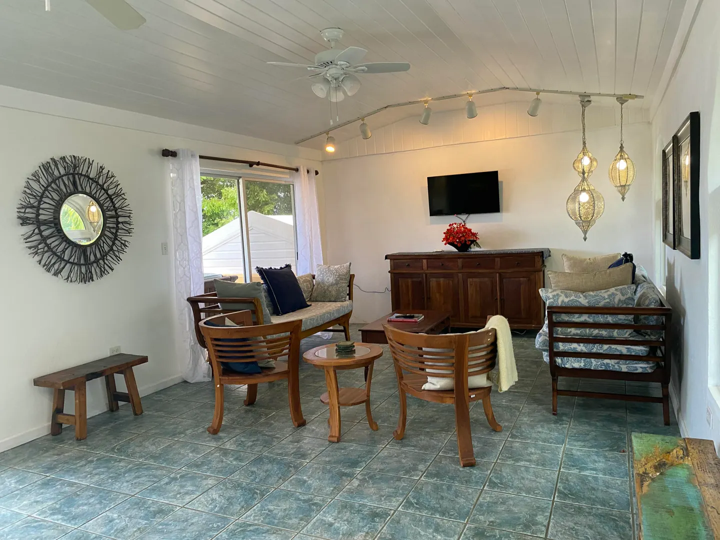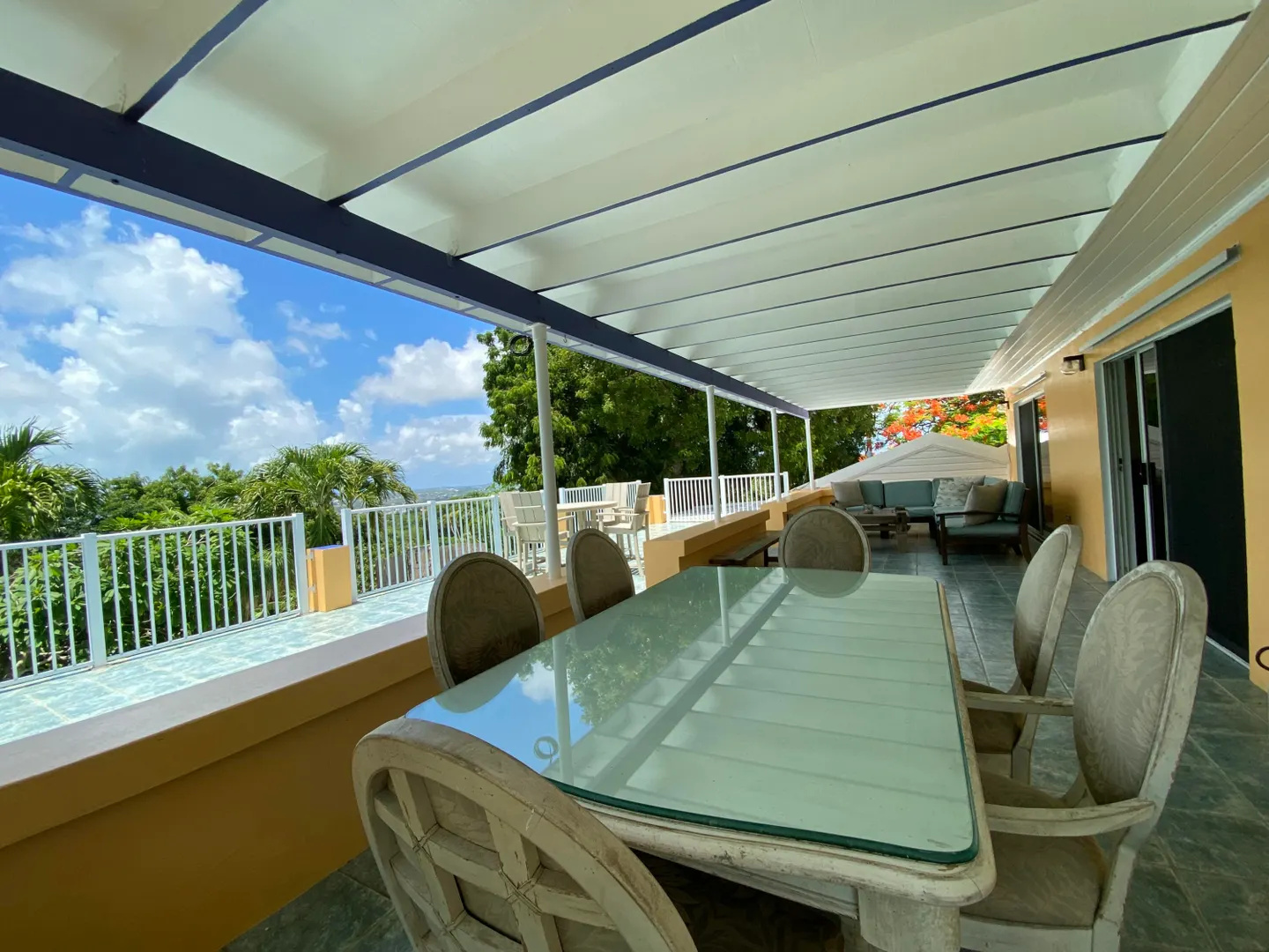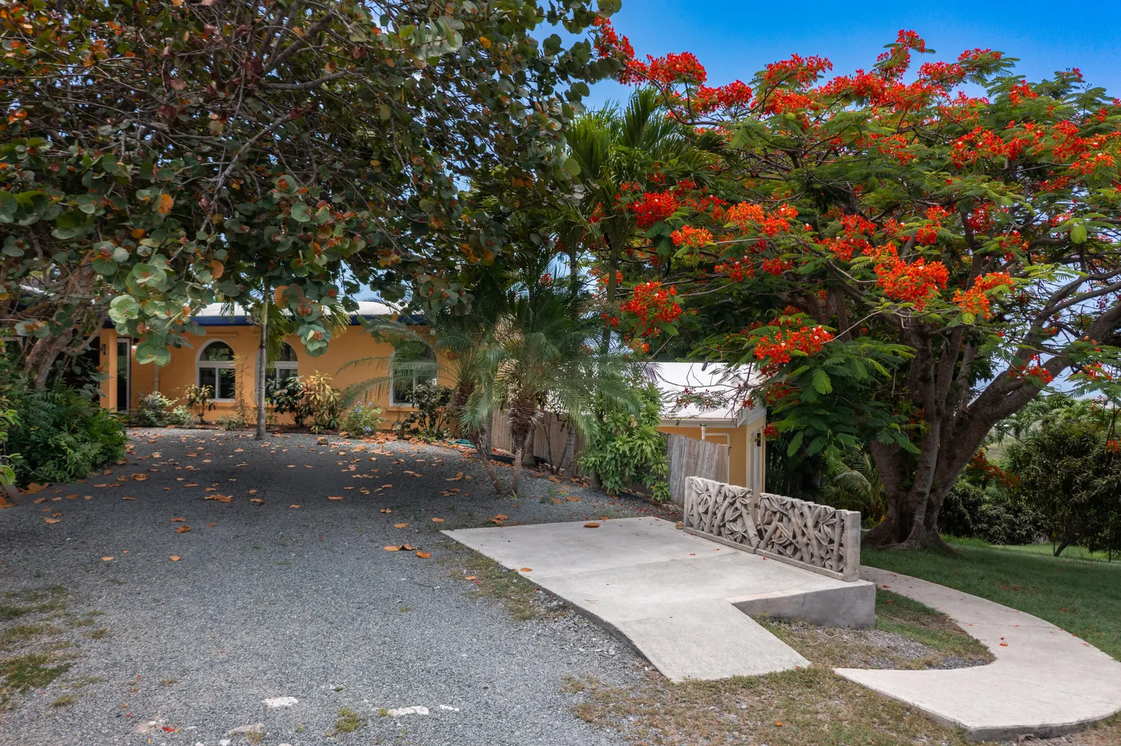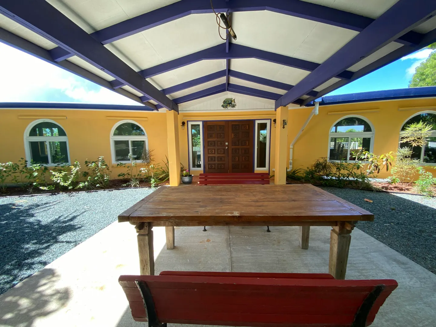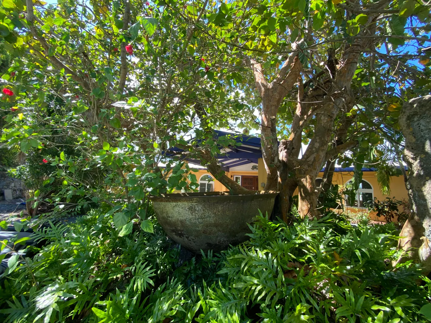 New to the market! This distinctive ranch-style home offers four bedrooms plus a large apartment, and an enchanting pool. Nestled in a private oasis and centrally located, with a South Shore view, the property is surrounded by beautifully landscaped gardens, with tropical pathways, stone walls, and fruit trees. An extensive gallery offers an exceptional setting for outdoor living and entertaining. Set on nearly one acre, the entire property is fully fenced and gated for privacy. There are also custom raised concrete beds, with irrigation ideal for vegetable /flower growing. This unique listing is offered furnished, with Split AC units, a 17KW diesel generator, and 3 sugar vats (coppers) from the 1750s. A must see.