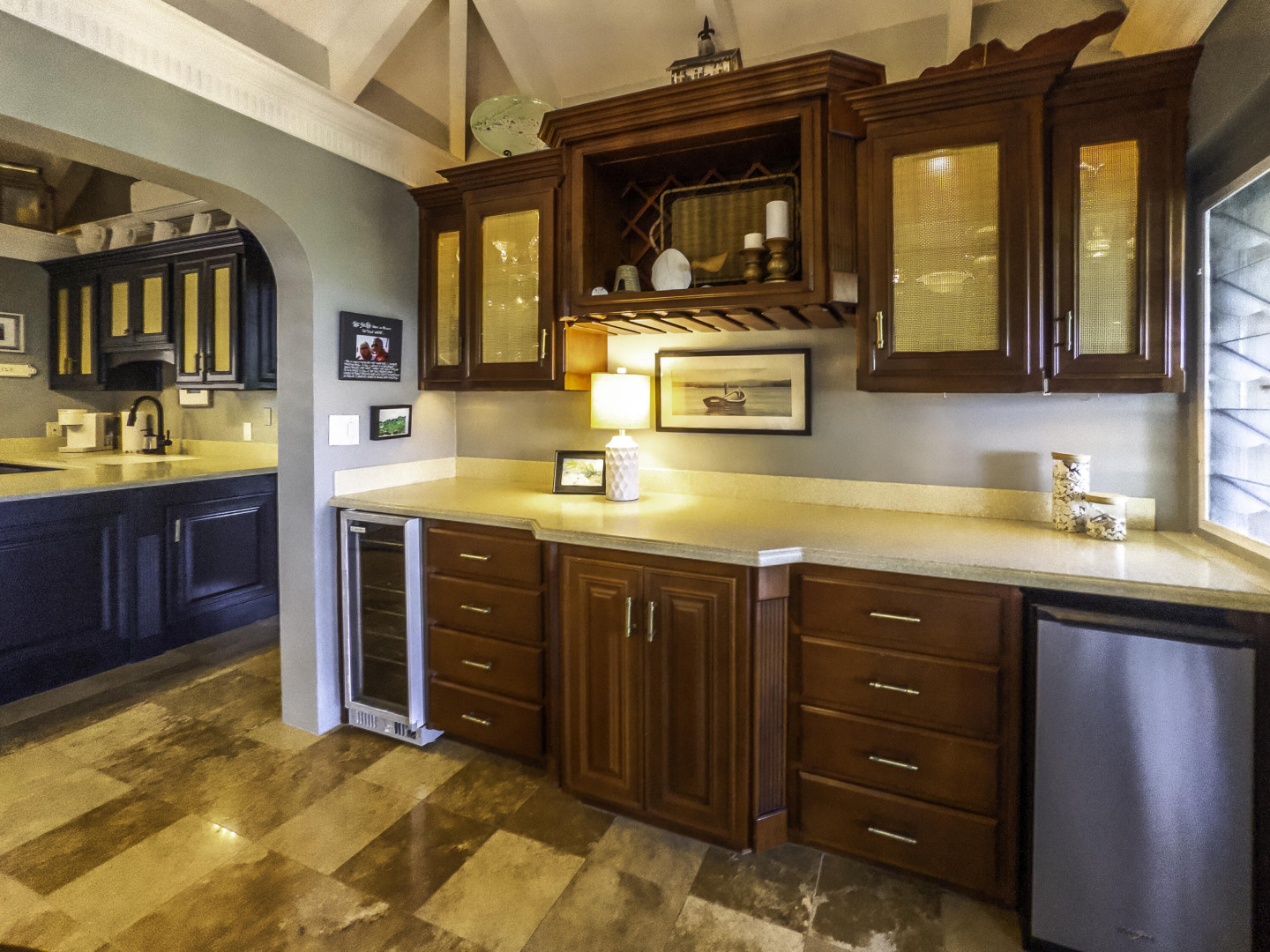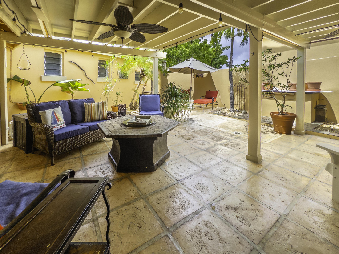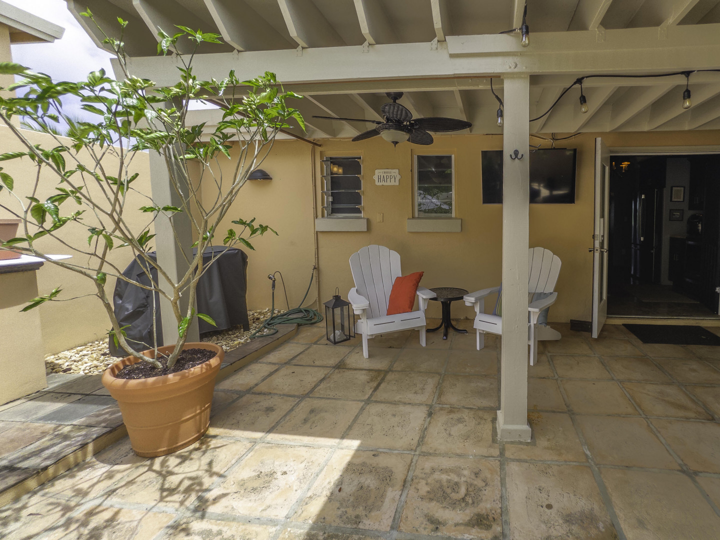 Extraordinary, single-level condo that merges the turnkey ease of condo ownership with the privacy and spaciousness of a stand-alone villa. This meticulously maintained and beautifully decorated residence features two full bedrooms, each served by its own private, en-suite bathroom and individual split AC units in every room. Elegant marble floor and crown molding with soffit lighting create a refined atmosphere. The custom kitchen with Corian countertops flows into a large, private, enclosed courtyard that truly expands your living area. A second covered patio overlooks the verdant hills and sparkling salt water pool. A UV water filtration system and 20KW diesel generator provide comfort and security.