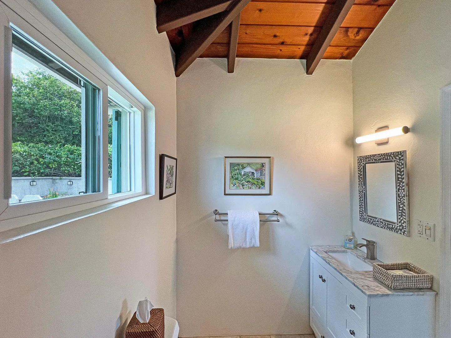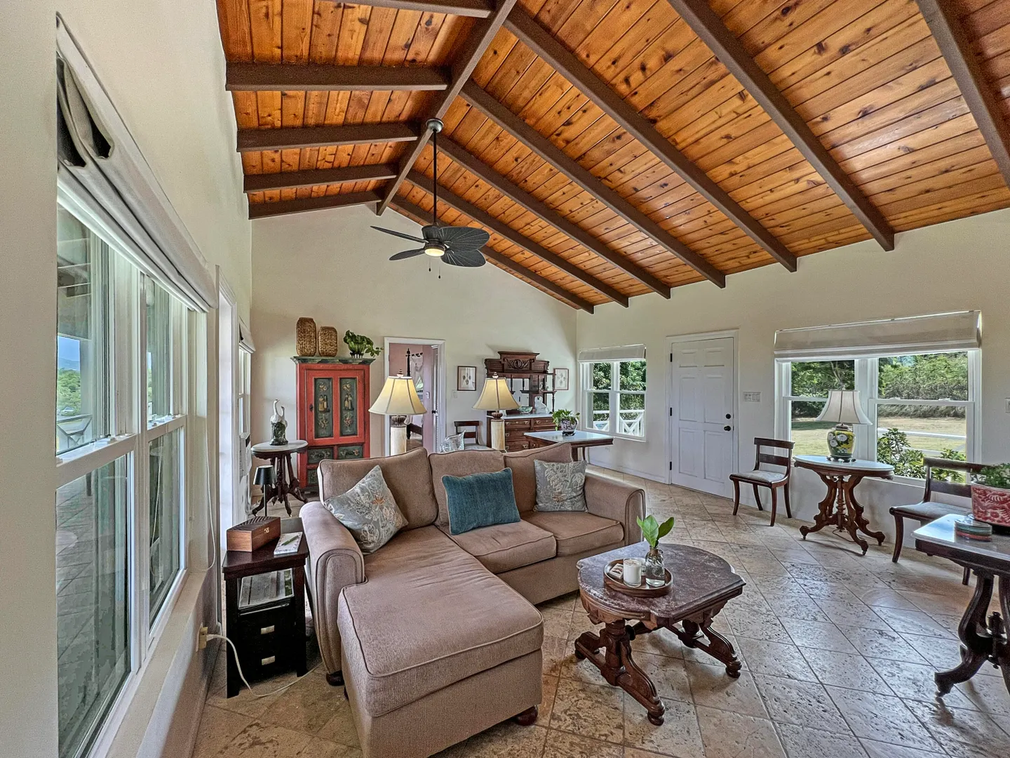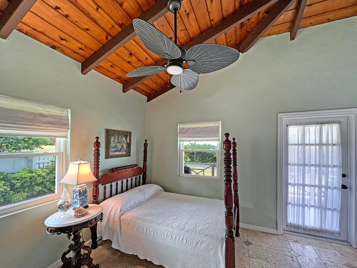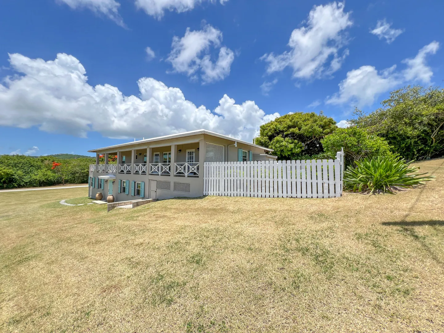 Judith's Fancy gem! Beautiful and charming 2 bedroom 2 bath home with 1/1 apartment in the desirable gated community of Judith's Fancy has been lovingly renovated with great attention to detail! The wide 54' gallery faces east making a wonderful place to relax with sun in the morning and shade in the afternoon. The house is situated to capture the tropical breezes. Features include 2 new kitchens, cypress ceiling, coral tile floors, new windows and doors, tumbled marble tile showers, whole house gas generator, new energy efficient AC window units, concrete driveway with brick accents, fenced side yard, and many recent improvements (see Documents section). There is a partial sea view. The lot behind (#154) is also for sale, giving the new owner additional privacy or a chance to expand.