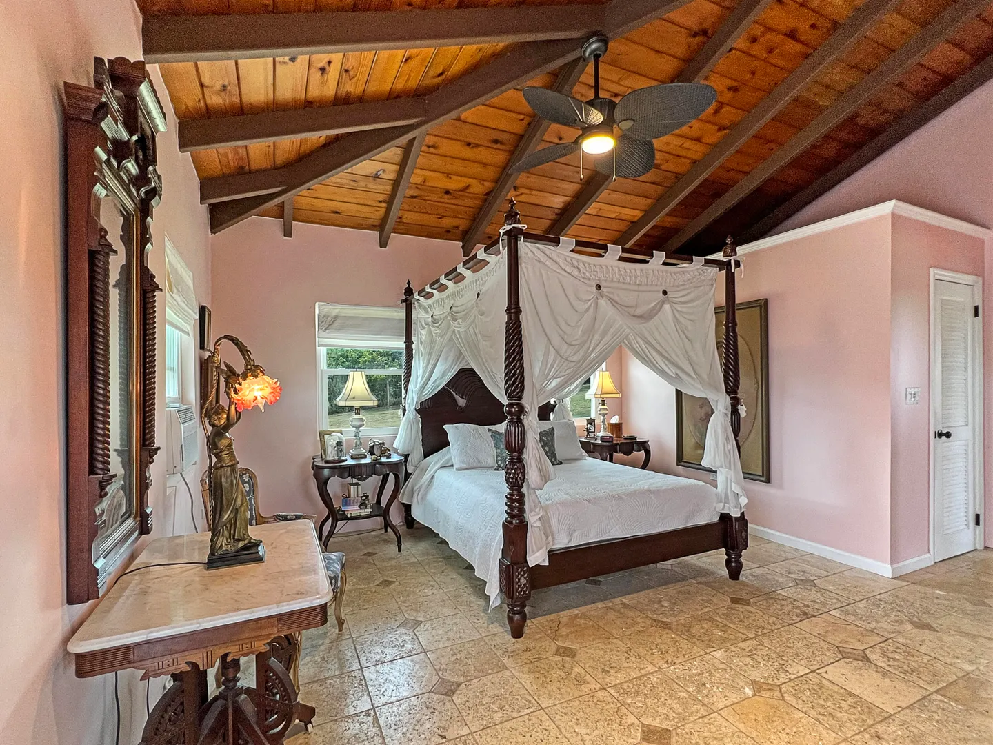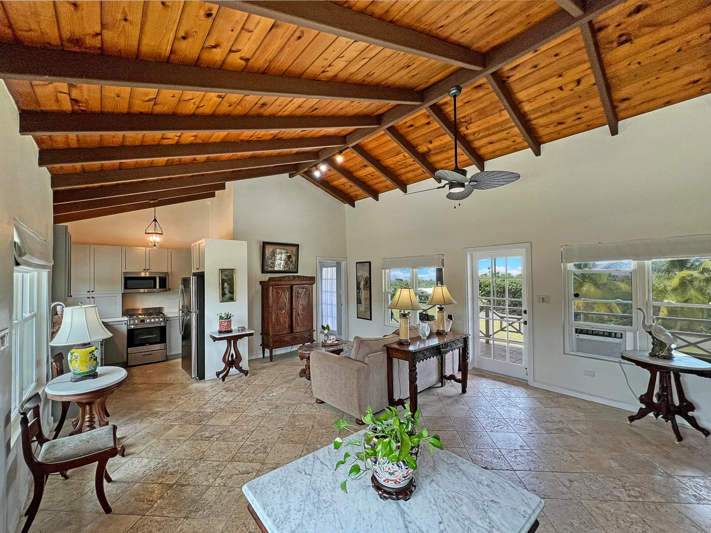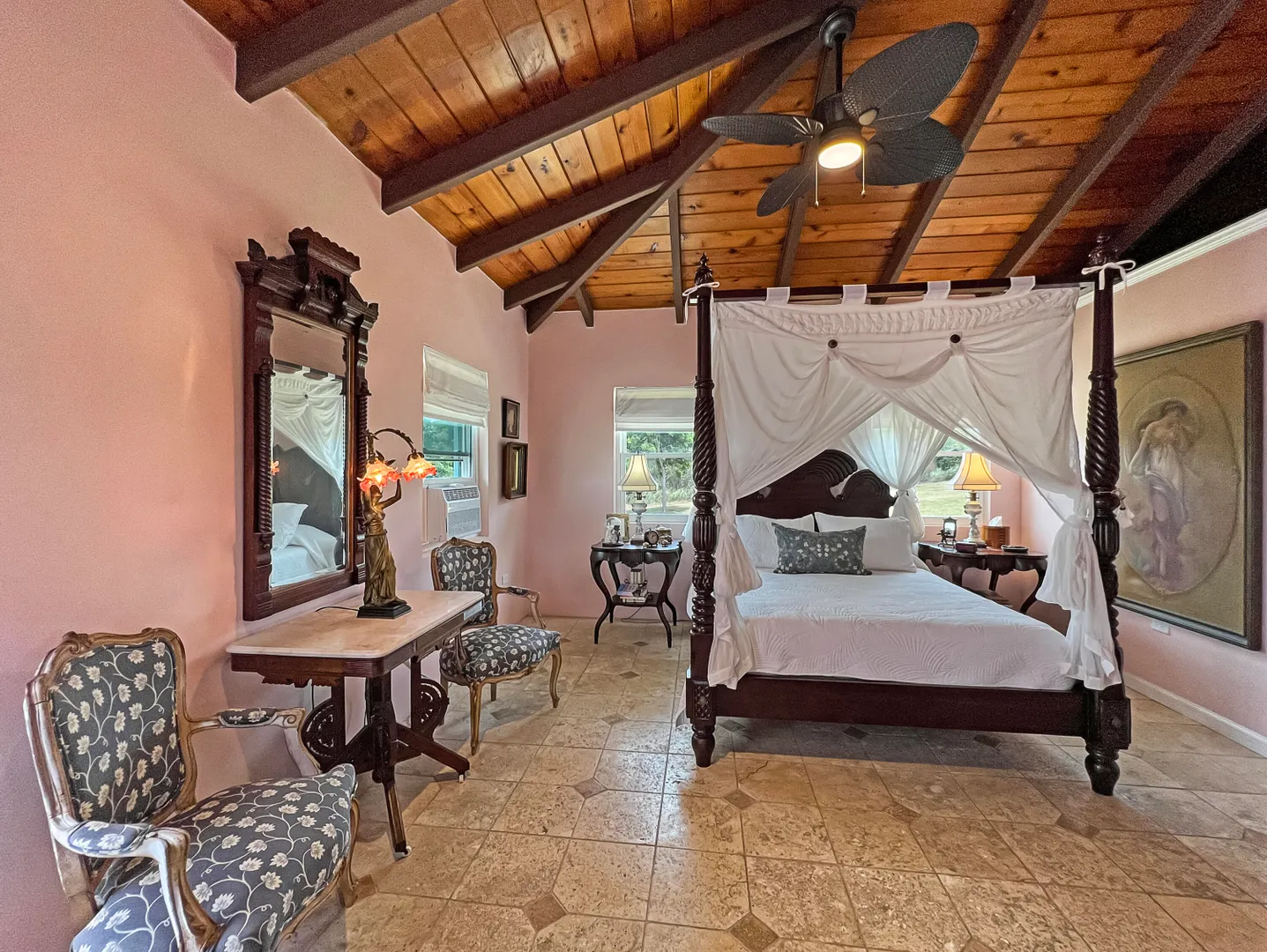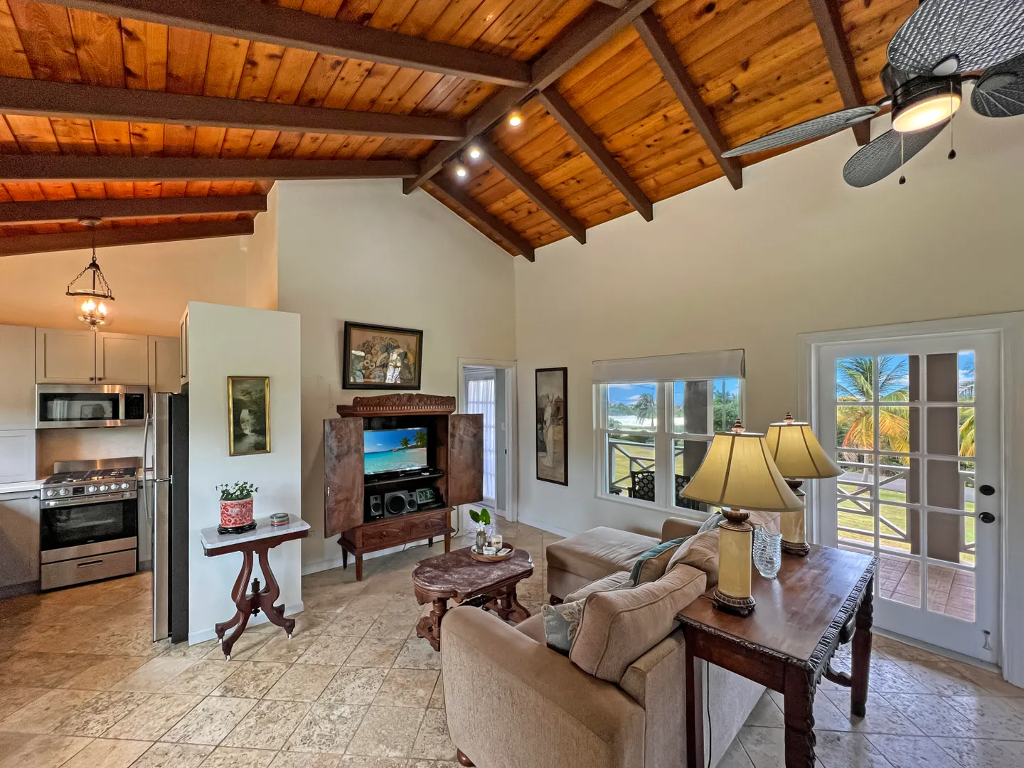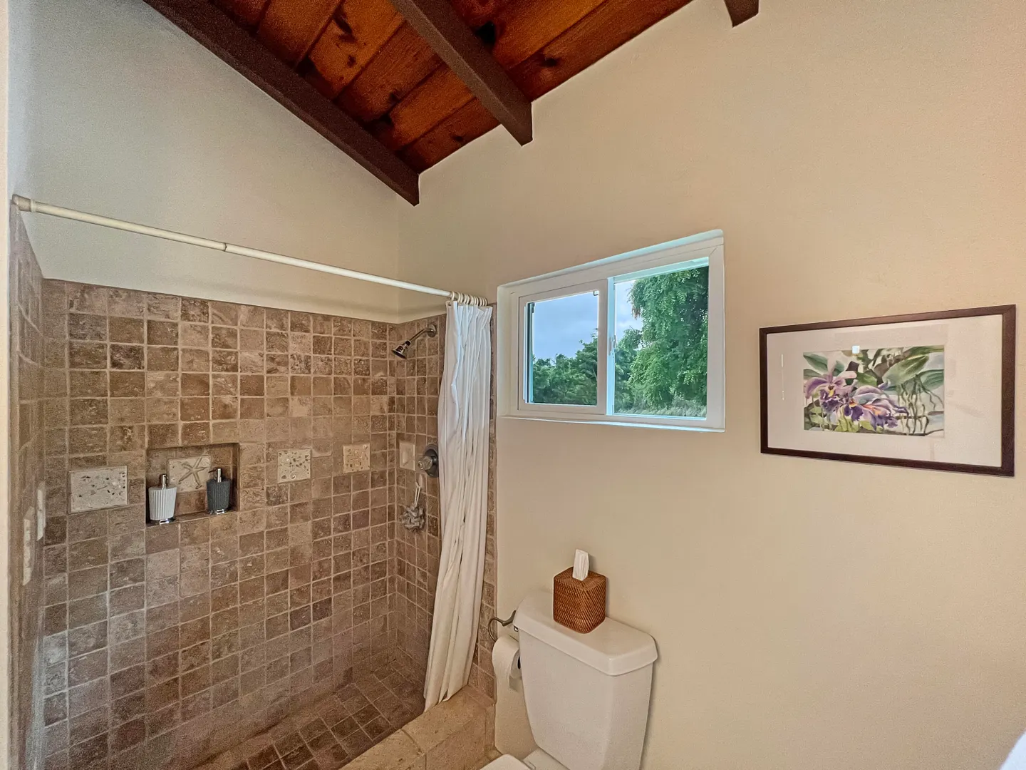 Judith's Fancy gem! Beautiful and charming 2 bedroom 2 bath home with 1/1 apartment in the desirable gated community of Judith's Fancy has been lovingly renovated with great attention to detail! The wide 54' gallery faces east making a wonderful place to relax with sun in the morning and shade in the afternoon. The house is situated to capture the tropical breezes. Features include 2 new kitchens, cypress ceiling, coral tile floors, new windows and doors, tumbled marble tile showers, whole house gas generator, new energy efficient AC window units, concrete driveway with brick accents, fenced side yard, and many recent improvements (see Documents section). There is a partial sea view. The lot behind (#154) is also for sale, giving the new owner additional privacy or a chance to expand.