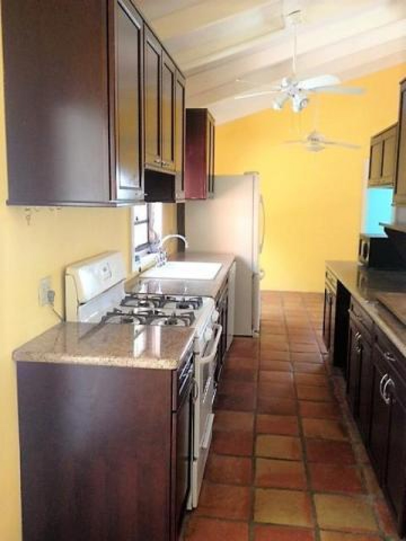 This house sustained minimal damage from hurricane Maria but has no generator. Breezy, 7 Flaggs Road. Pretty, perfectly sized family home set on 1.8 acres for plenty of privacy. Custom gingerbread trim; solar hot water; Danish hurricane shutters, Saltillo tile floors. Main house is 2 bedroom 2 en suite bathroom; large living room opening out to 650 sf deck atop the lush and unspoiled Cotton Valley from the hills of Catherine's Hope all the way to Goat Hill and the sea. Kitchen with granite countertops, dark wood cabinetry, French door Amana Fridge and gas range. Also in the lower level of the main house are 385 sf guest suite with tile patio and additional 325 sf shop/bonus room. 500sf separate rental cottage with its own parking and entrance.