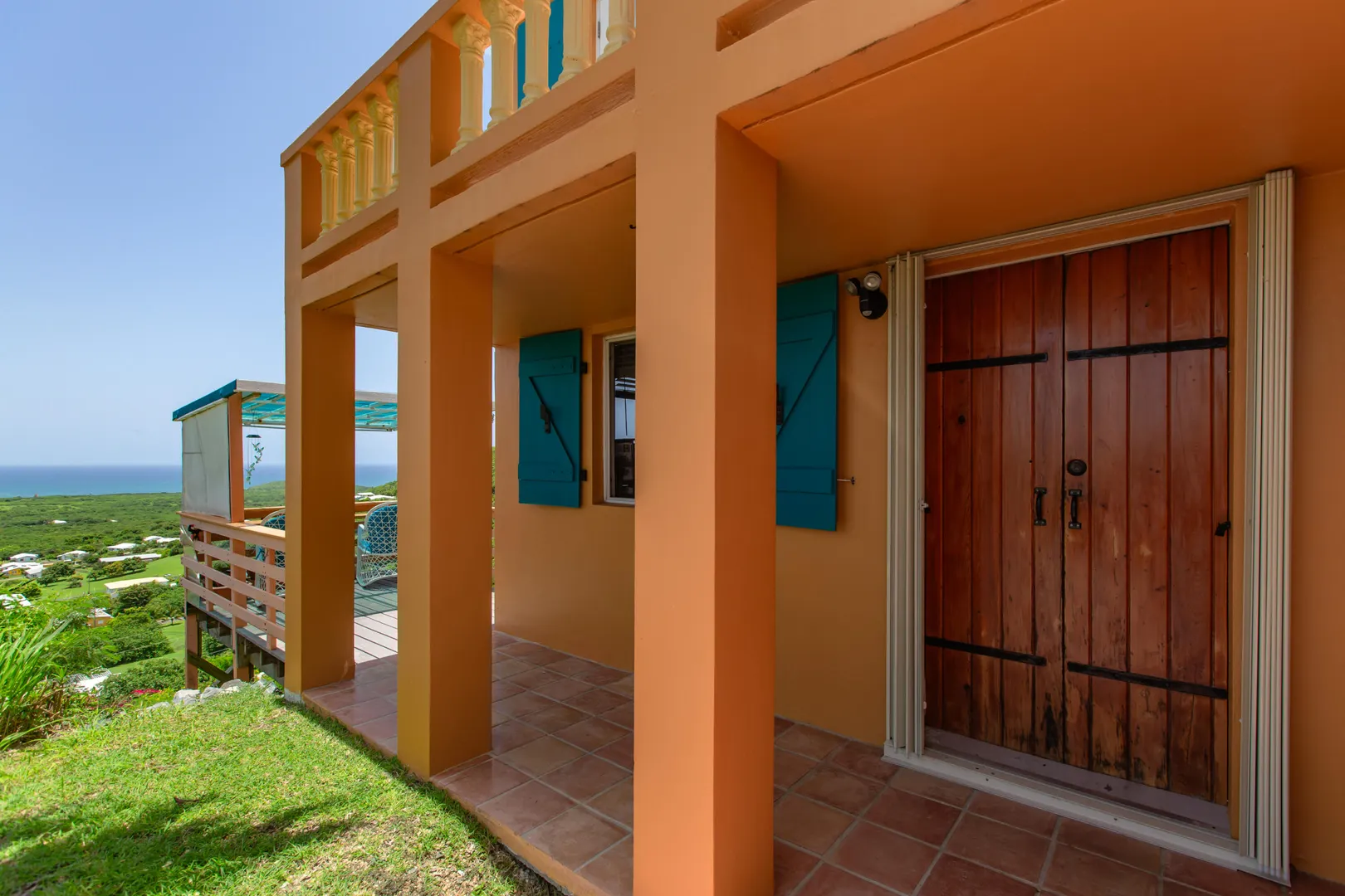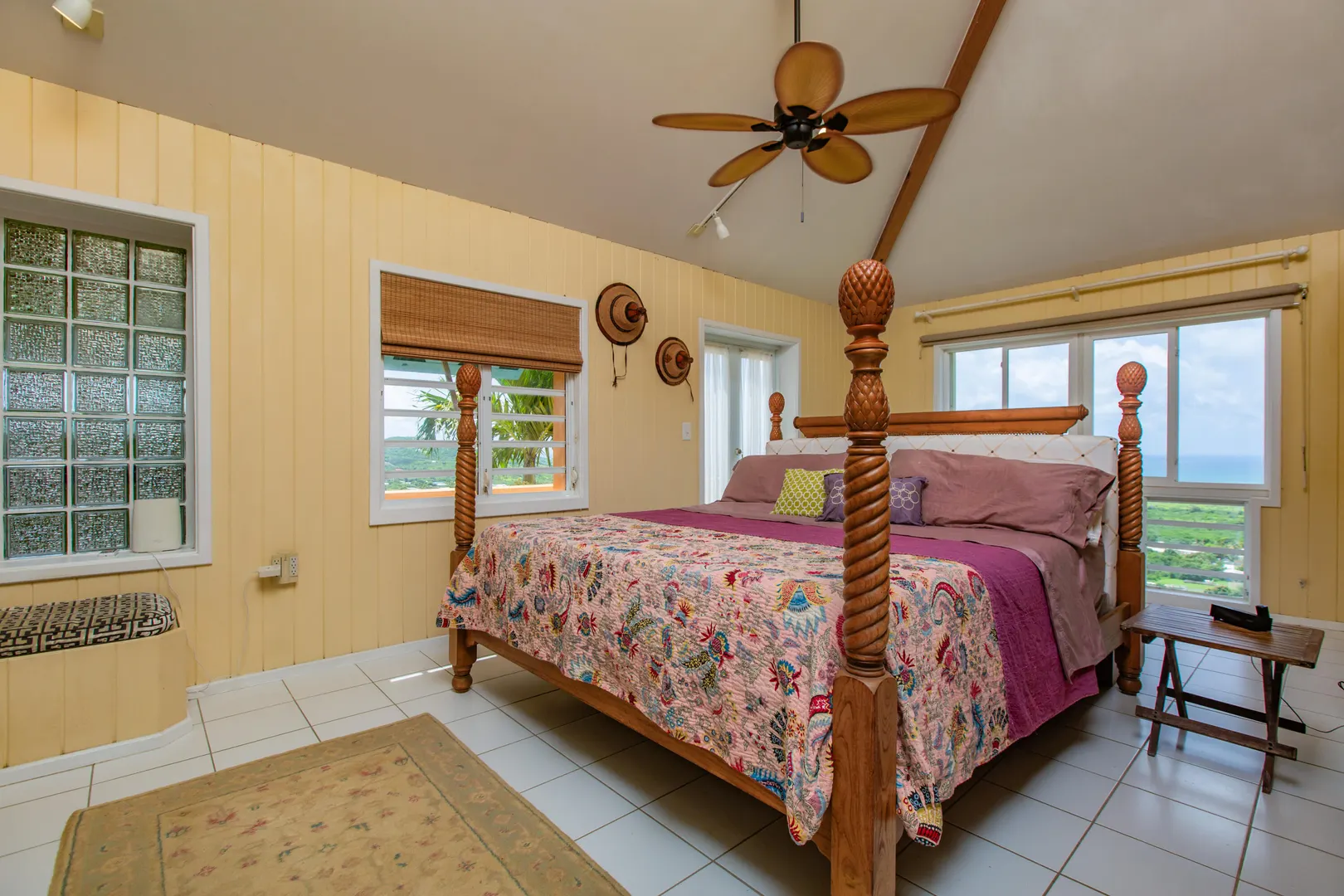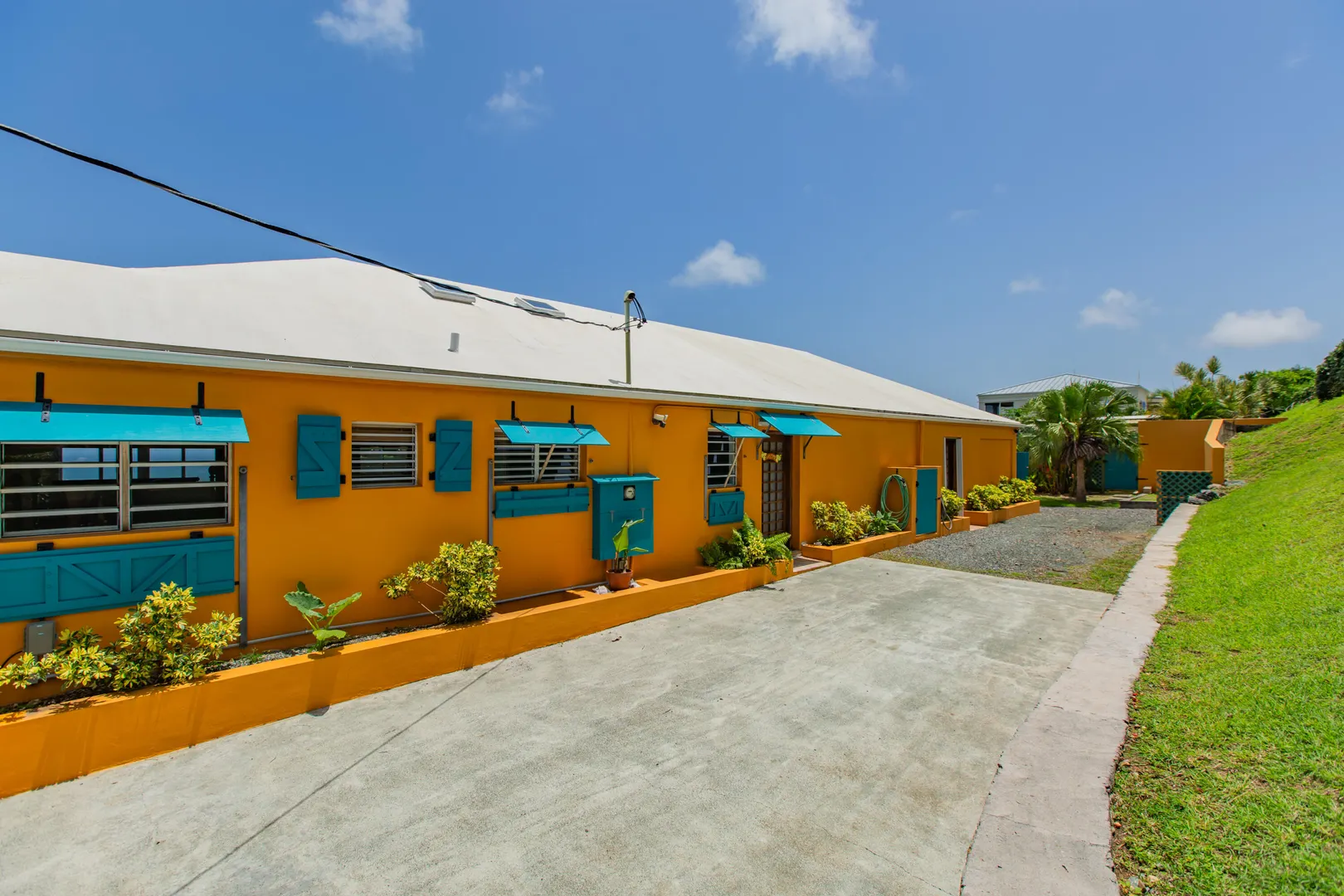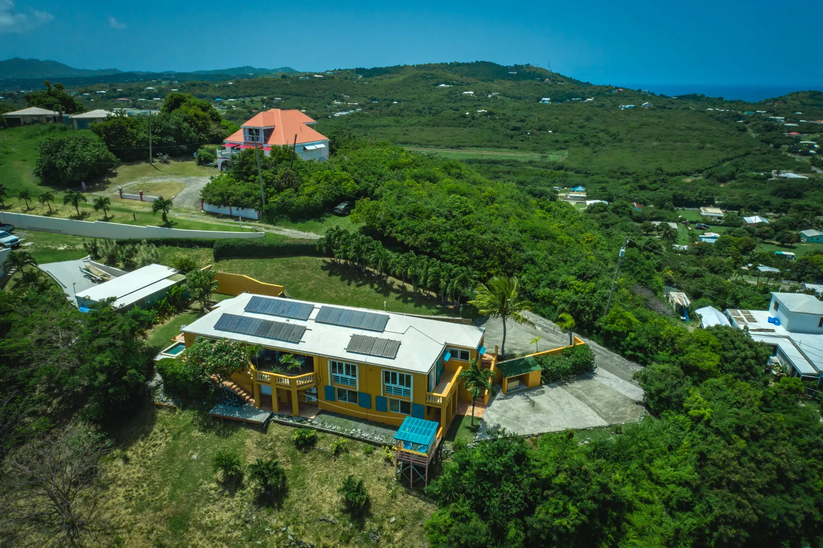 Escape to your own slice of paradise in this stunning Caribbean hillside home boasting views of both the North and South shores. With 3 bedrooms and 2 baths, plus a convenient efficiency apartment with separate entrance & parking on the lower level, there's ample space for family and guests.Relax with your very own dipping pool, perfect for unwinding while soaking in the panoramic vistas. This home is a masterpiece of custom features including vaulted cypress ceilings, Blue Bitch tiled floors, skylights, mahogany doors & cabinetry. Other amenities include storage shed for tools/yard equipment, large storage room/workshop plus laundry room with utility sink & bonus fridge, Enjoy eco-friendly living w/ solar net metering & an automatic propane generator - large yard perfect for pets!