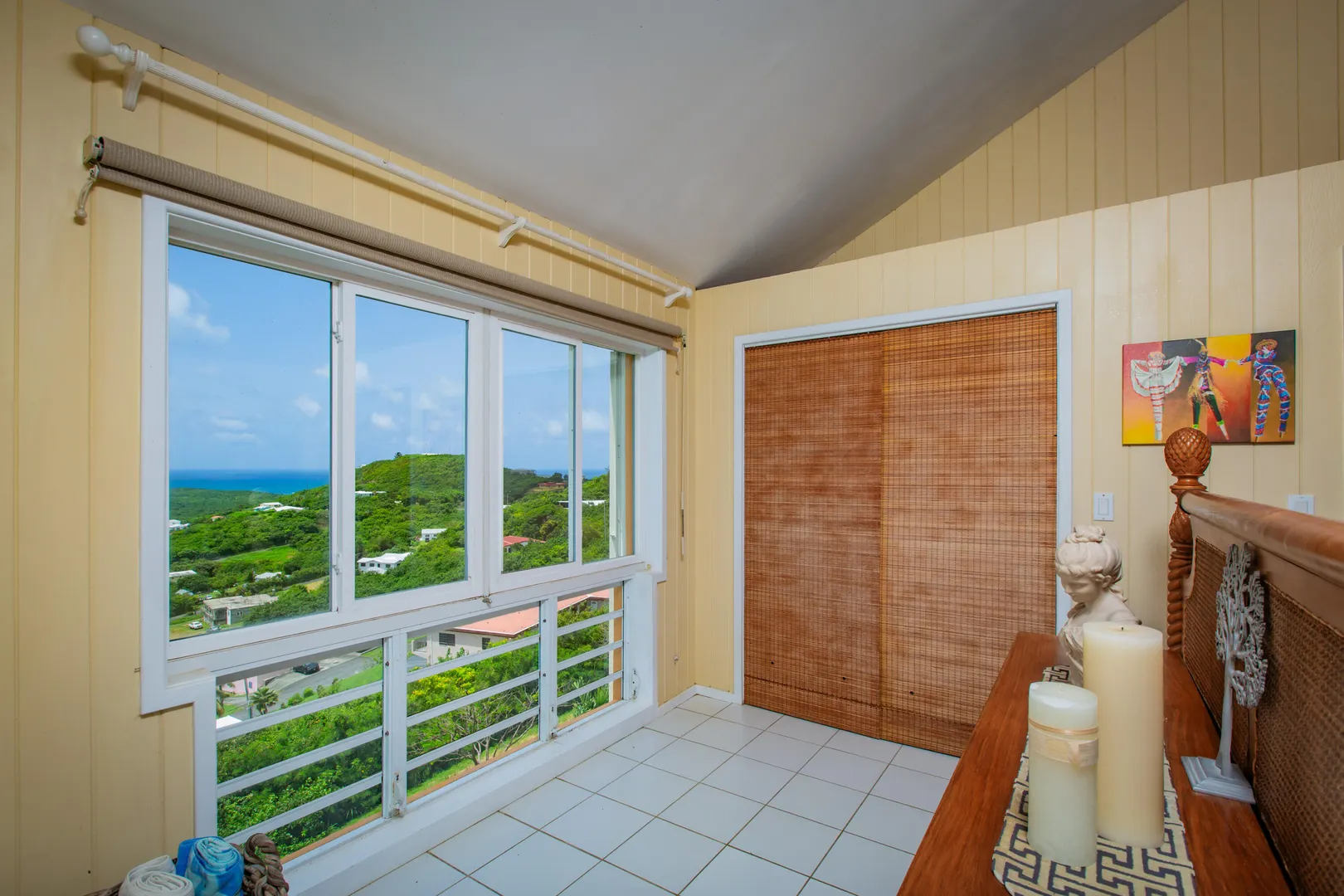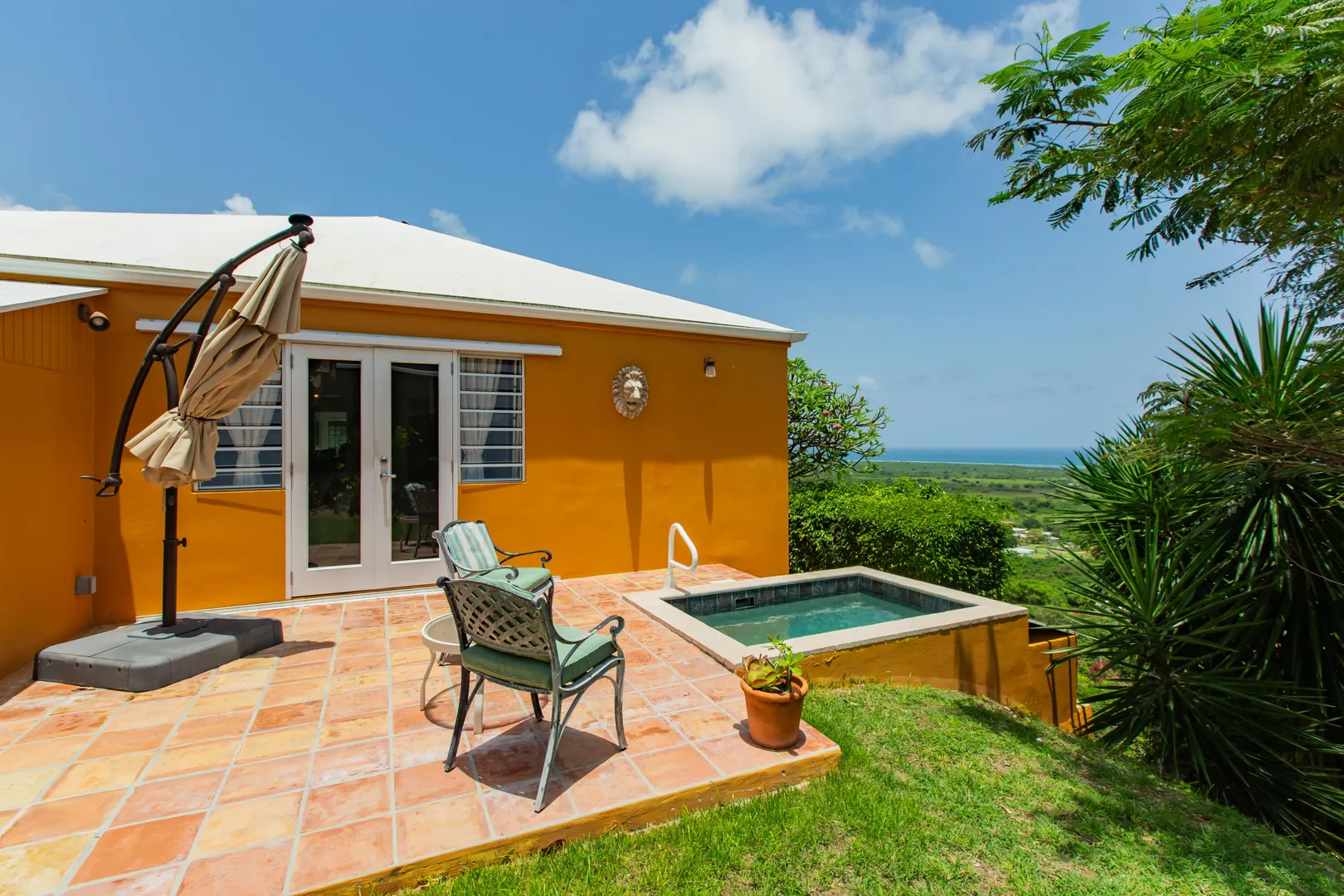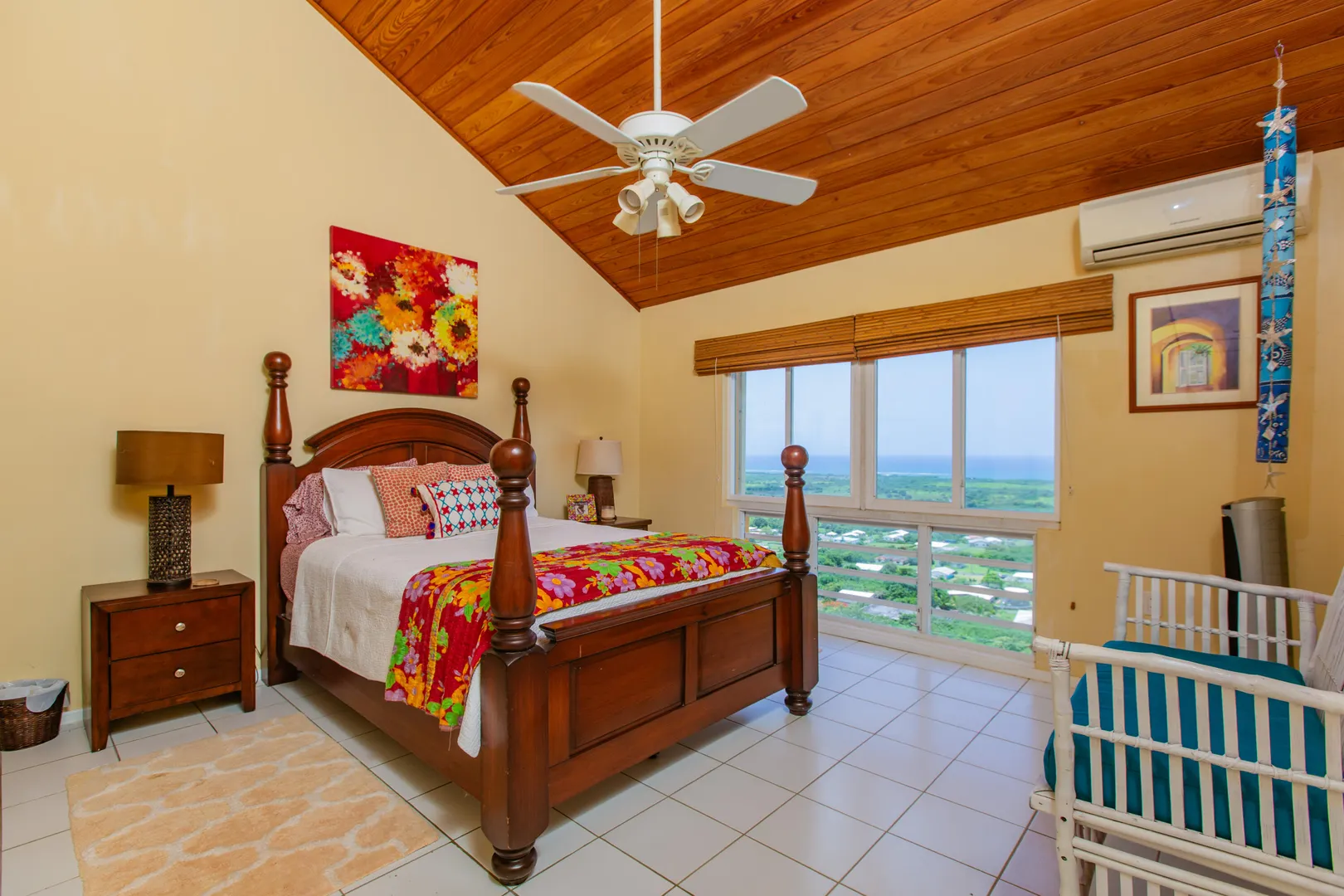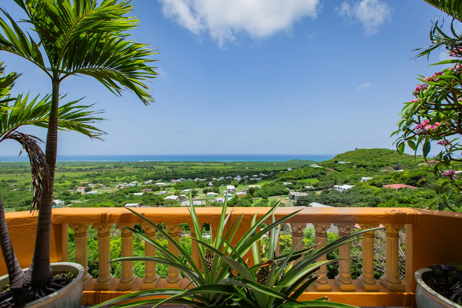 Escape to your own slice of paradise in this stunning Caribbean hillside home boasting views of both the North and South shores. With 3 bedrooms and 2 baths, plus a convenient efficiency apartment with separate entrance & parking on the lower level, there's ample space for family and guests.Relax with your very own dipping pool, perfect for unwinding while soaking in the panoramic vistas. This home is a masterpiece of custom features including vaulted cypress ceilings, Blue Bitch tiled floors, skylights, mahogany doors & cabinetry. Other amenities include storage shed for tools/yard equipment, large storage room/workshop plus laundry room with utility sink & bonus fridge, Enjoy eco-friendly living w/ solar net metering & an automatic propane generator - large yard perfect for pets!