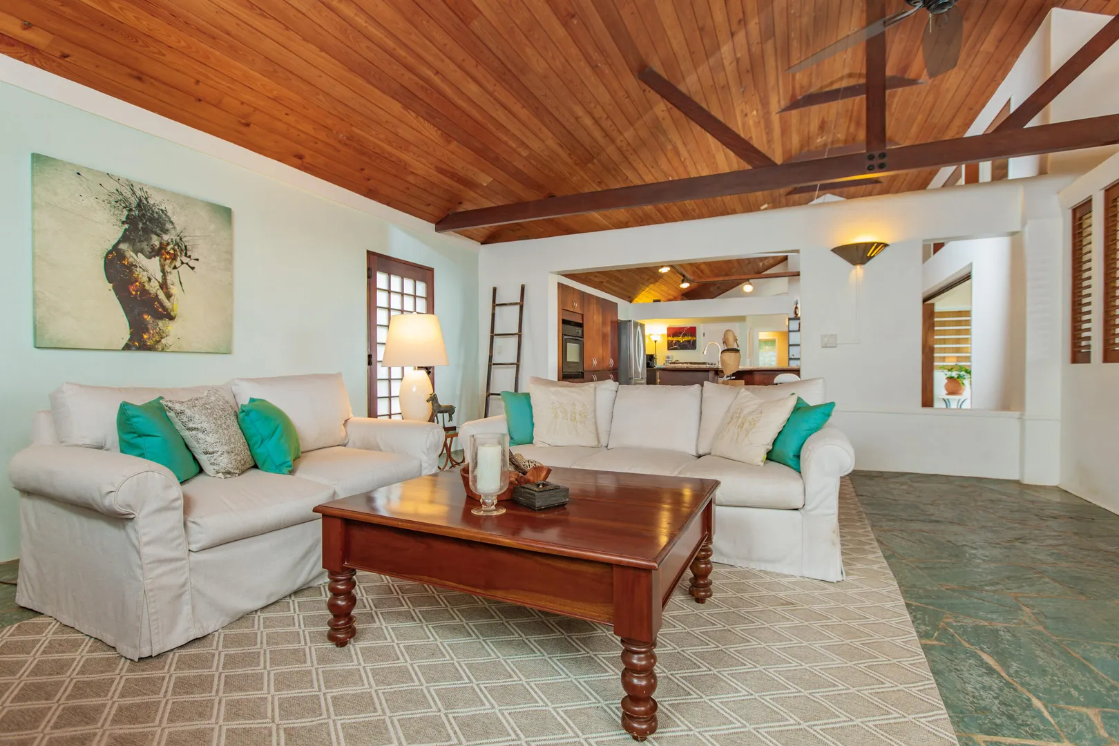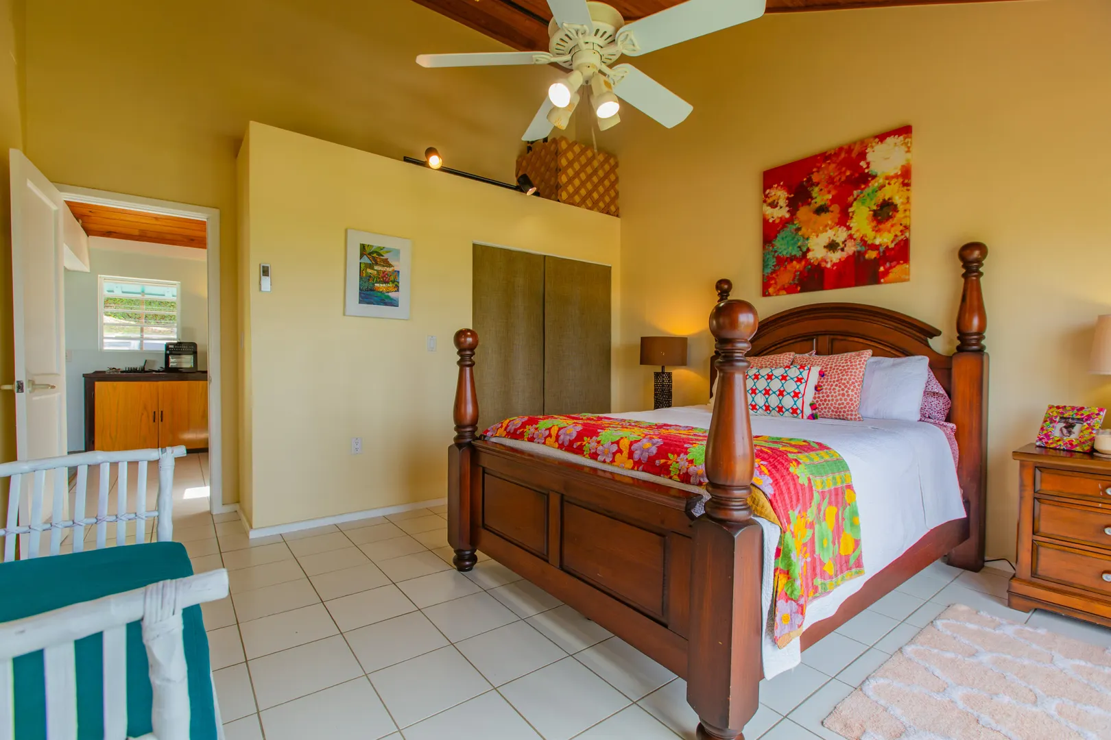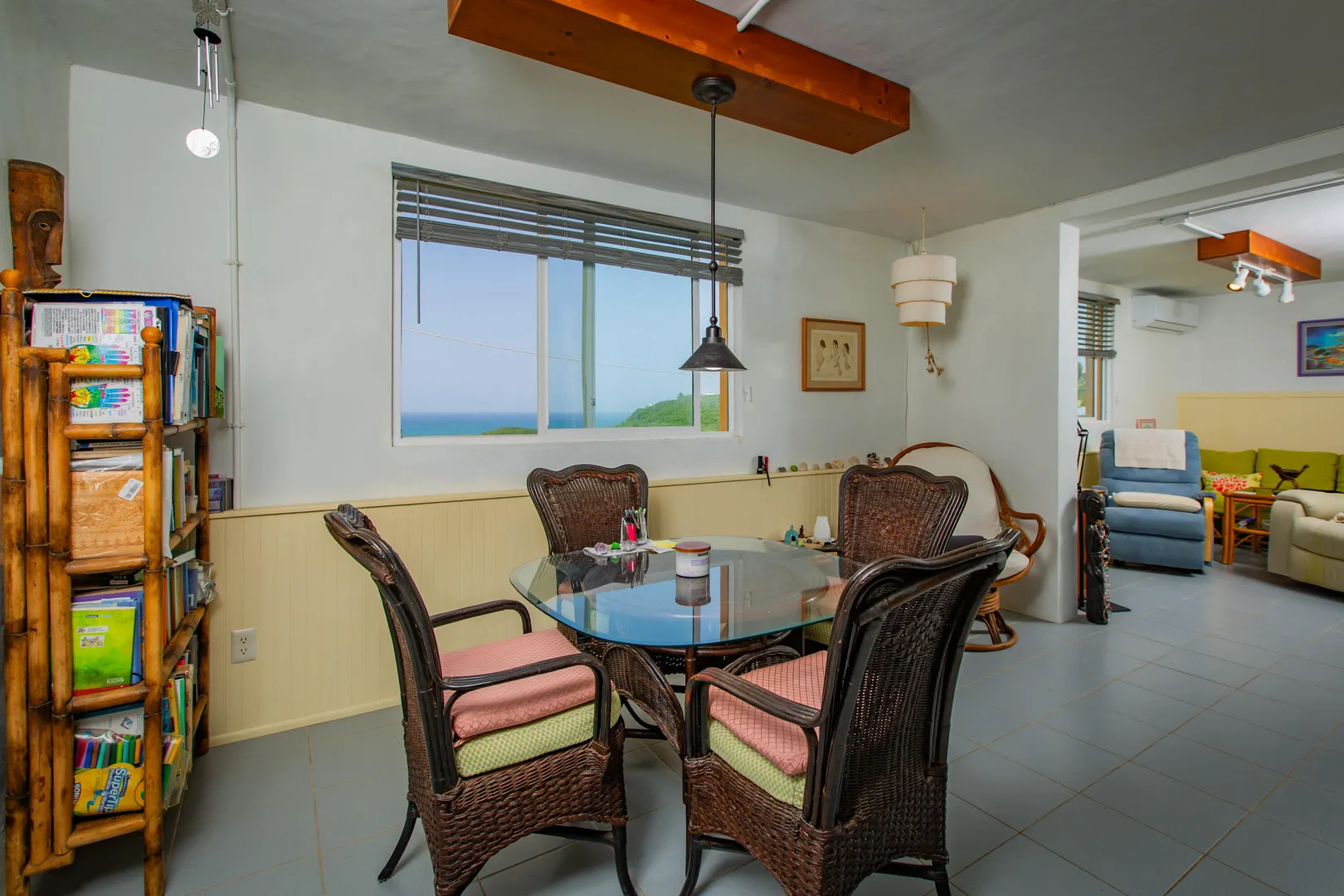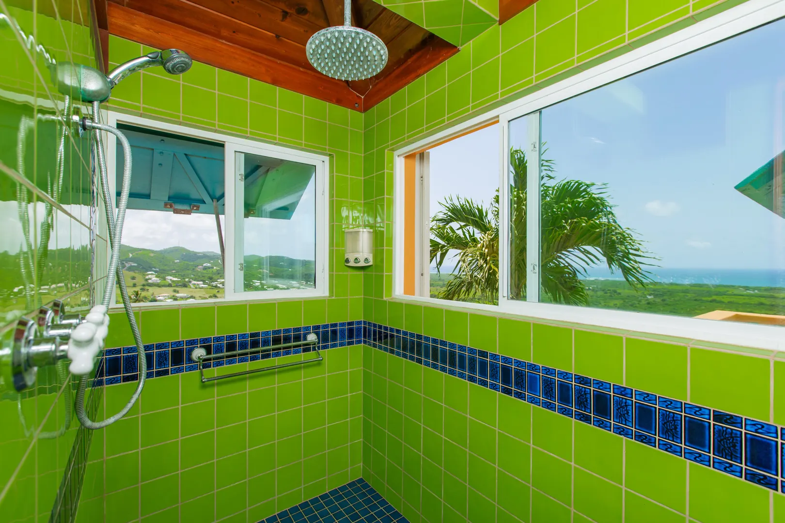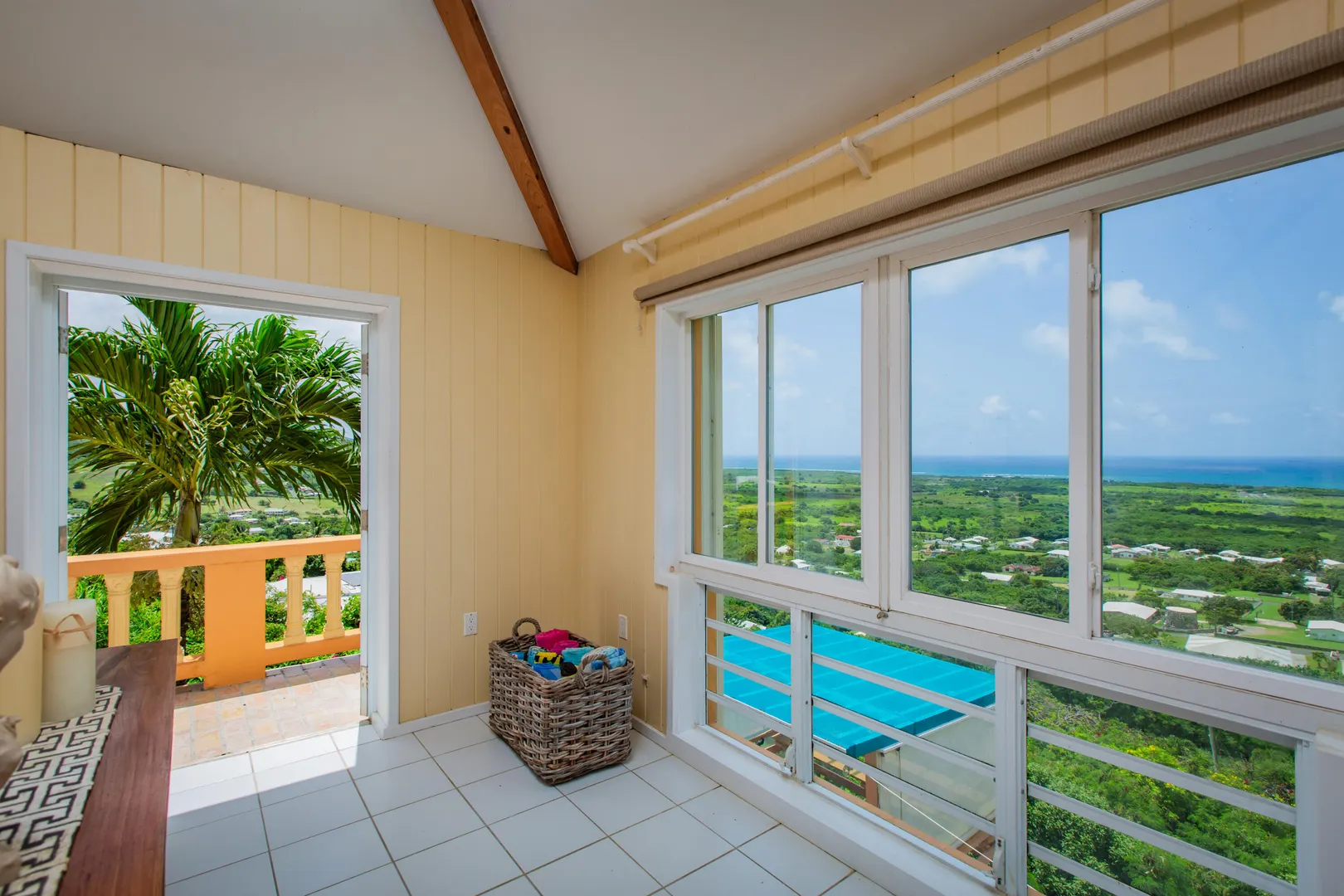 Escape to your own slice of paradise in this stunning Caribbean hillside home boasting views of both the North and South shores. With 3 bedrooms and 2 baths, plus a convenient efficiency apartment with separate entrance & parking on the lower level, there's ample space for family and guests.Relax with your very own dipping pool, perfect for unwinding while soaking in the panoramic vistas. This home is a masterpiece of custom features including vaulted cypress ceilings, Blue Bitch tiled floors, skylights, mahogany doors & cabinetry. Other amenities include storage shed for tools/yard equipment, large storage room/workshop plus laundry room with utility sink & bonus fridge, Enjoy eco-friendly living w/ solar net metering & an automatic propane generator - large yard perfect for pets!
