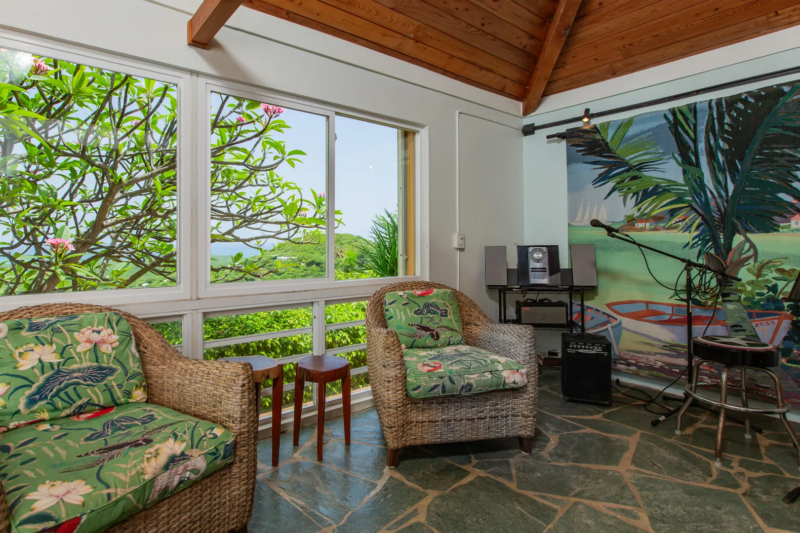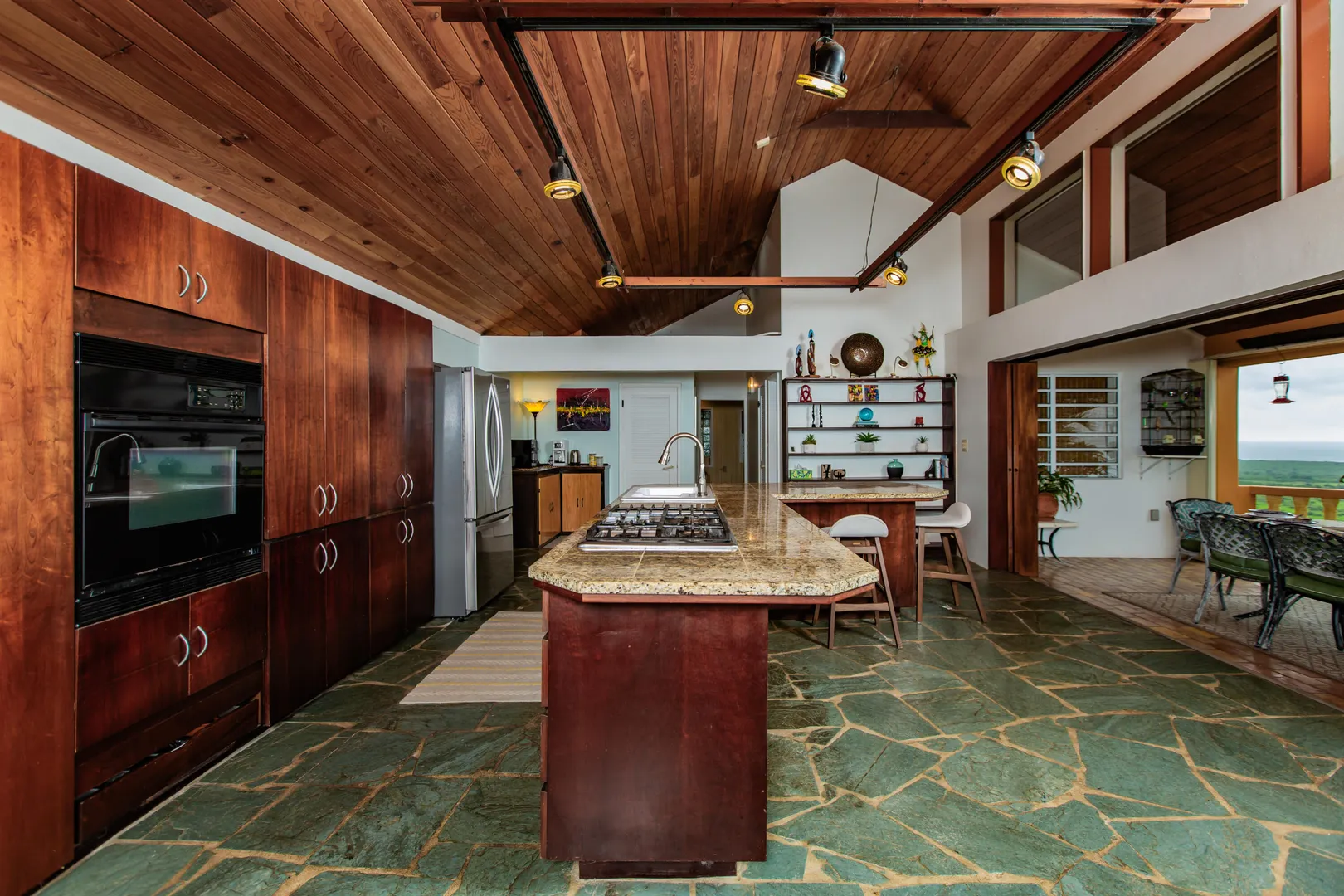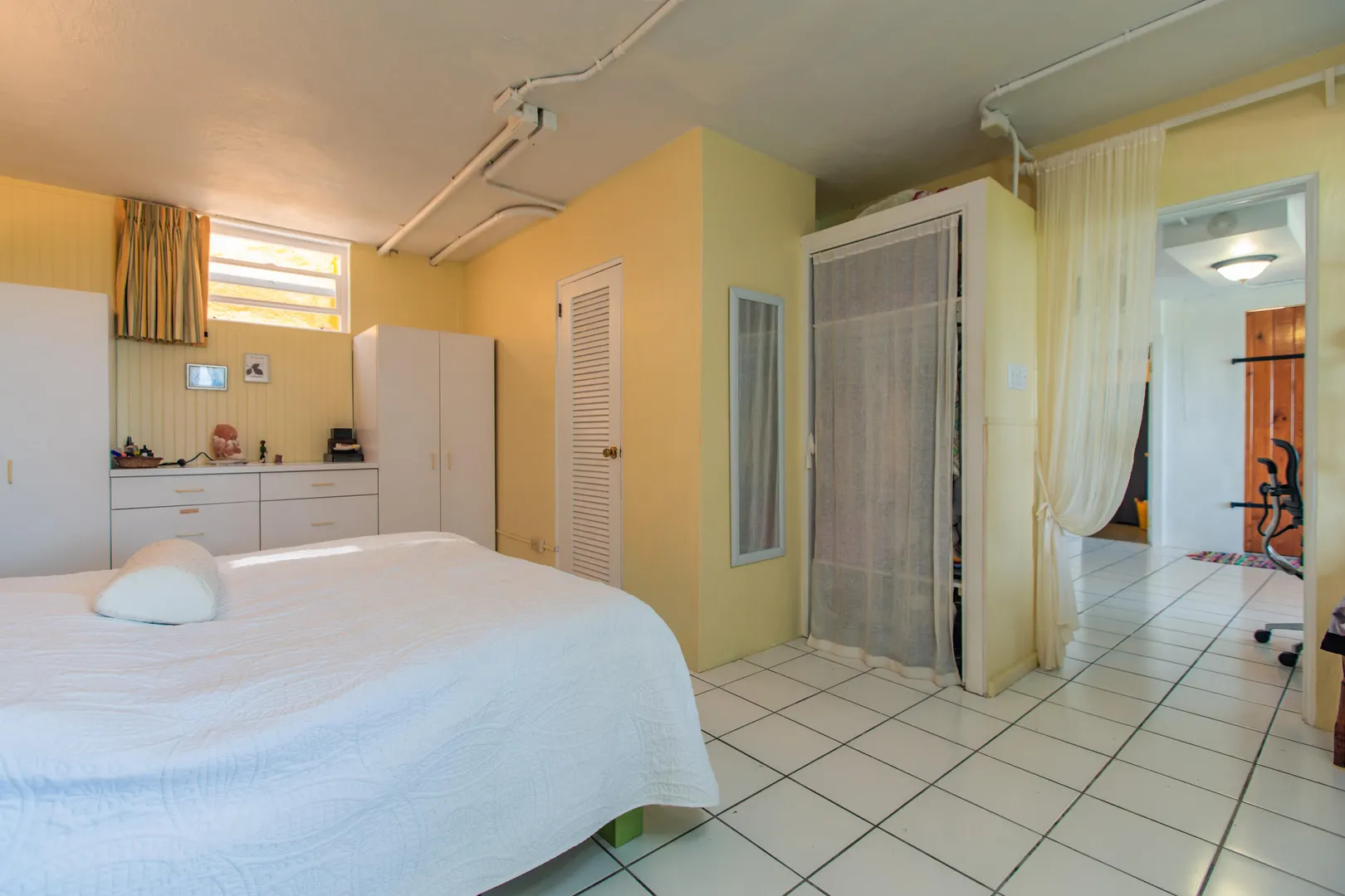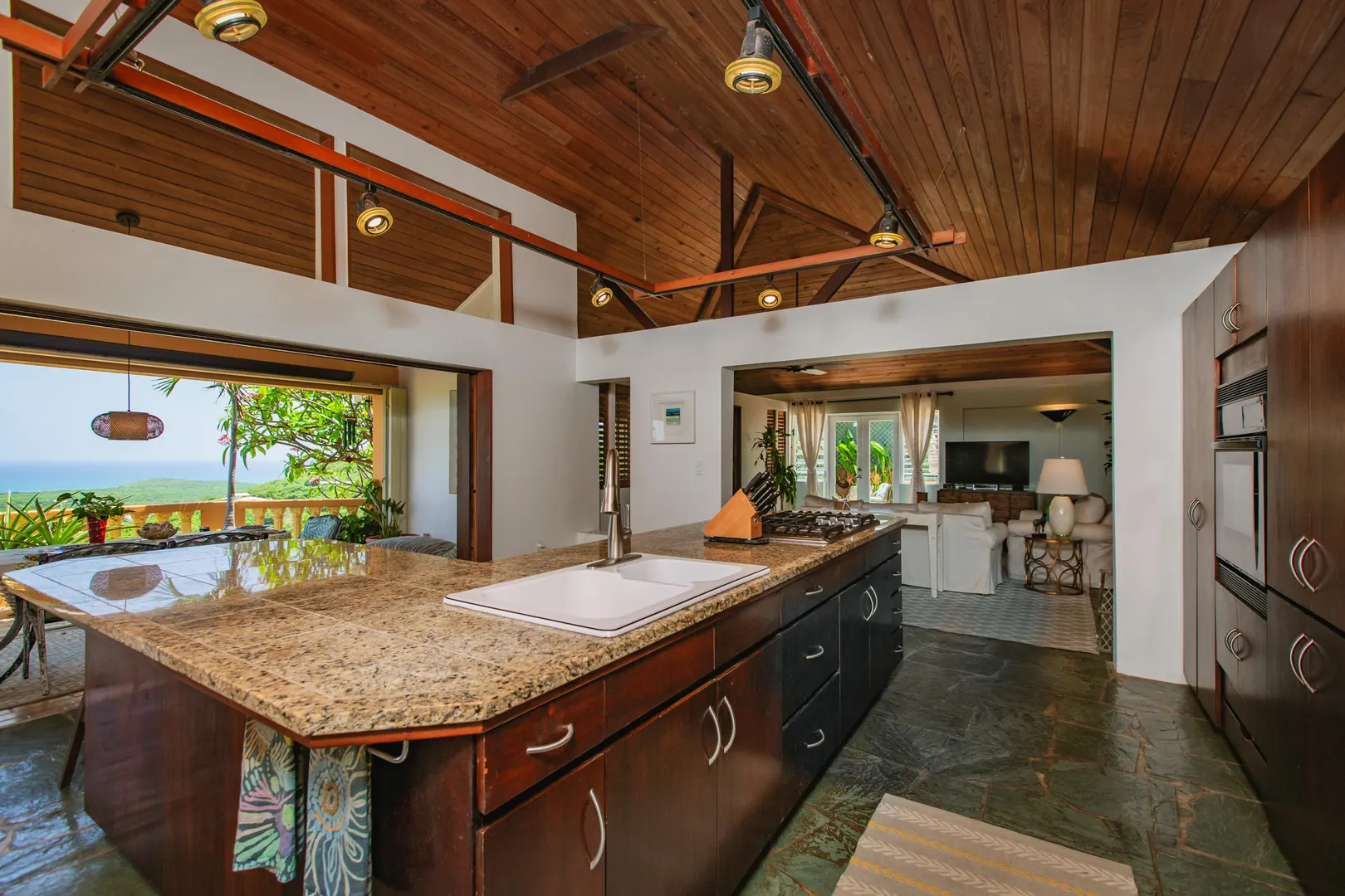 Escape to your own slice of paradise in this stunning Caribbean hillside home boasting views of both the North and South shores. With 3 bedrooms and 2 baths, plus a convenient efficiency apartment with separate entrance & parking on the lower level, there's ample space for family and guests.Relax with your very own dipping pool, perfect for unwinding while soaking in the panoramic vistas. This home is a masterpiece of custom features including vaulted cypress ceilings, Blue Bitch tiled floors, skylights, mahogany doors & cabinetry. Other amenities include storage shed for tools/yard equipment, large storage room/workshop plus laundry room with utility sink & bonus fridge, Enjoy eco-friendly living w/ solar net metering & an automatic propane generator - large yard perfect for pets!
