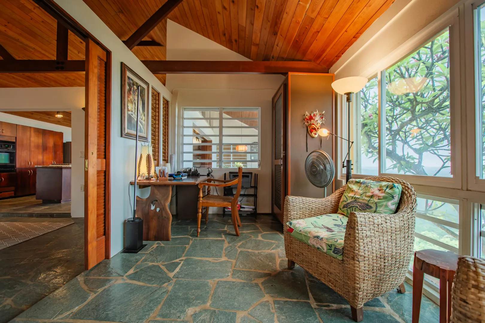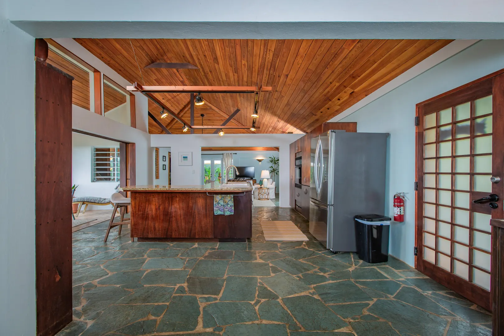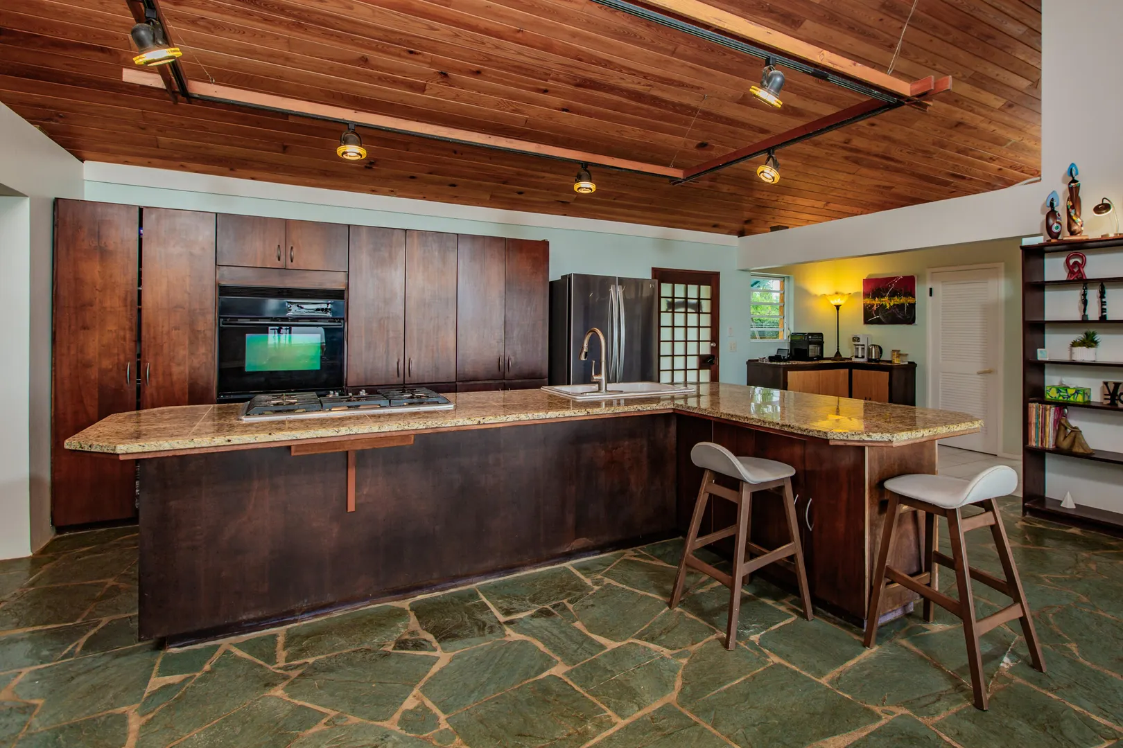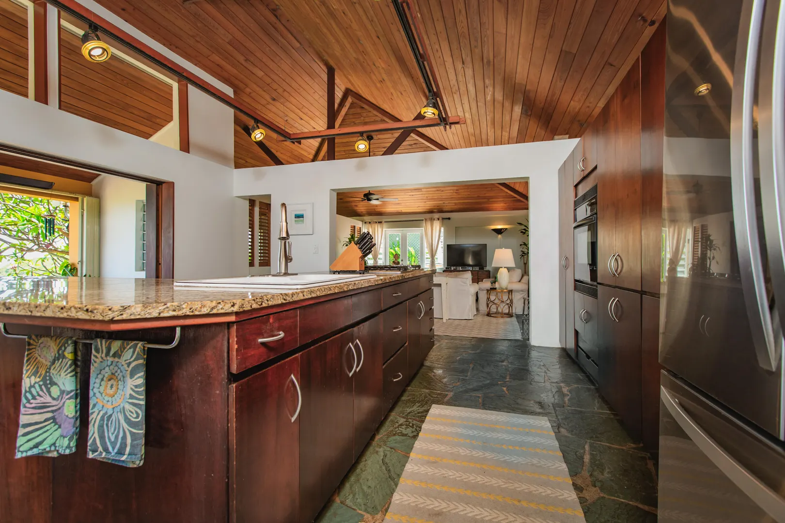 Escape to your own slice of paradise in this stunning Caribbean hillside home boasting views of both the North and South shores. With 3 bedrooms and 2 baths, plus a convenient efficiency apartment with separate entrance & parking on the lower level, there's ample space for family and guests.Relax with your very own dipping pool, perfect for unwinding while soaking in the panoramic vistas. This home is a masterpiece of custom features including vaulted cypress ceilings, Blue Bitch tiled floors, skylights, mahogany doors & cabinetry. Other amenities include storage shed for tools/yard equipment, large storage room/workshop plus laundry room with utility sink & bonus fridge, Enjoy eco-friendly living w/ solar net metering & an automatic propane generator - large yard perfect for pets!